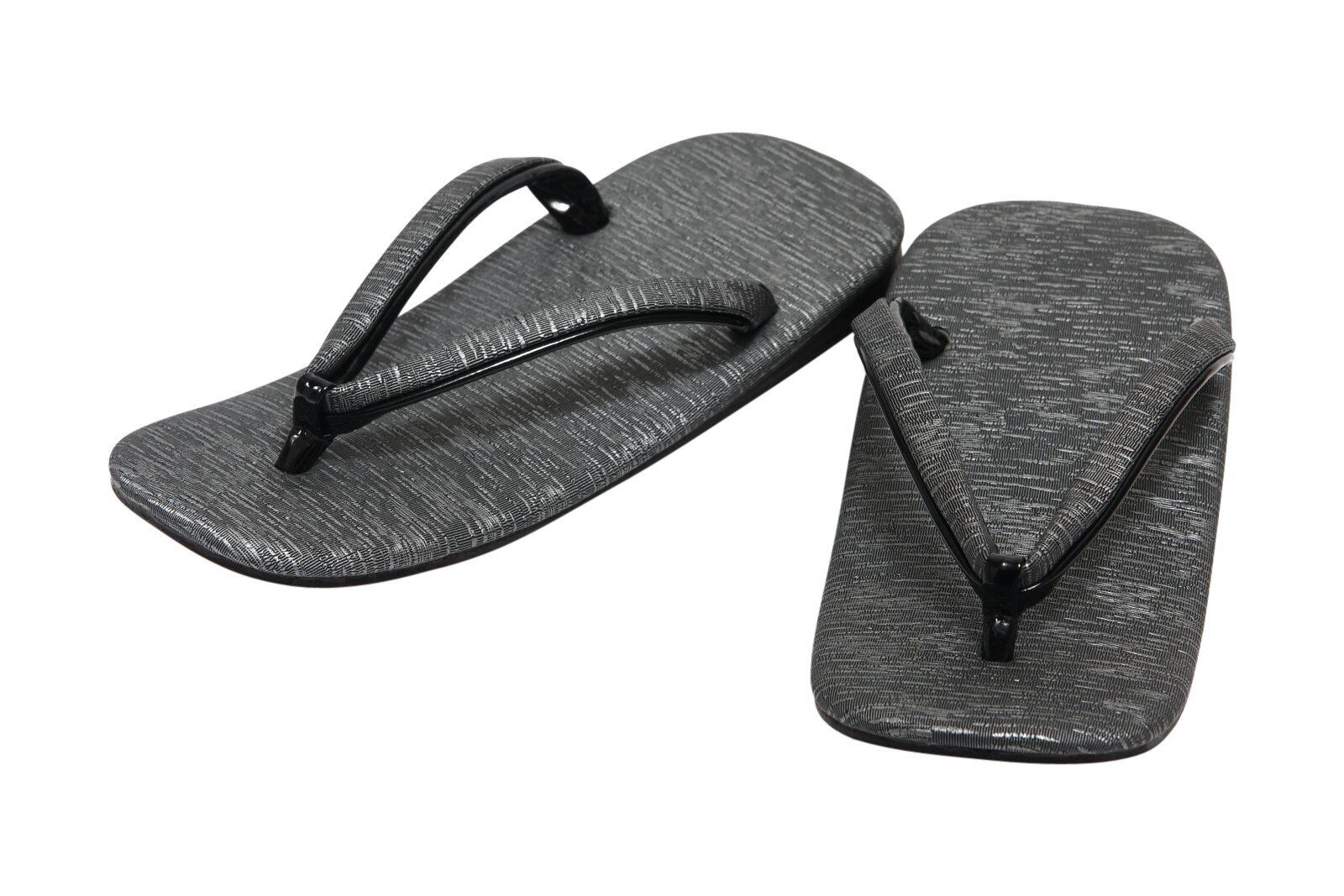 高級感のある紬(つむぎ)風の雪駄です。着物を巻き込まないよう、2~3cmほどかかとを出して履くのが一般的です。