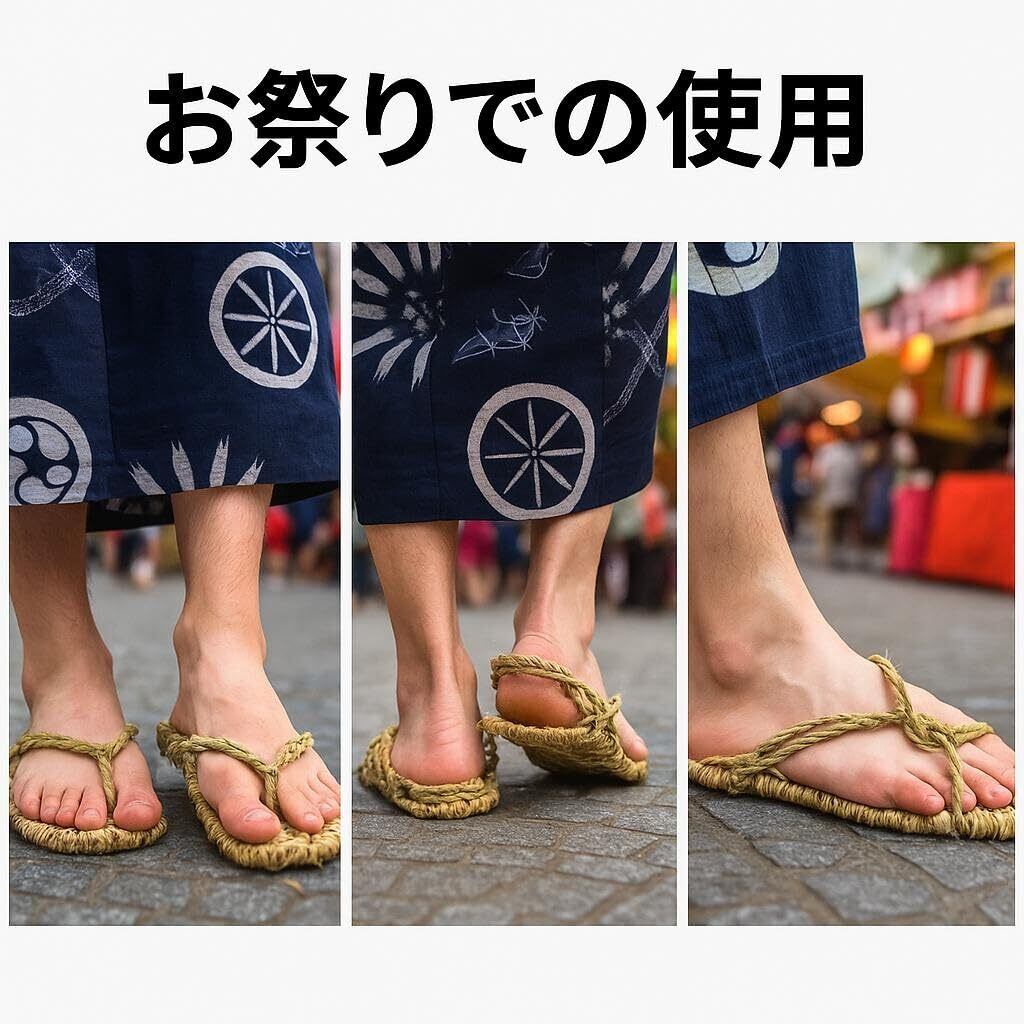 草鞋(わらじ)フリーサイズ 手作り天然素材 お祭り・お遍路・参拝用 和装履物 男女兼用