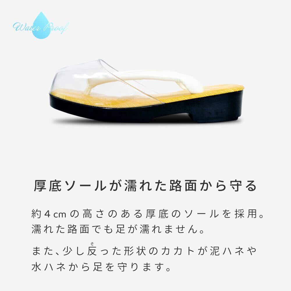 つま先にカバーが付いており、雨が降っていても足が濡れにくい雪駄です。
