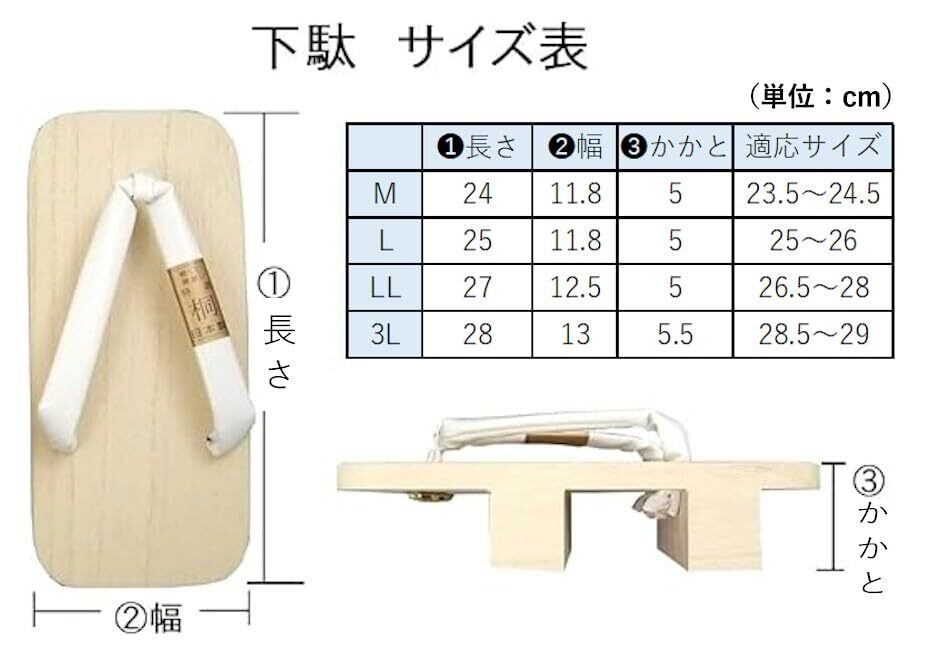 台実寸 M(長さ24cm 幅11.8cm 高さ5cm) L(長さ25cm 幅11.8cm 高さ5cm) LL(長さ27cm 幅12.5cm 高さ5cm) 3L(長さ28cm 幅13cm 高さ5.5cm)