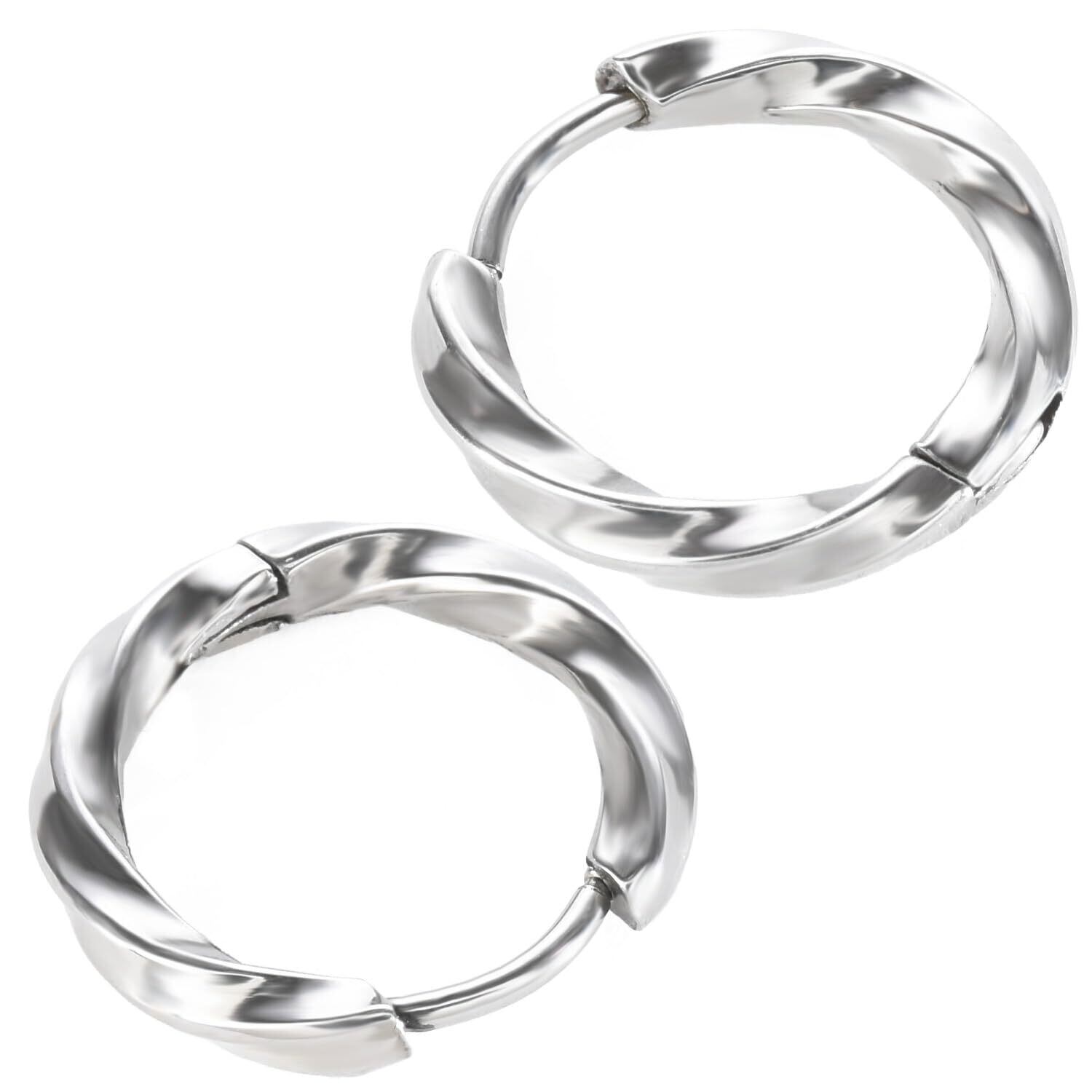 【 ツイストフープピアス 】 シンプルで人気のフープピアスにツイスト(ねじり)を加えどの角度から見てもキラキラと高級感のある輝きを放つツイストフープピアス・リングピアスです。シンプルなフープピアスに飽きてしまった方や周りと差をつけたい方におすすめのアクセサリーです。男女兼用のフープピアスはメンズだけではなく、レディースにもお使いいただけます。光の反射により輝きを放ち、ねじりを効かせたデザインがあなたの耳元をおしゃれに演出します。