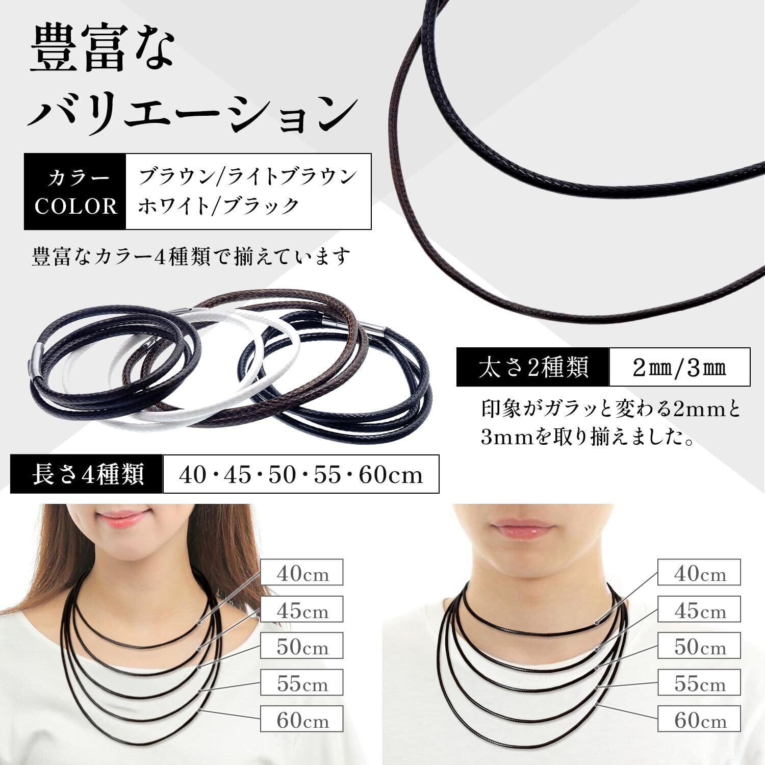 【サイズ】太さ:紐2mm 留め具2.5mm 長さ:50cm 重量:2.4g