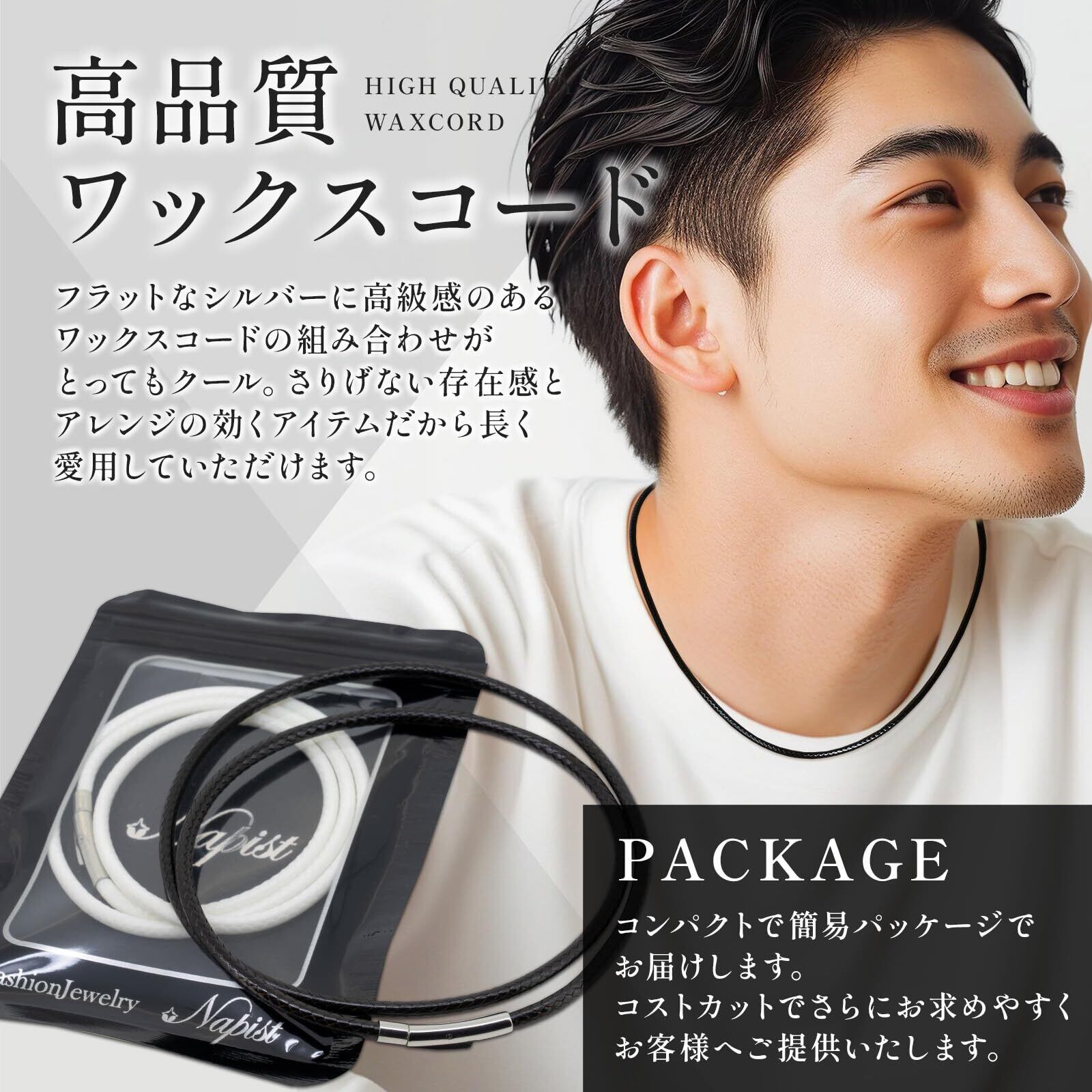 [Napist] ネックレス チェーン メンズ ワックスコードチョーカー 316L サージカルステンレス [ 金属アレルギー対応 ] 耐水性 NPN273