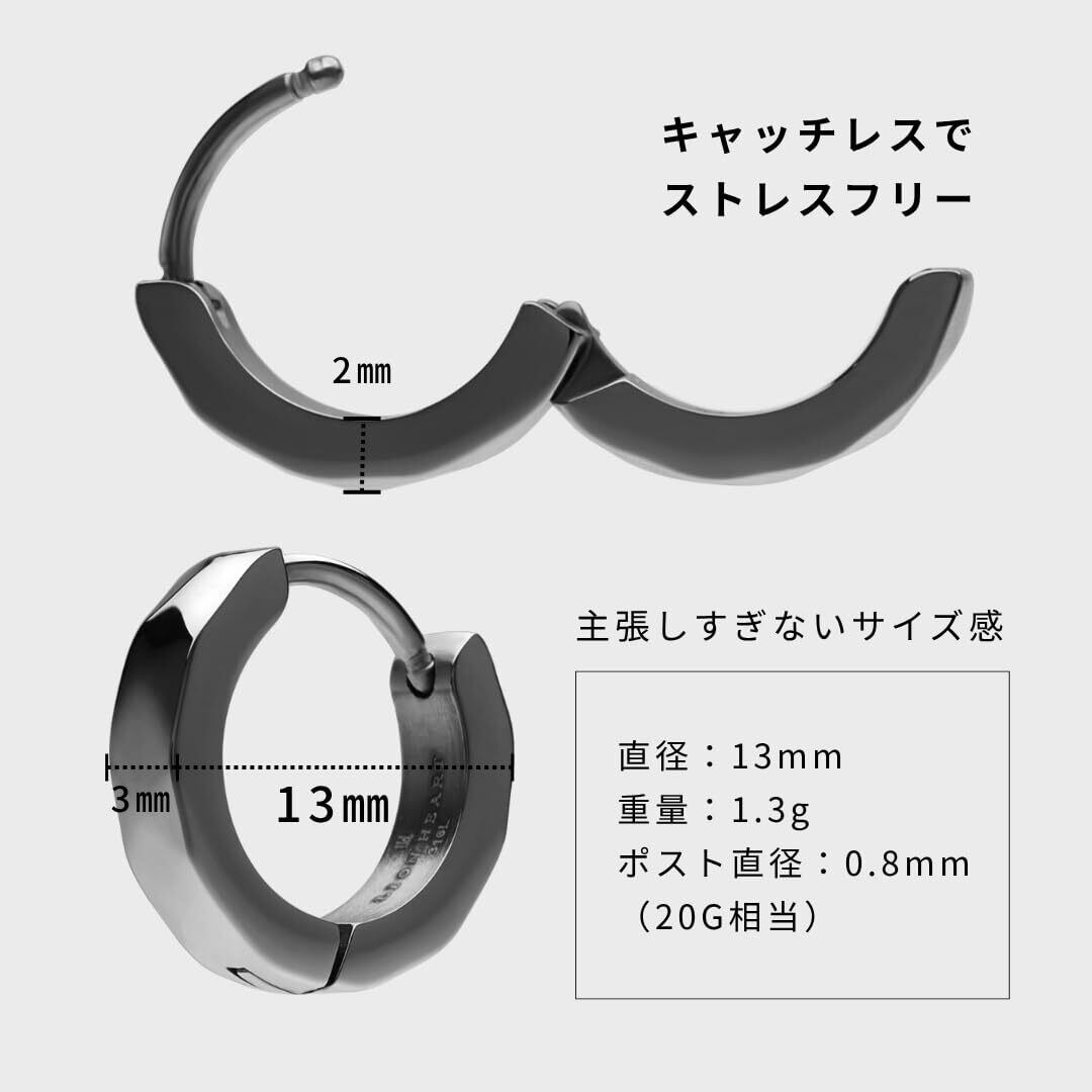 【男女どちらでも着けられるサイズ】小ぶりでさりげない存在感。シンプルなデザインと絶妙なサイズ感で、メンズレディース問わず着用いただけます。ペアアクセサリーとしてもおすすめです。「直径」13㎜「幅」3㎜「厚み」2㎜「ポスト直径」0.8㎜(20G相当)「重量」 1.3g