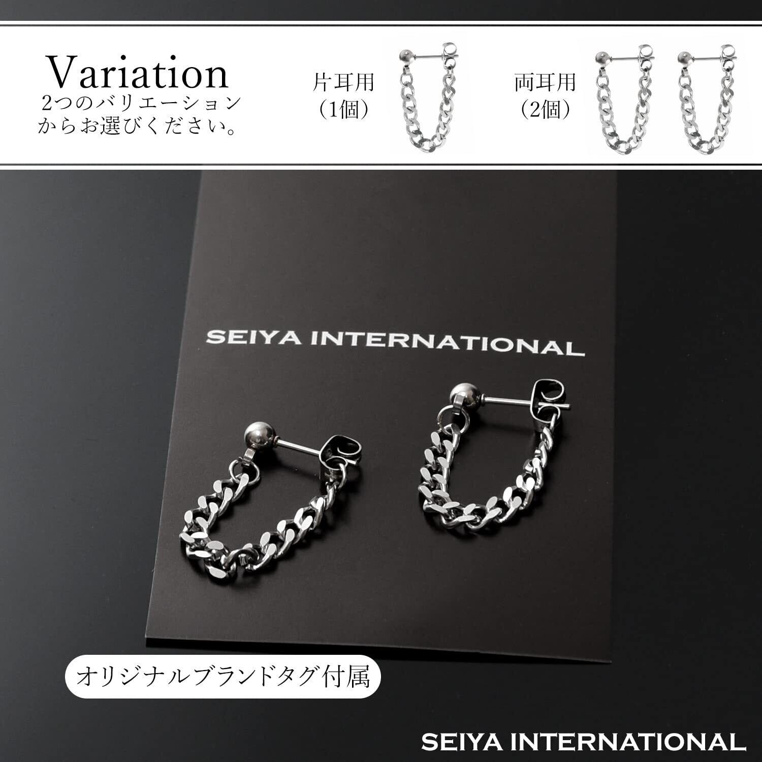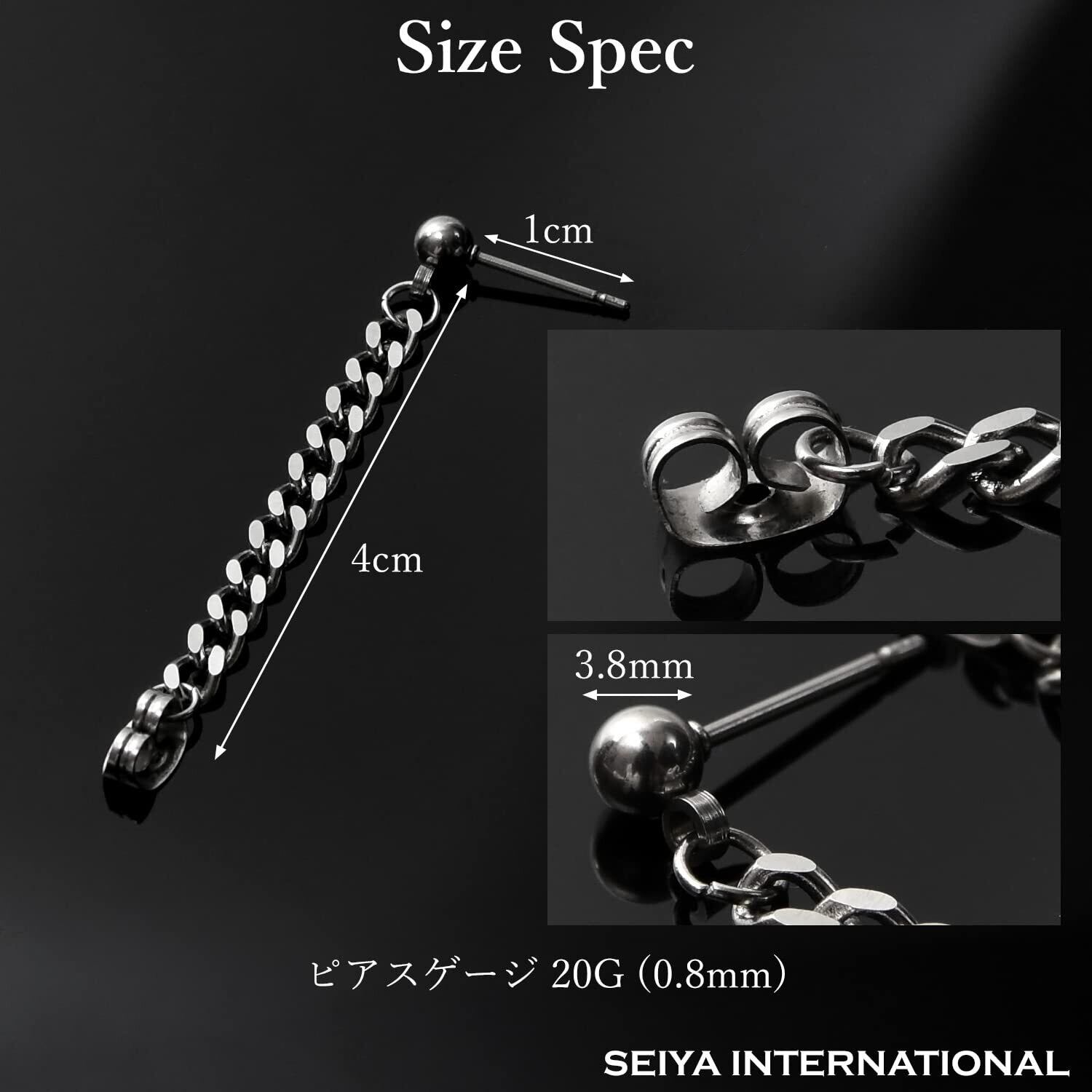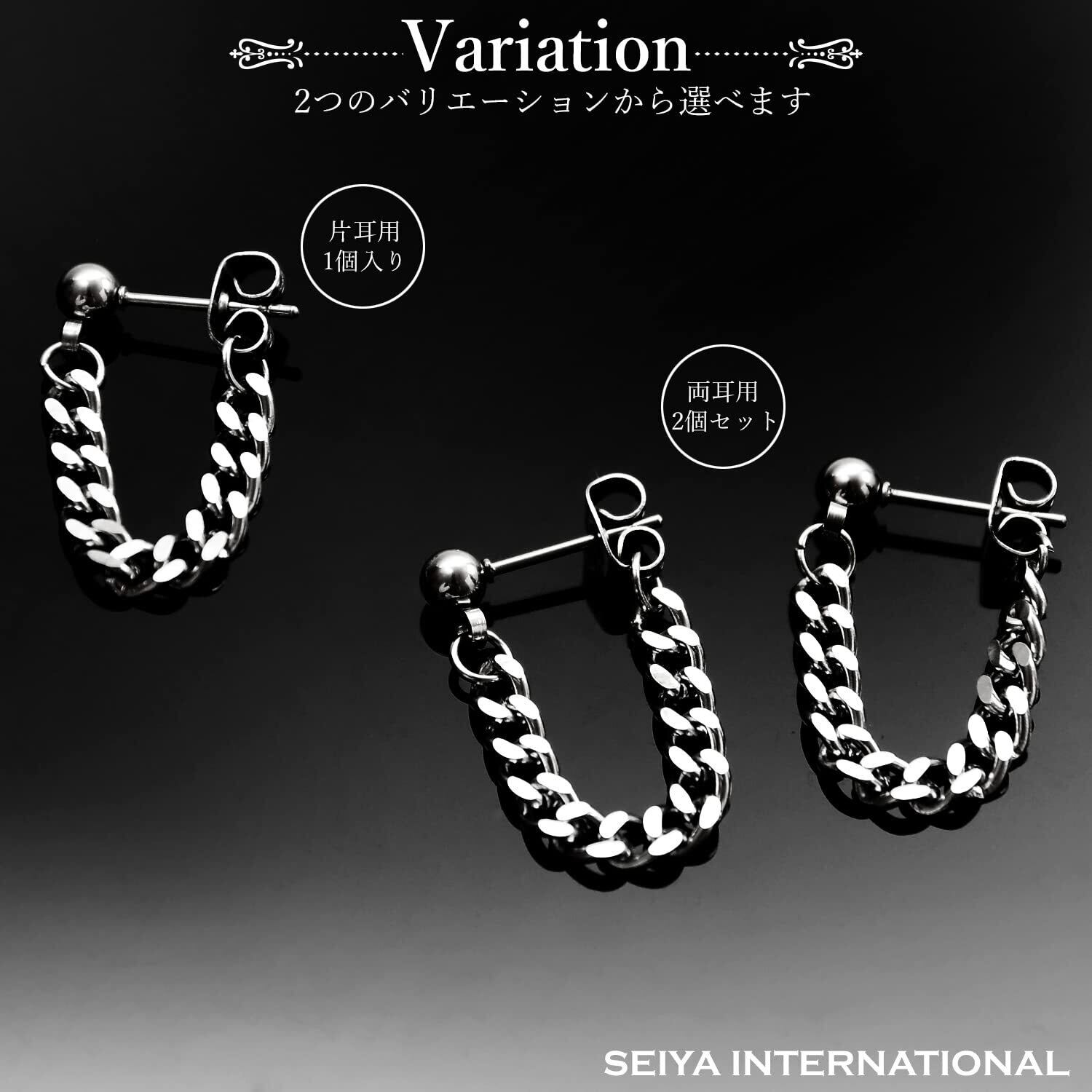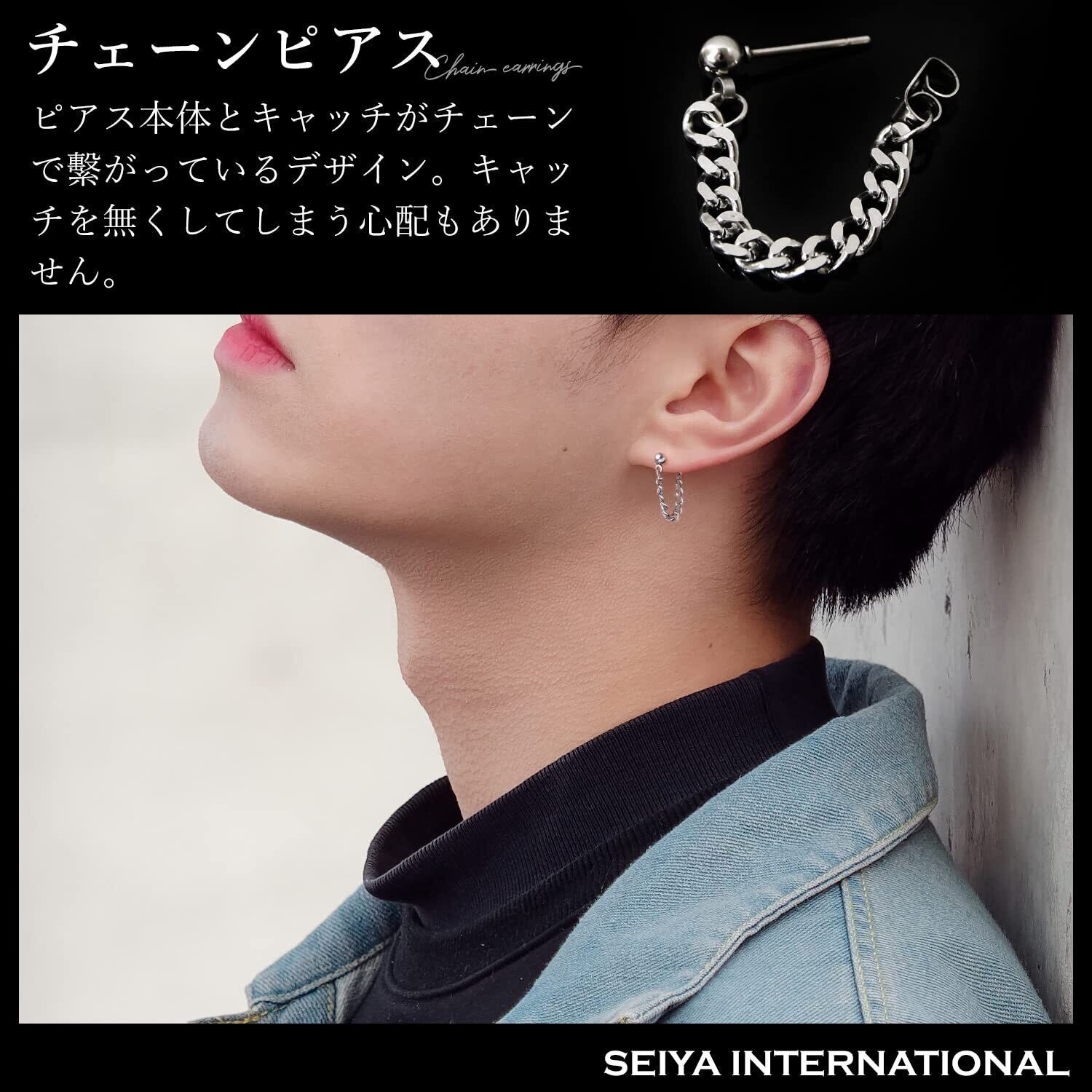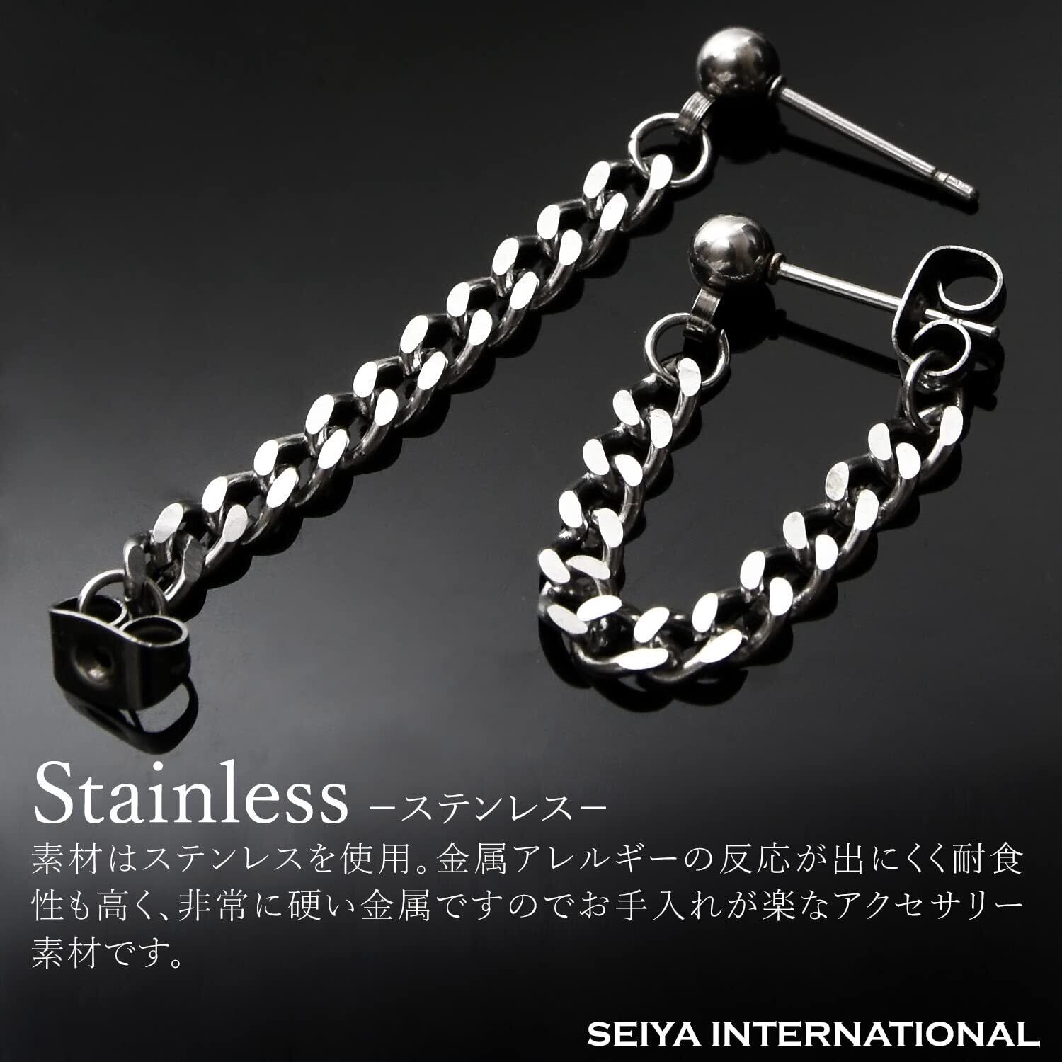 [SEIYA INTERNATIONAL] チェーンピアス メンズ フープピアス リングピアス フープ リング チェーン 鎖 ステンレス シルバー 20G