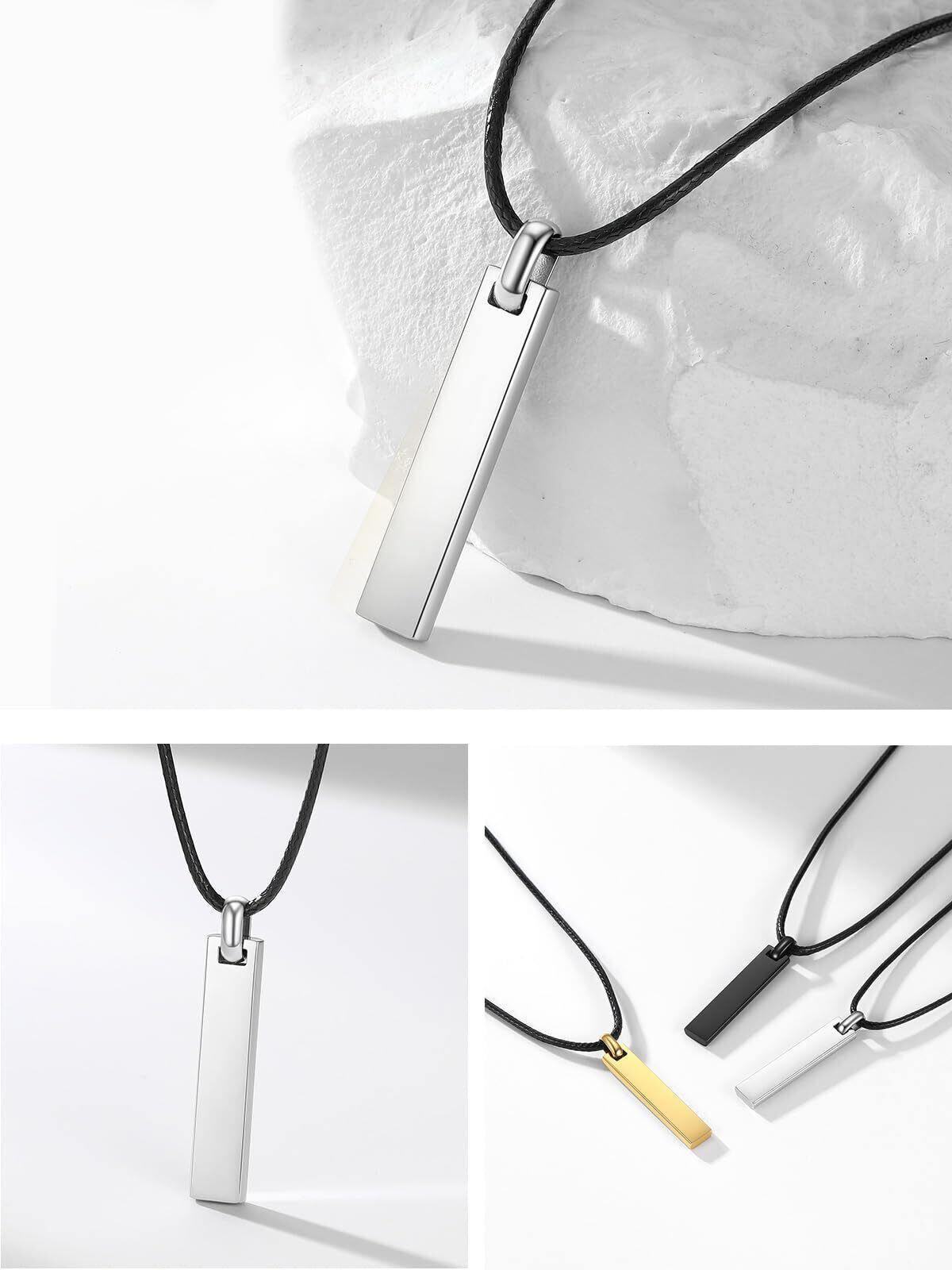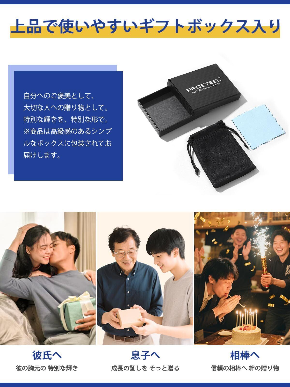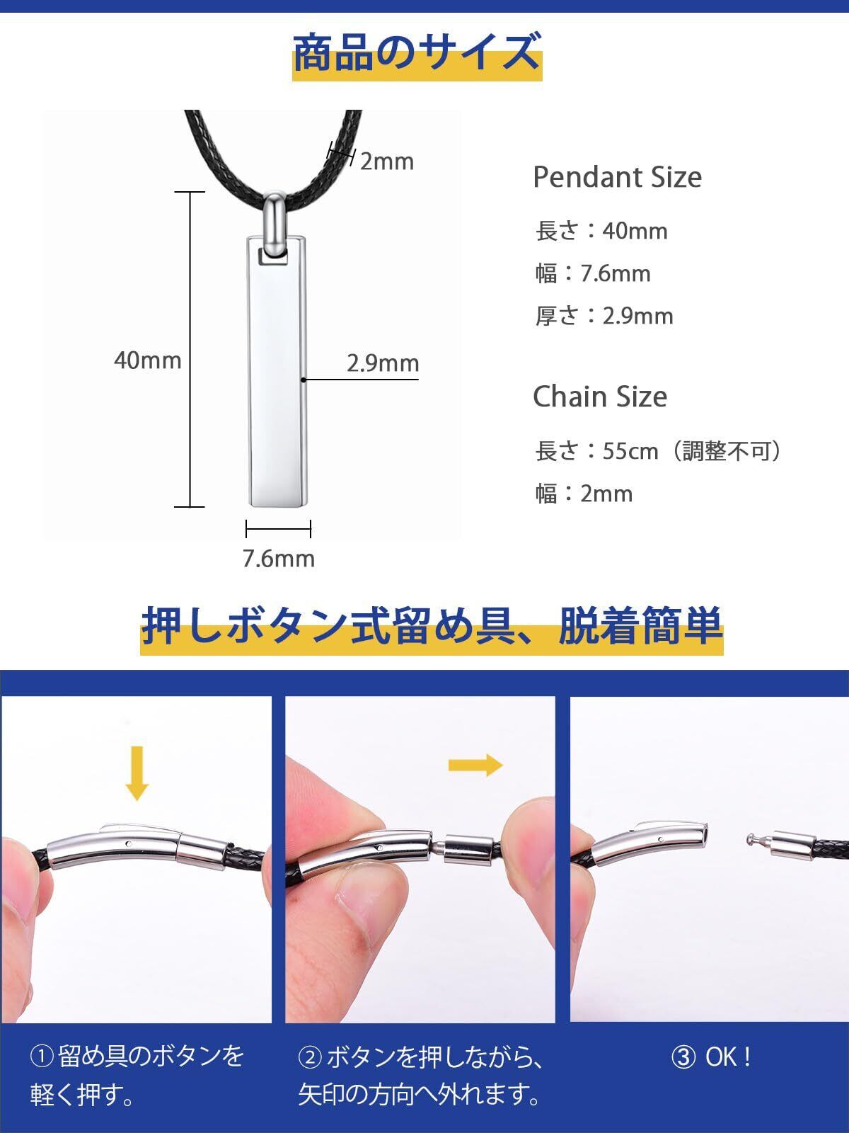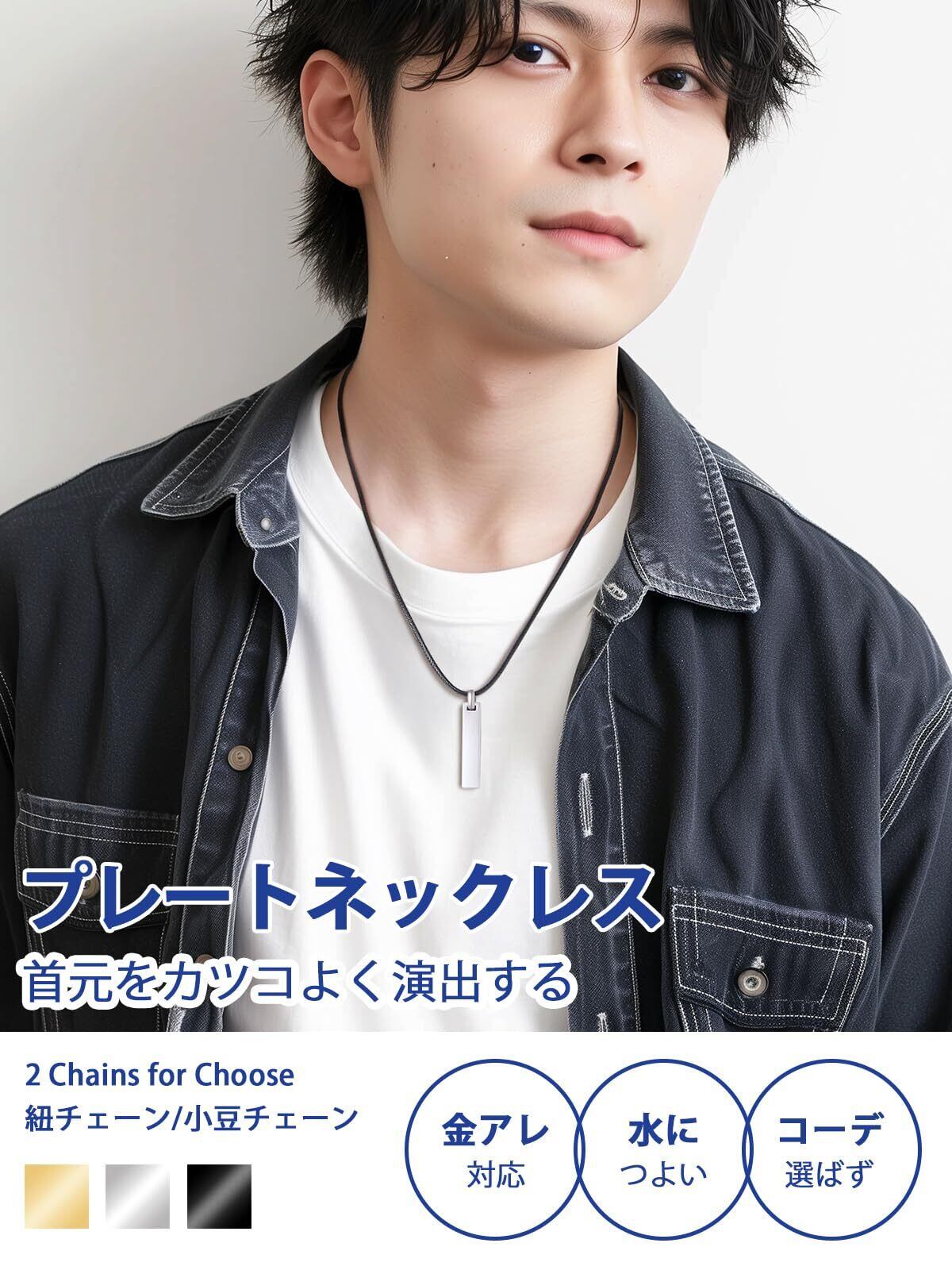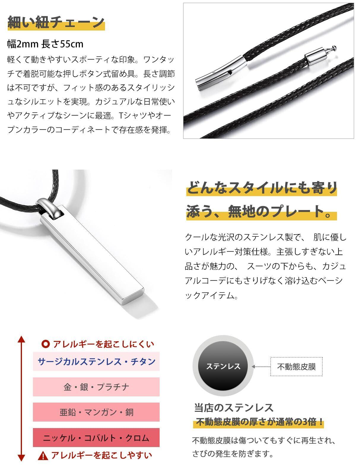 [PROSTEEL] プレート ネックレス ペンダント メンズ シンプル サージカルステンレス 金属アレルギー対応 付けっぱなし 長さ55cm 小豆チェーン/紐チェーン