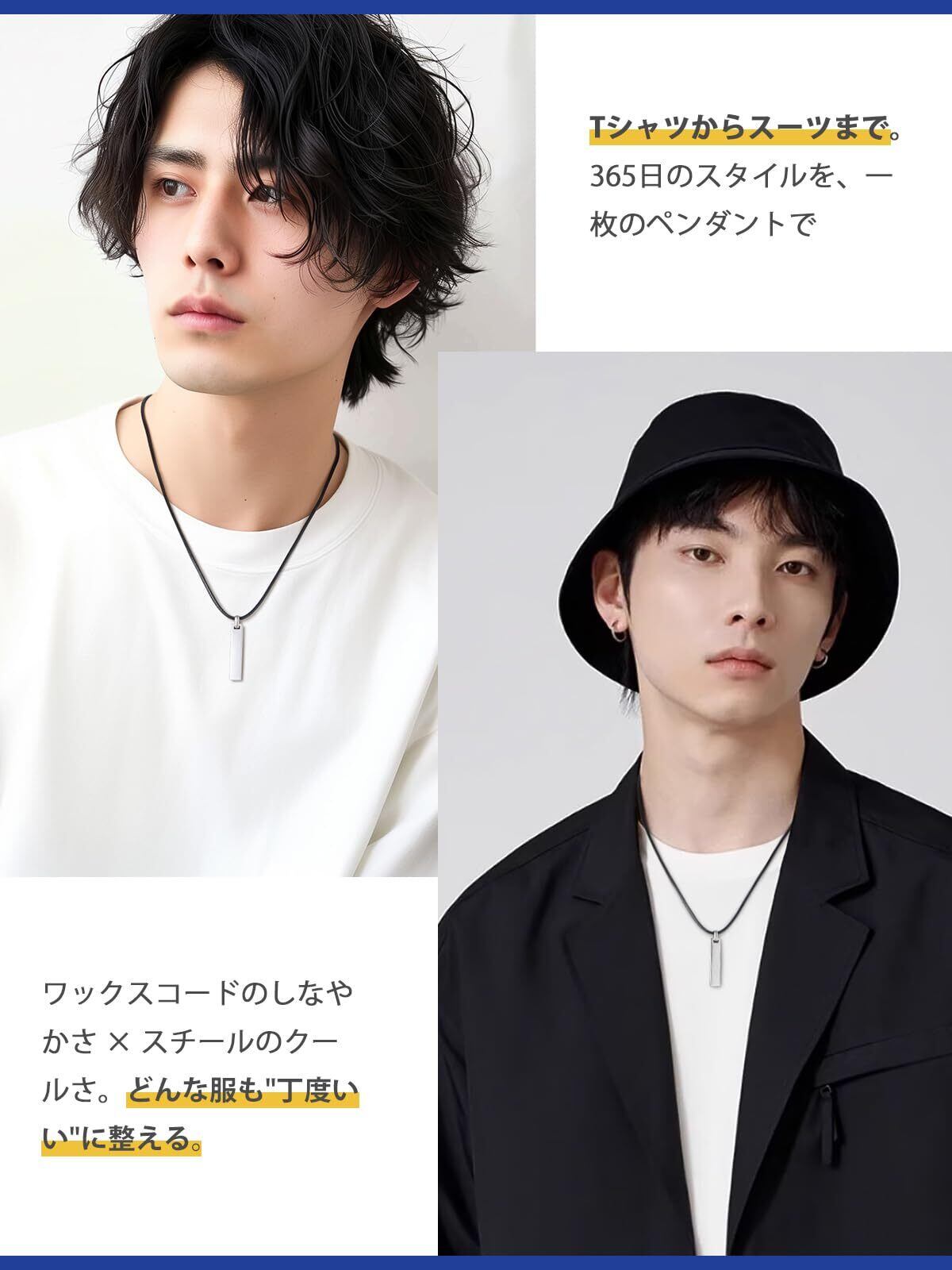 【スタンダードな55cmで自然なフィット感】日本人男性にフィットしやすい標準的なチェーン長(約55cm)。首元に程よい存在感を与えながら、Tシャツの襟元からもスーツの襟元からも自然に馴染む長さです。