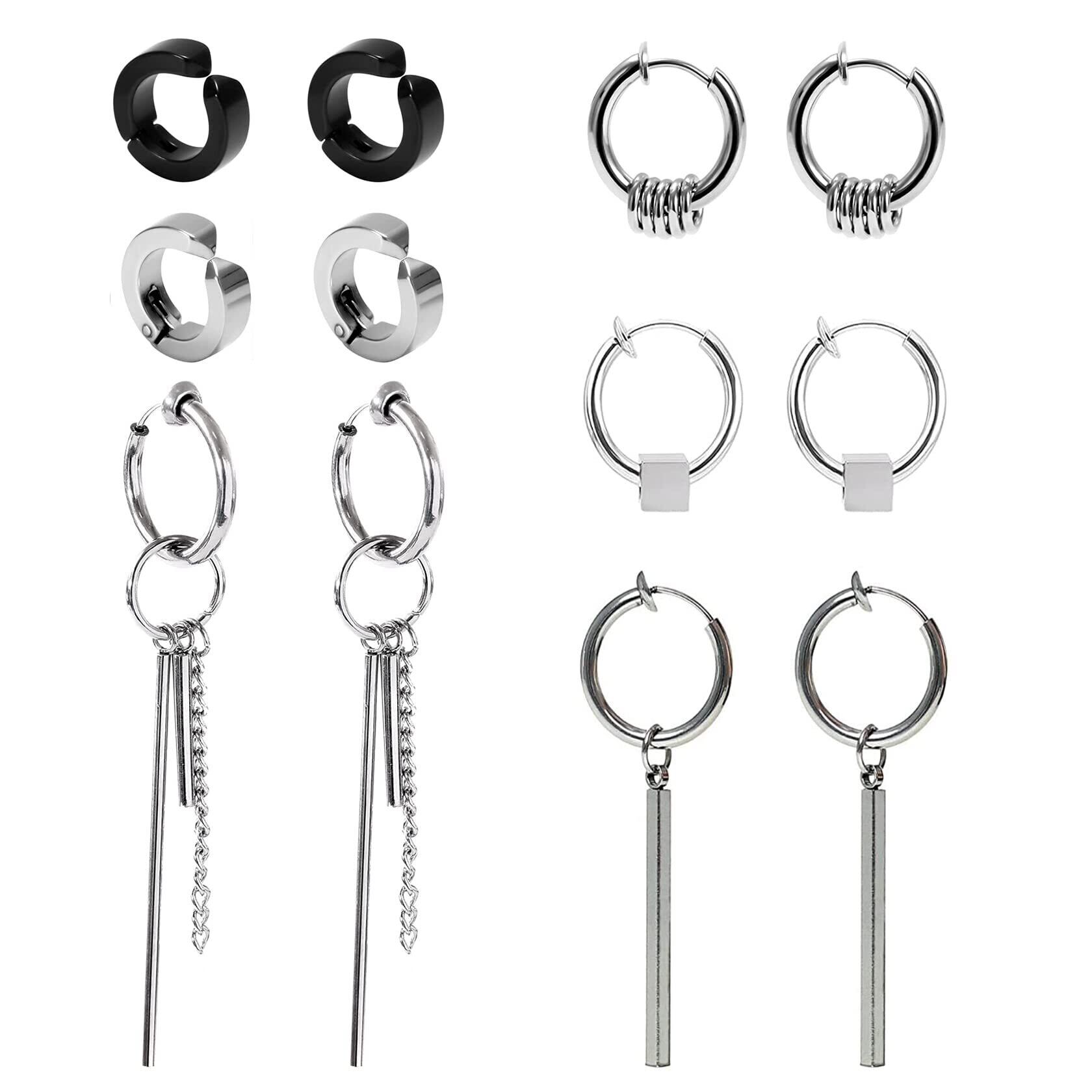 Tiszink イヤリング メンズ イヤーカフ メンズ フェイクピアス メンズ レディース ノンホール ピアス 人気 シルバー ブラック 男性 両耳用 金属アレルギー対応 6ペア 12個セット 収納ポーチ付き ユニセックス