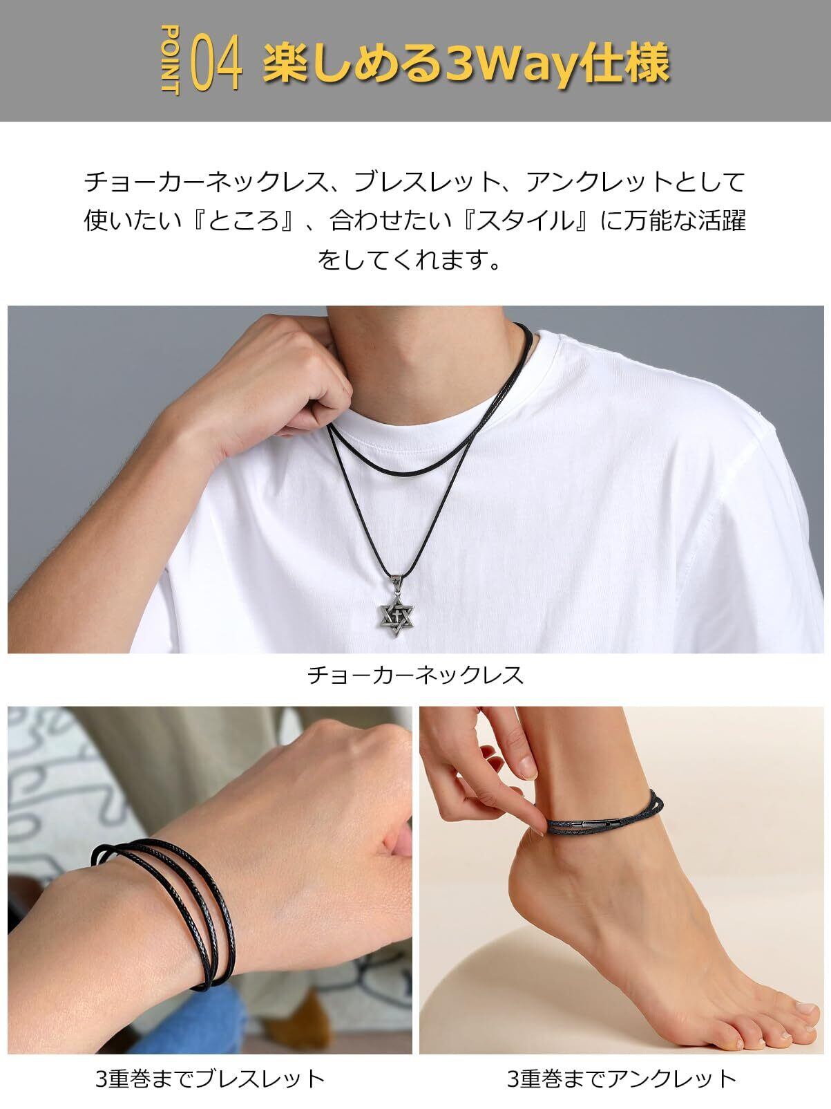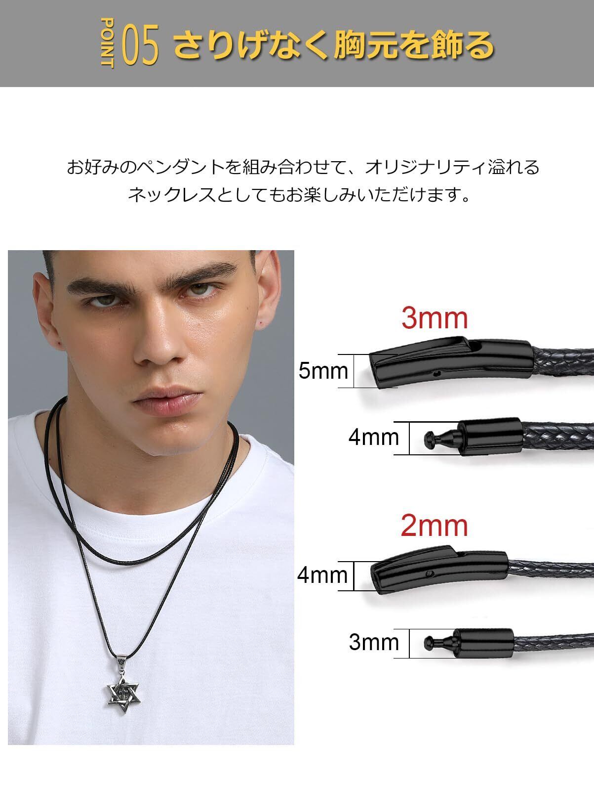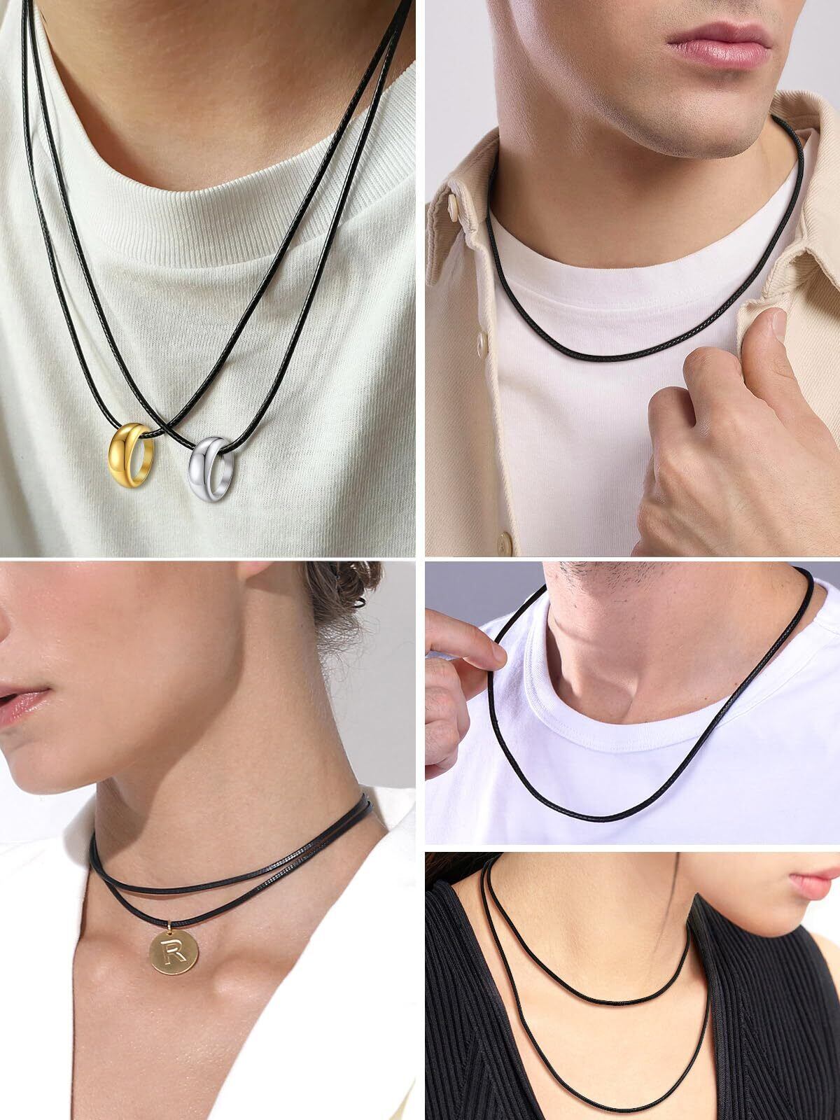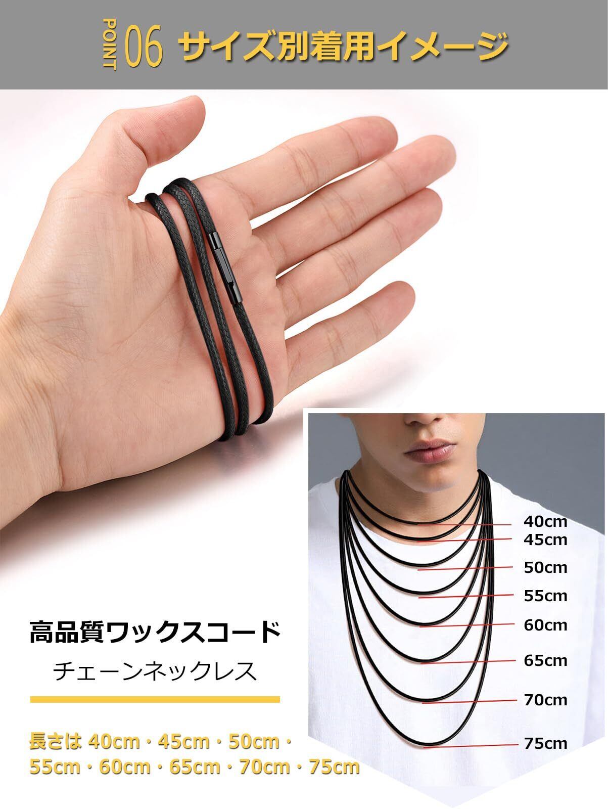 [ChainsPro] 紐 ネックレス メンズ チェーン レディース チョーカー 黒 ブラック ワックスコード レザー 金属アレルギー対応 長さ40cm~75cm