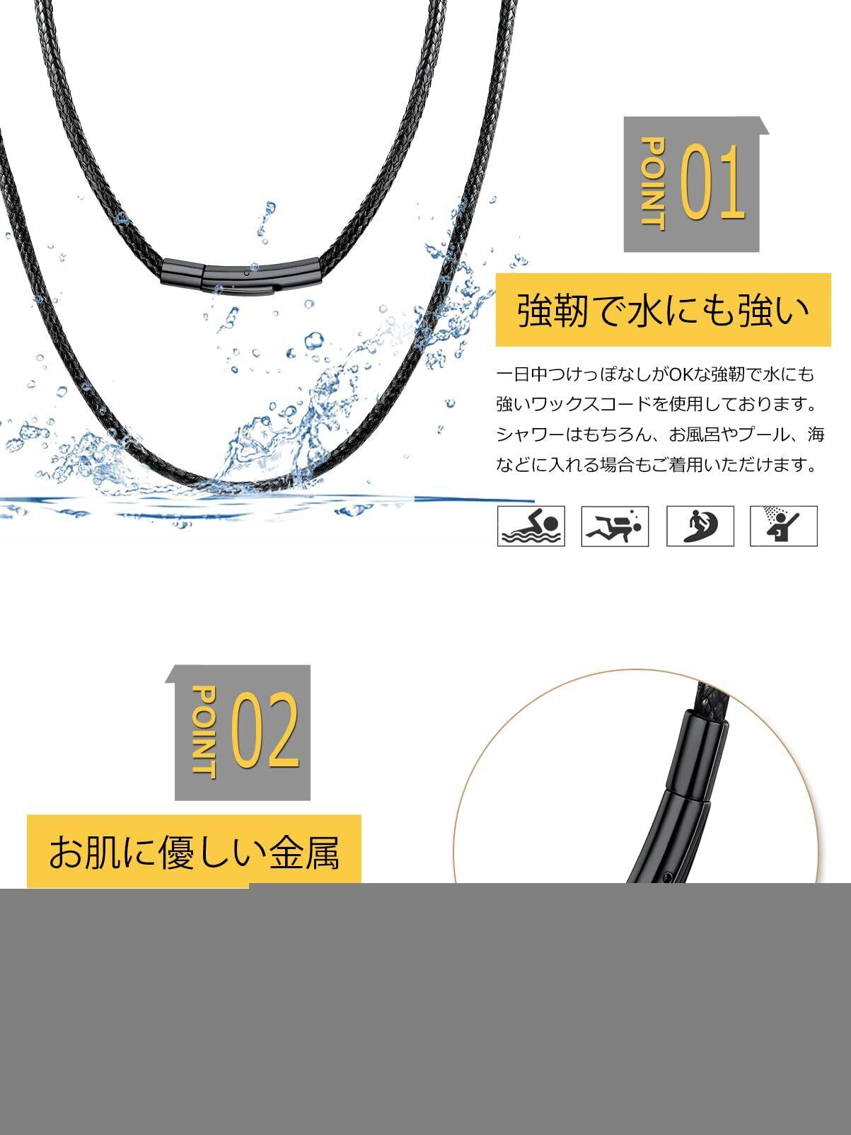 [つけっぱなしがOK] 強靭で水にも強いワックスコードを使用しております。シャワーはもちろん、お風呂やプール、海などに入る場合もご着用いただけます。