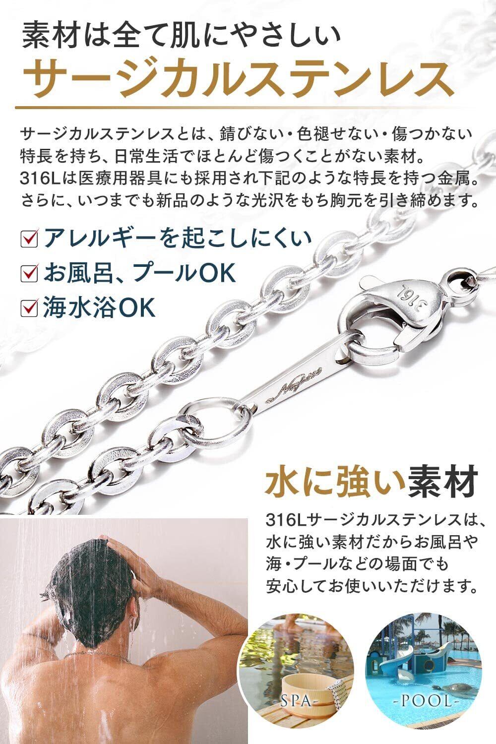 【 ネックレス チェーン のサイズ 】長さ:45cm / 太さ:4mm / 重量:10g / 留め具:カニカン(つけ外ししやすいオリジナルフック金具) /フック金具の幅:約3mm/丸カン直径:約5mm(ペンダントトップの通し穴のサイズをご確認ください。)