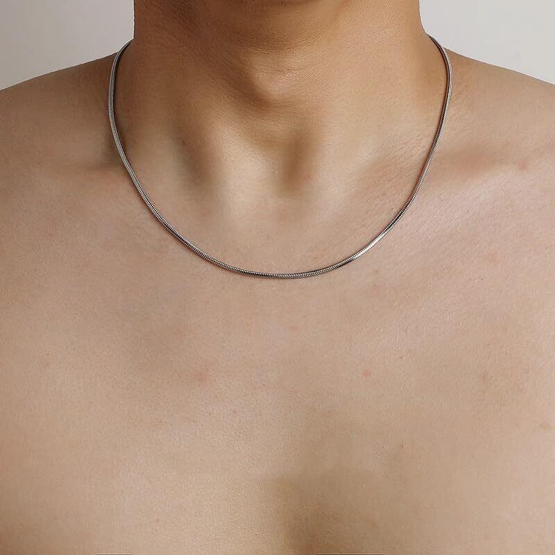 【ファッショナブルでシンプル】スタイルを選ばないシンプルなネックレスです。細身のスネークチェーンなので首元を個性的な印象に仕上げてくれます。シンプルながらも付けるだけで存在感があり他の普段使いのネックレスと重ねて着用でき、最も華やかな外観になります。