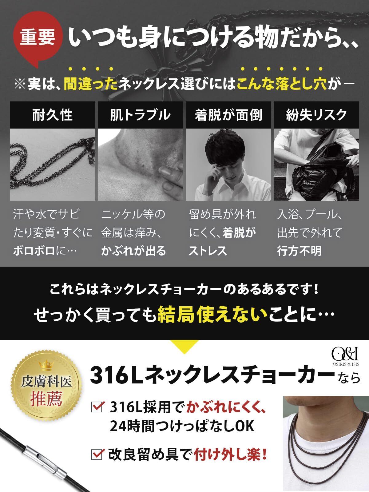 [OSIRIS&ISIS] チョーカー 紐 ネックレス メンズ ステンレス 【防水×アレルギー対応】【プッシュボタンで簡単取り外し可能】 男性用チョーカー