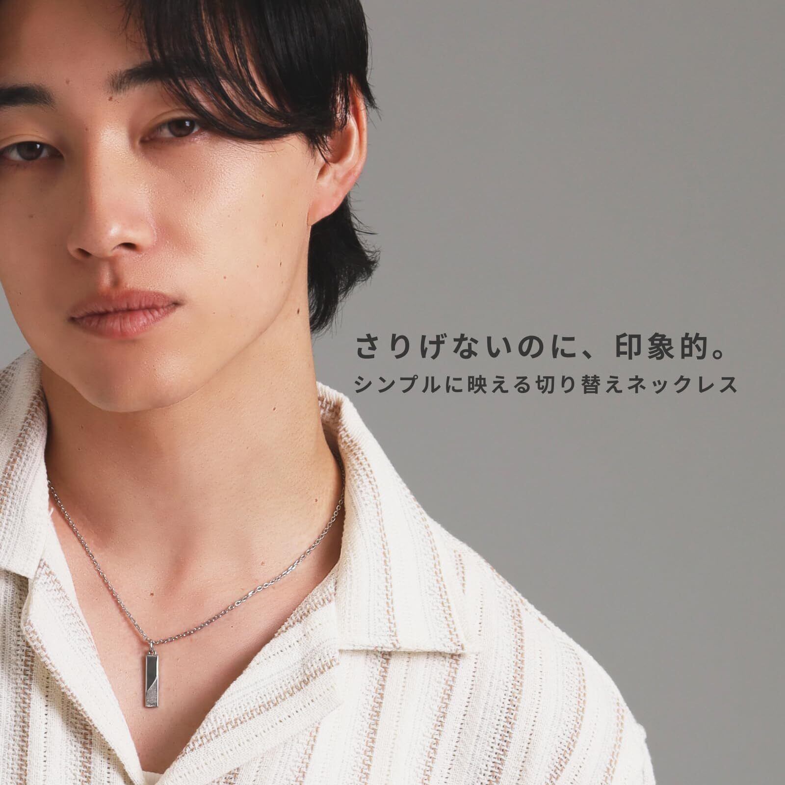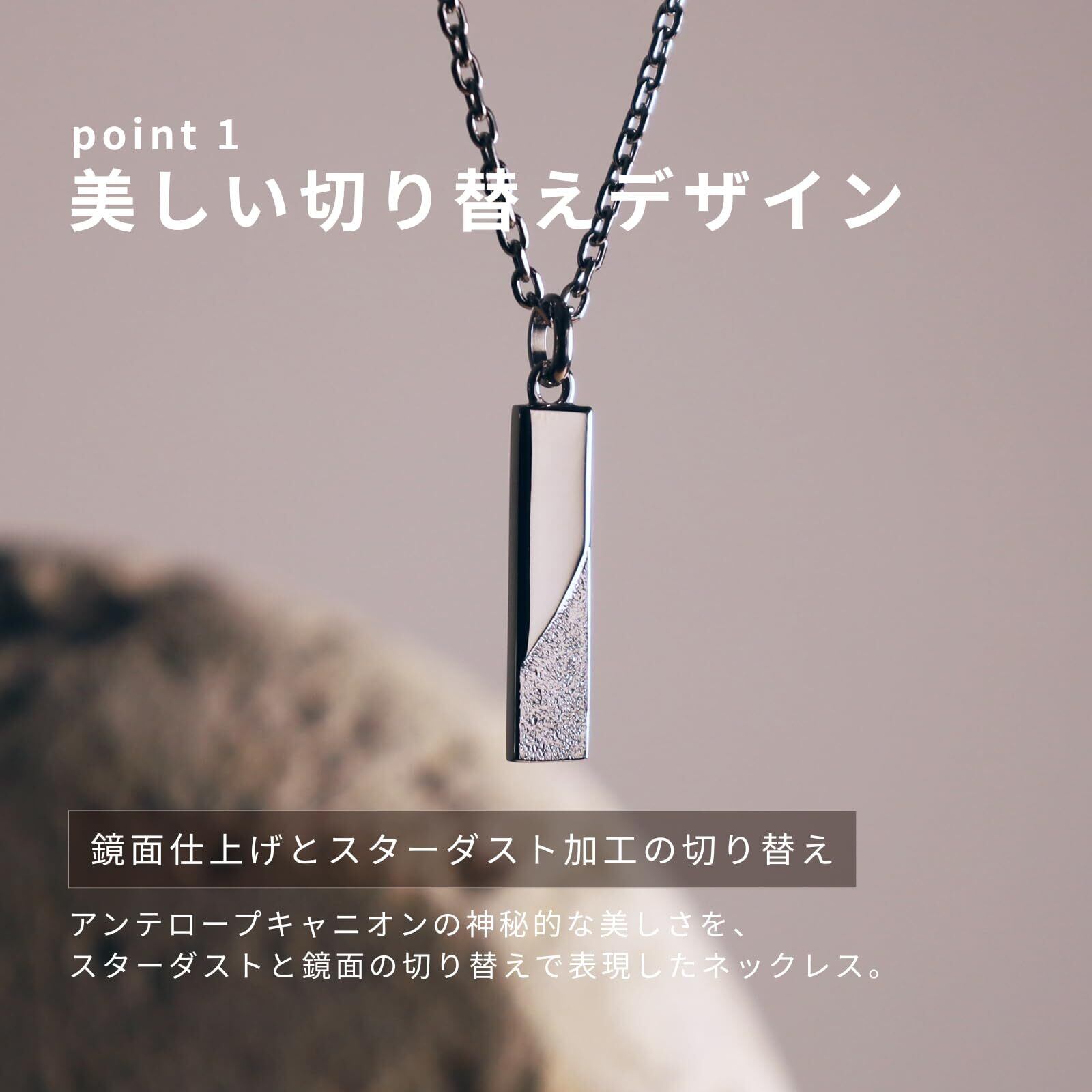 【斜めに切り替わるデザインで 質感の変化を楽しめるプレートネックレス】アンテロープキャニオンの神秘的な美しさと、滑らかで流れるような特徴を持った岩の通路を表面のスターダスト仕上げで表現しています。鏡面仕上げとの切り替えが特徴的なアイテムです。