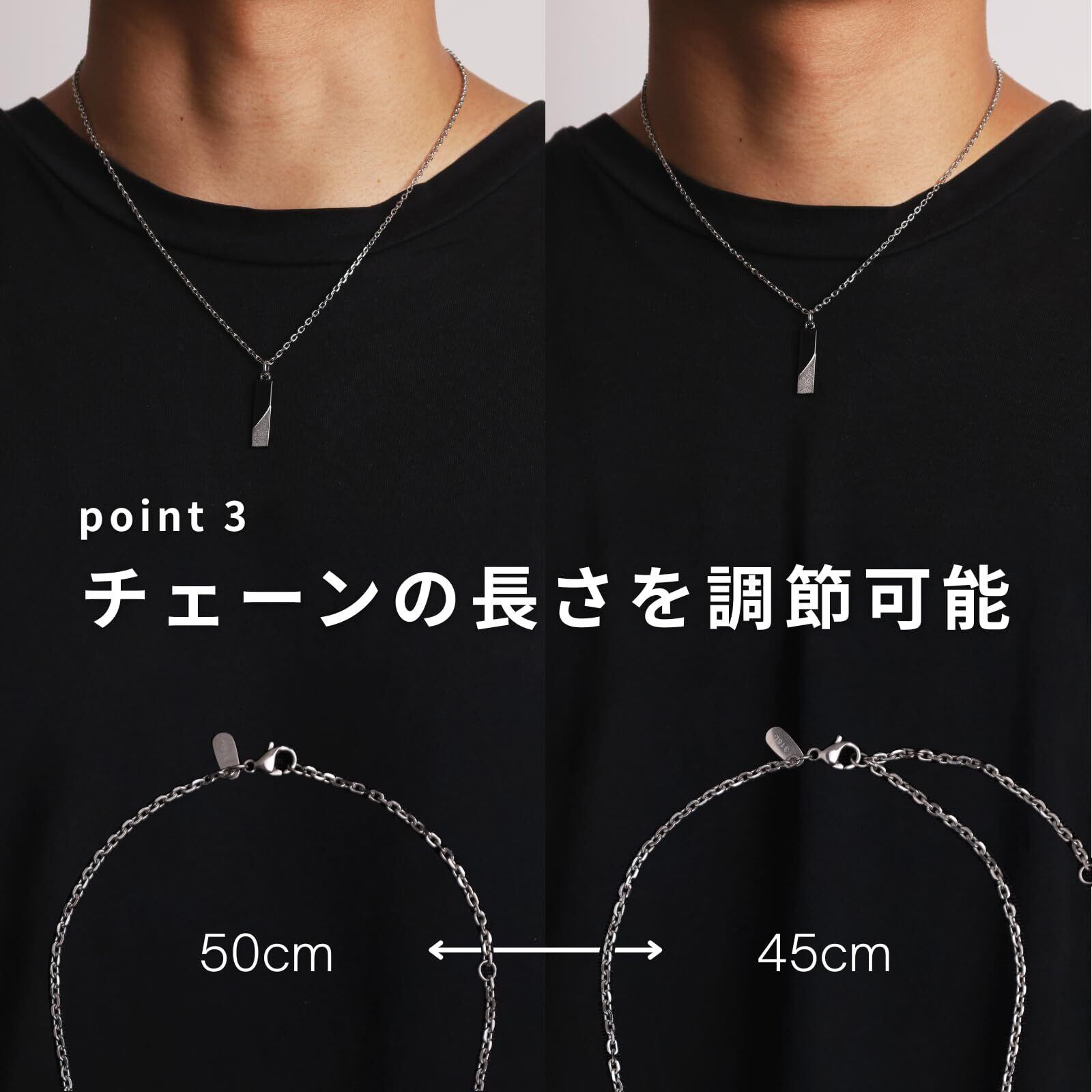 【アジャスト可能なチェーン】(チェーン)50cm《アジャスター部分で調整していただく事により、45cmにアジャスト可能》(トップ)「縦」2.4cm「横」0.6cm「厚み」0.2cm「重量」チェーン込み5.8g「仕様」チェーン取り外し可能