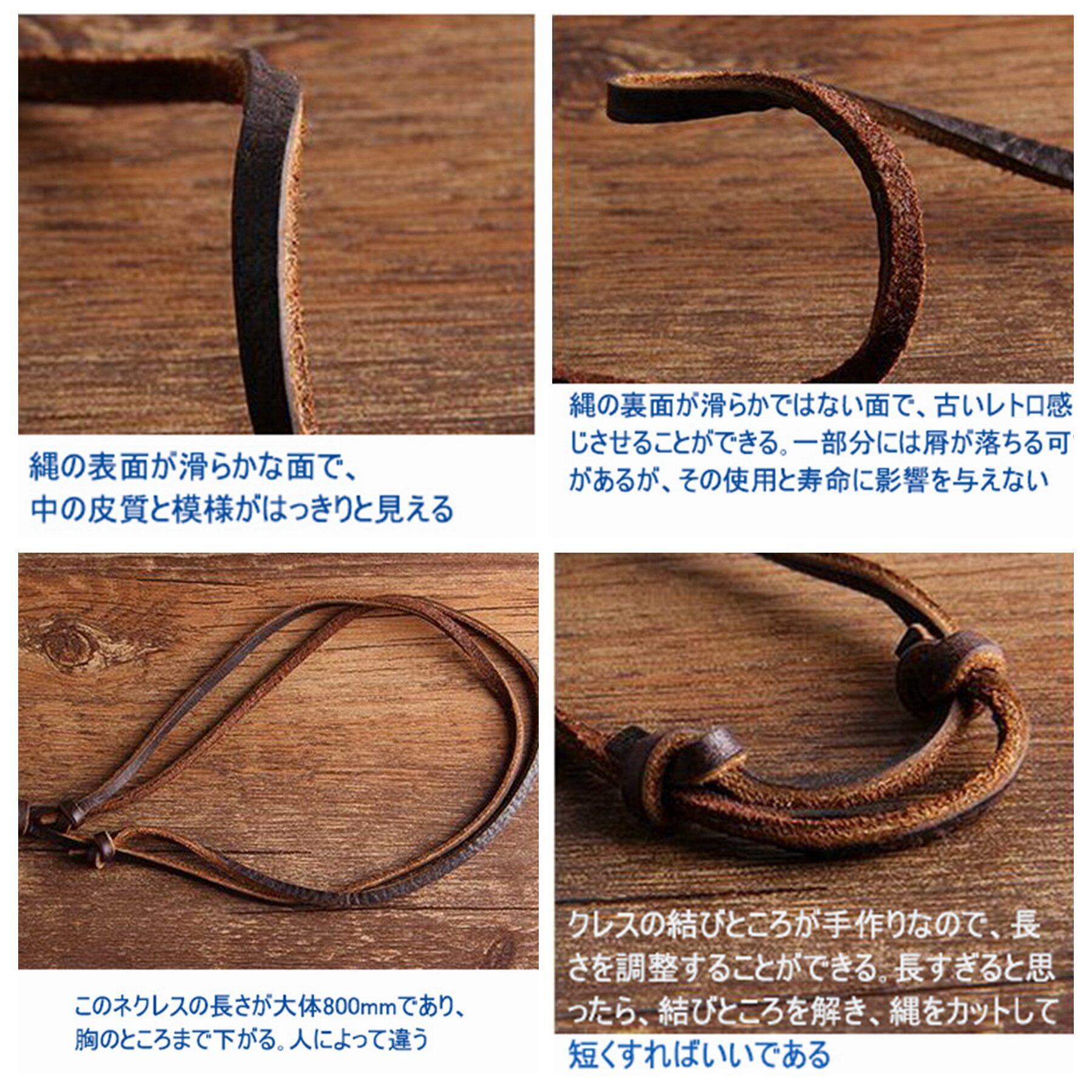 チェーンの長さ: 80cm。レザー紐で長さの調節が出来るので、服装に合わせて長さを変えられます。