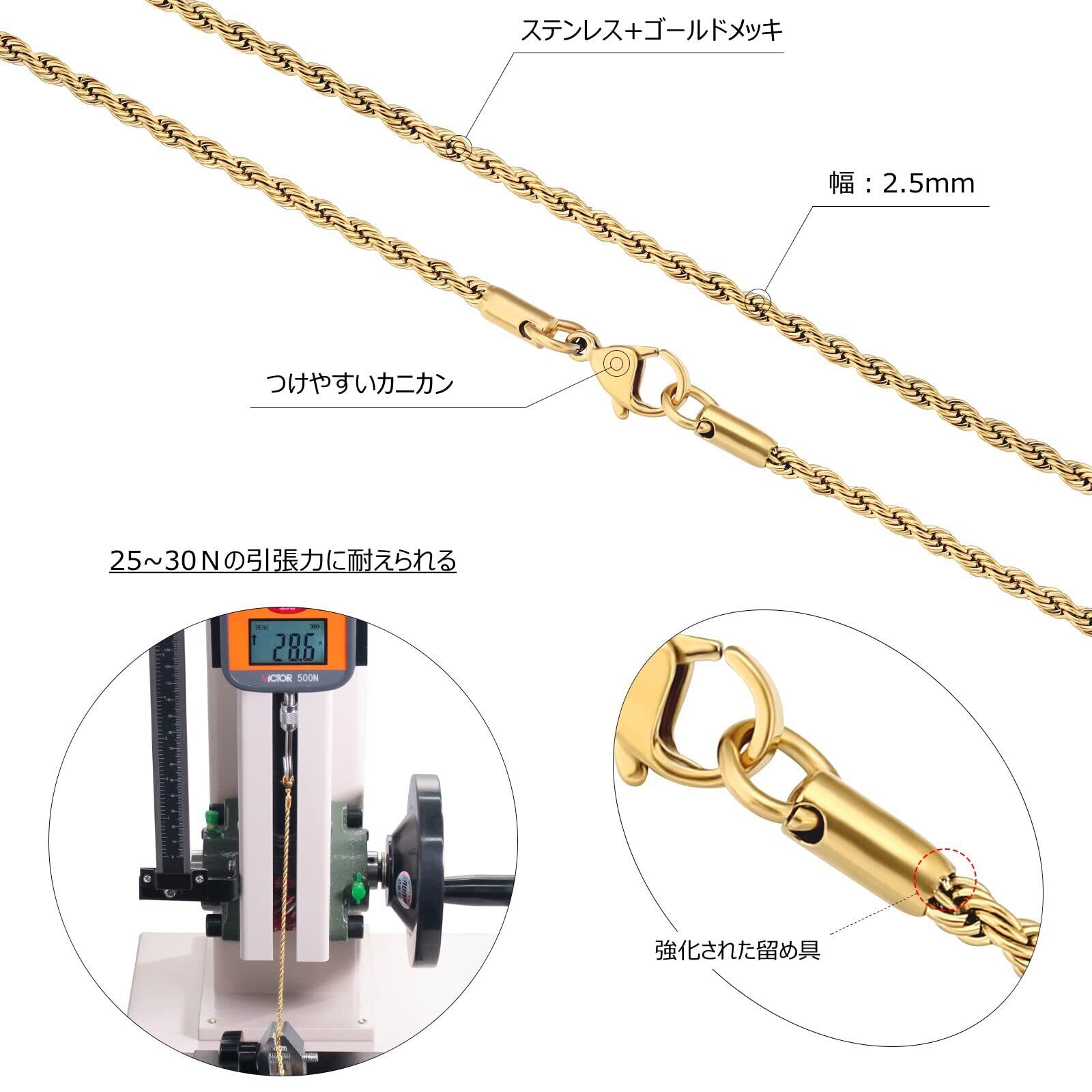 【より丈夫で長持ち】チェーンの接合部には、着脱が楽なカニカンを使用しています。通常の引き輪よりつけやすいし、簡単に外れないです。良質なメッキを施したのでサビによる変色や黒ずみを防いで常に美しさを保ちます。