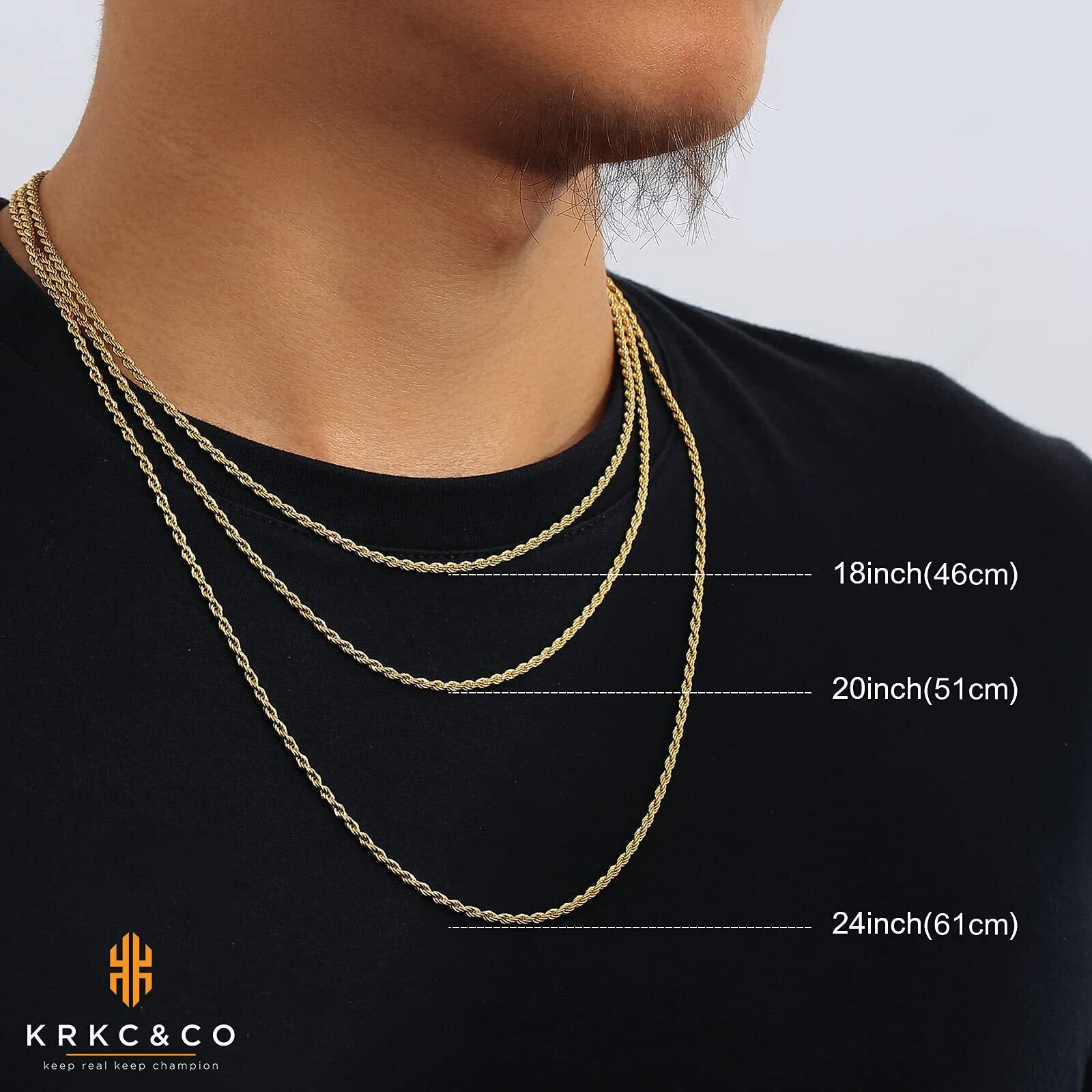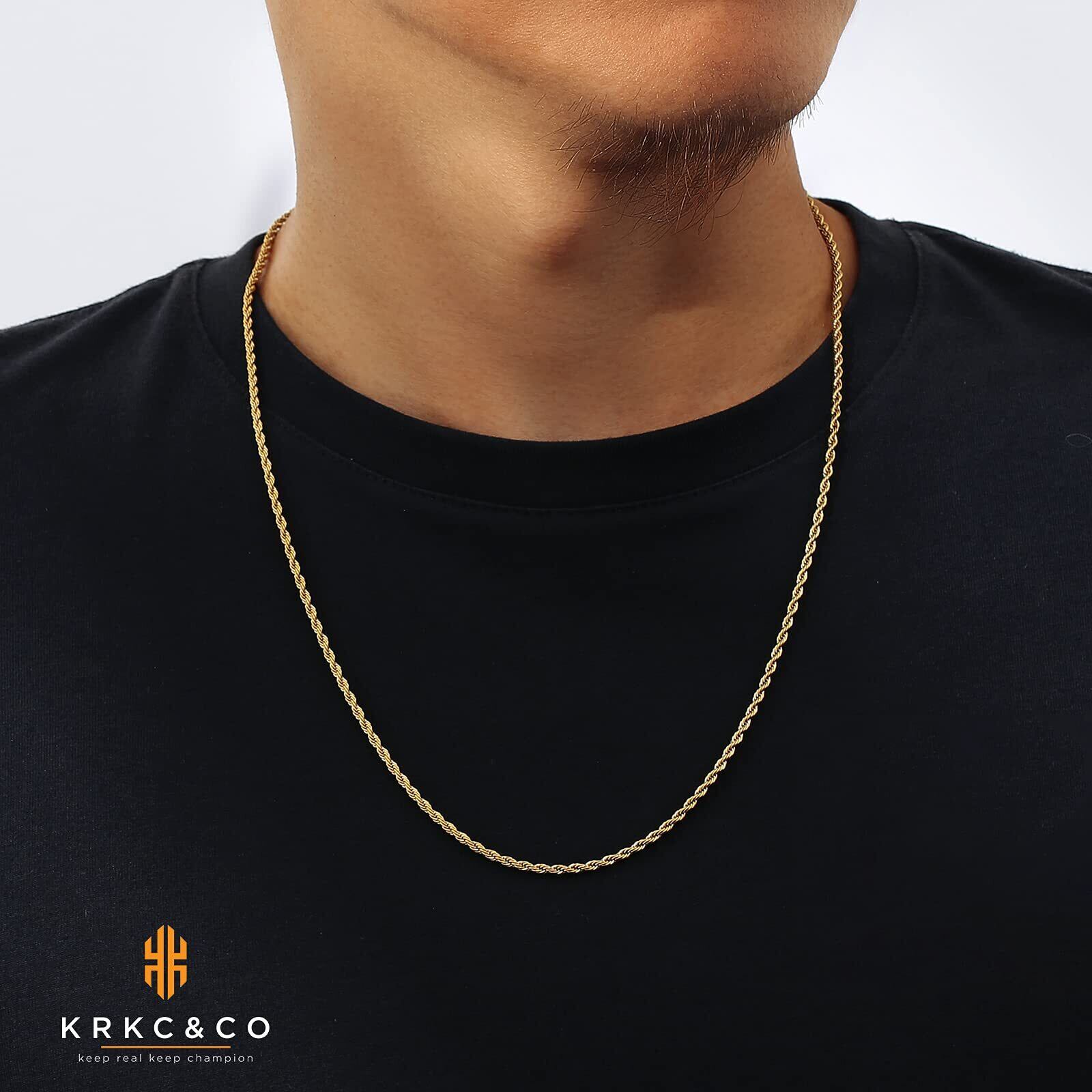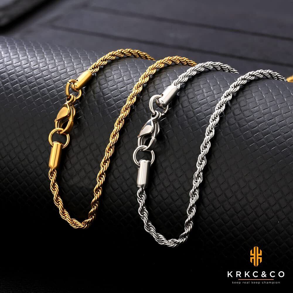 KRKC&CO フレンチロープチェーン こむぎチェーン 幅2/2.5/4/6mm メンズ チェーンネックレス ステンレス 金メッキ ネックレスチェーンのみ ハワイアンジュエリー シンプル 男女兼用 アクセサリー