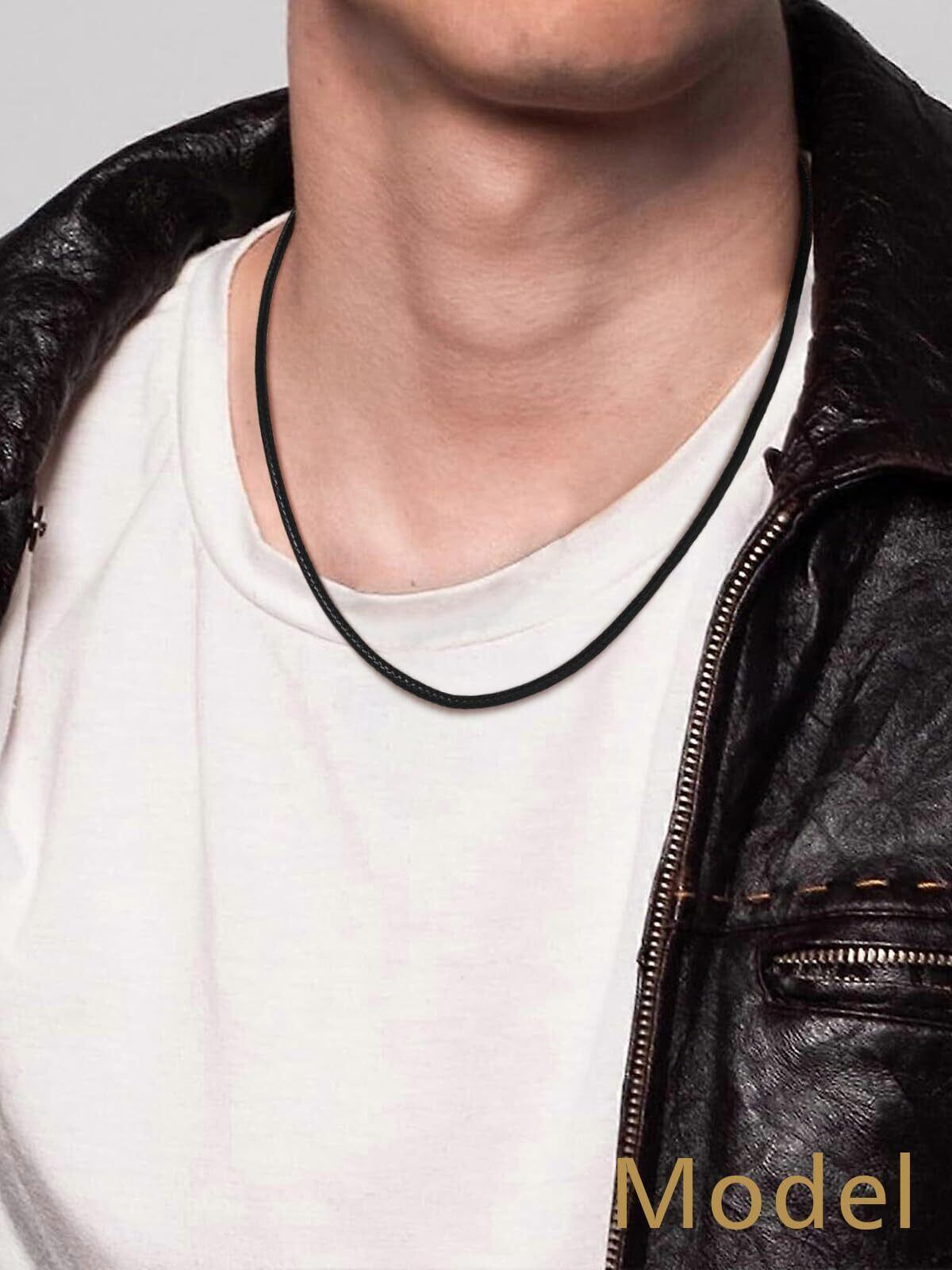 【お肌に優しい紐ネックレス】チェーンネックレスはレザーを採用します。水や汗に強く、アレルギーになりにくく、頑丈で優れた材質です。金属アレルギーを心配する方もご安心してお使いいただけます。
