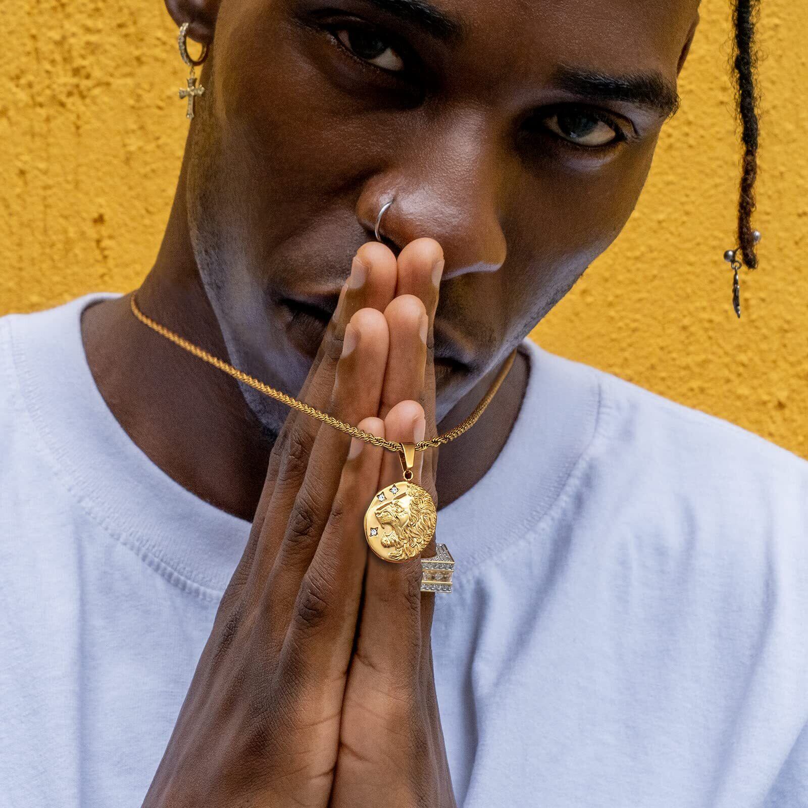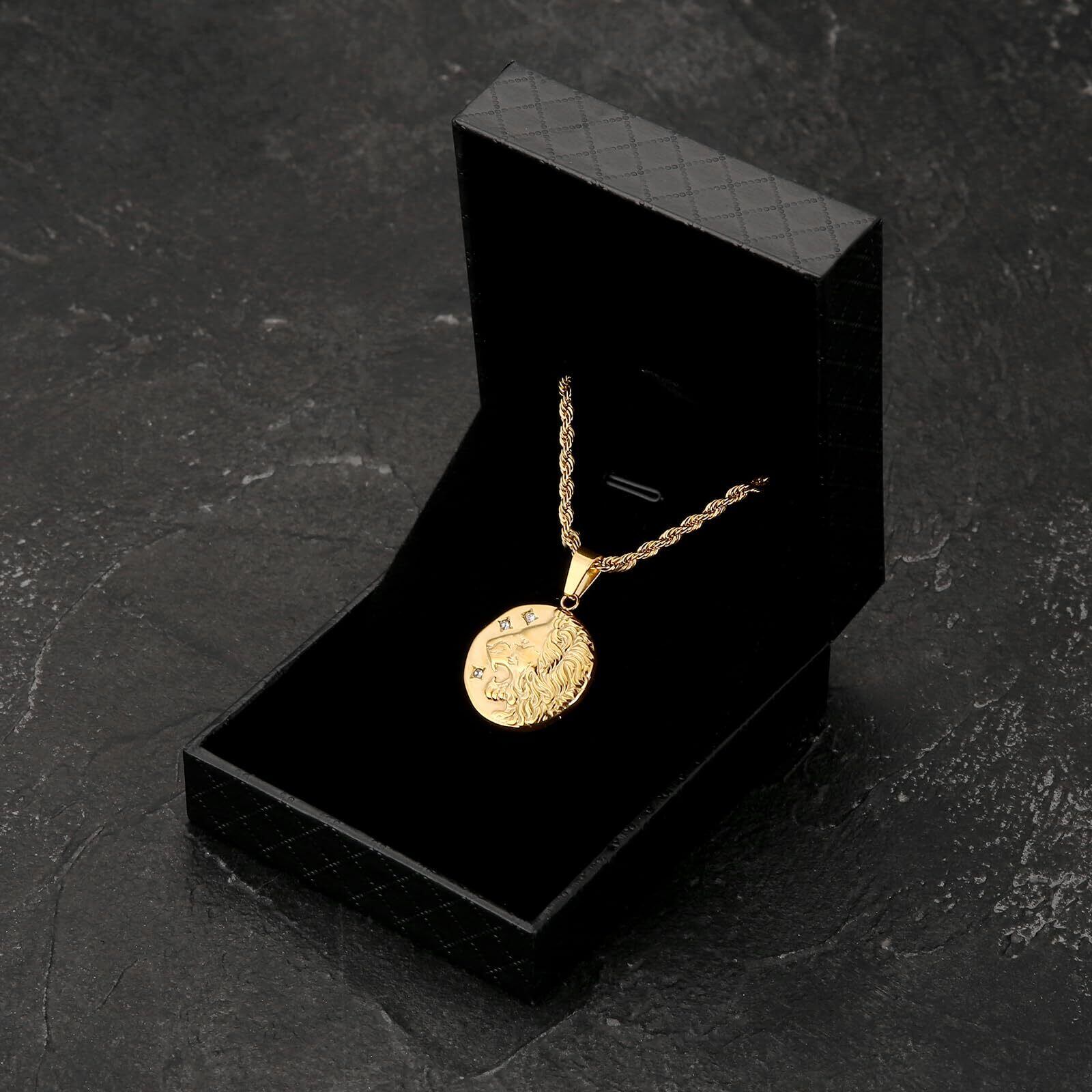 KRKC&CO コインネックレス ペンダント 幅2.5mmフレンチロープチェーン付き メダルネックレス ゴールドメッキ サージカルステンレス アレルギー対応 お守りアクセサリー メンズ 誕生日 ギフトボックス