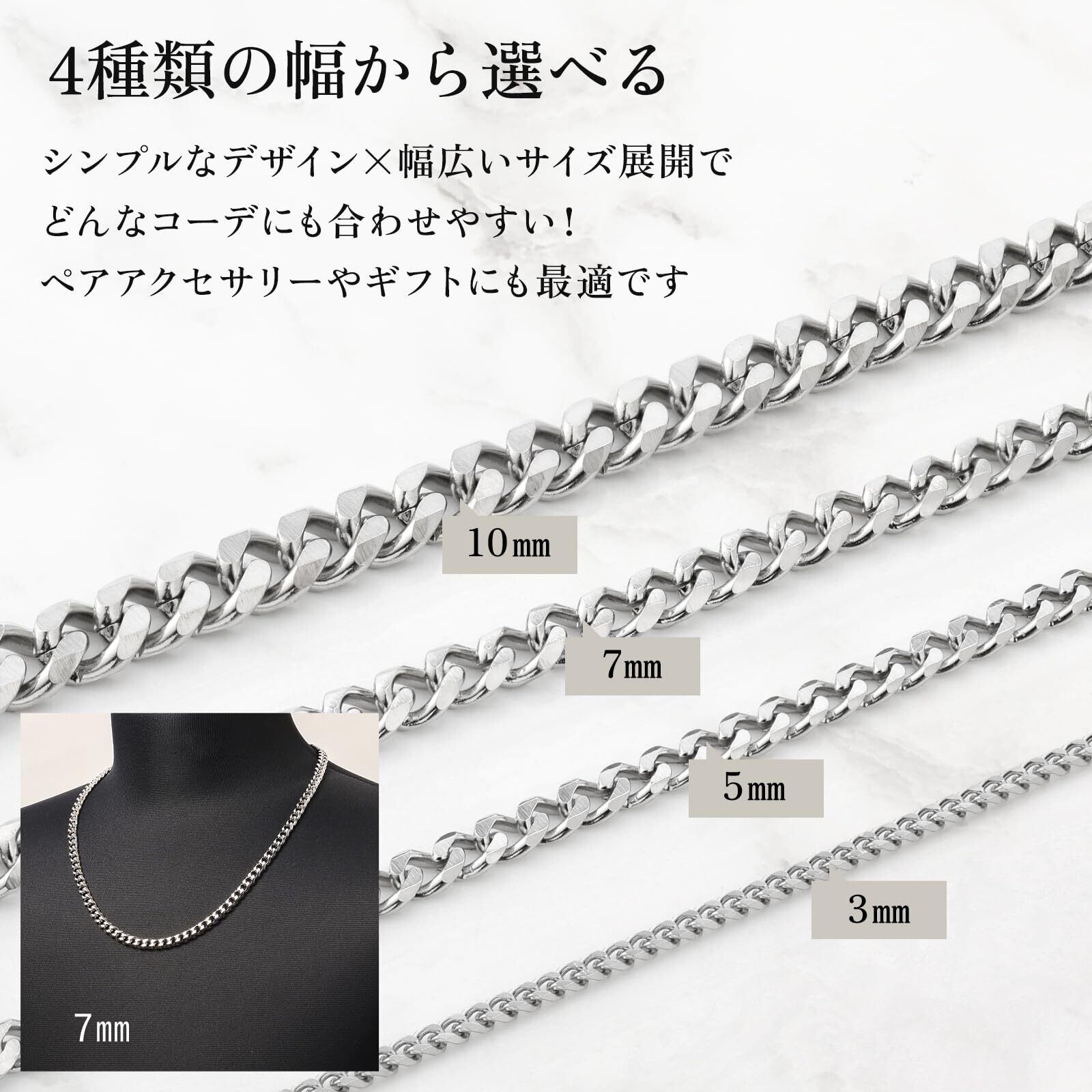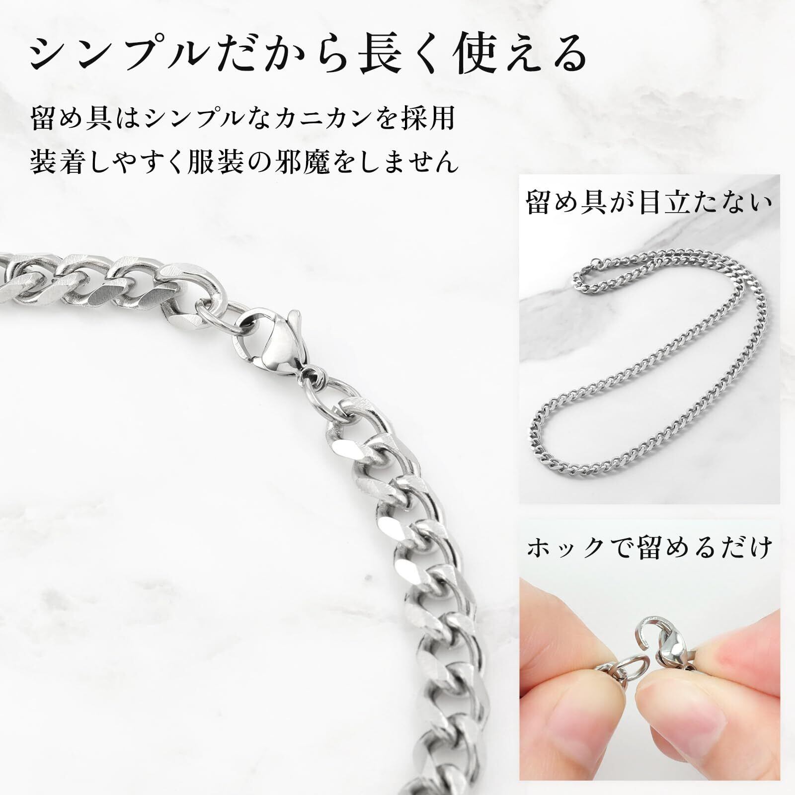 【安心のステンレス製】金属アレルギーを起こしにくい素材と言われているステンレス製のネックレスです。ステンレスはほかにも錆びづらいためお風呂に入る時でもつけっぱなしで大丈夫です。 ※アレルギー症状を起こしにくいステンレスですが、もしお肌に異常が感じられた場合は直ちに着用をやめるようお願いします。