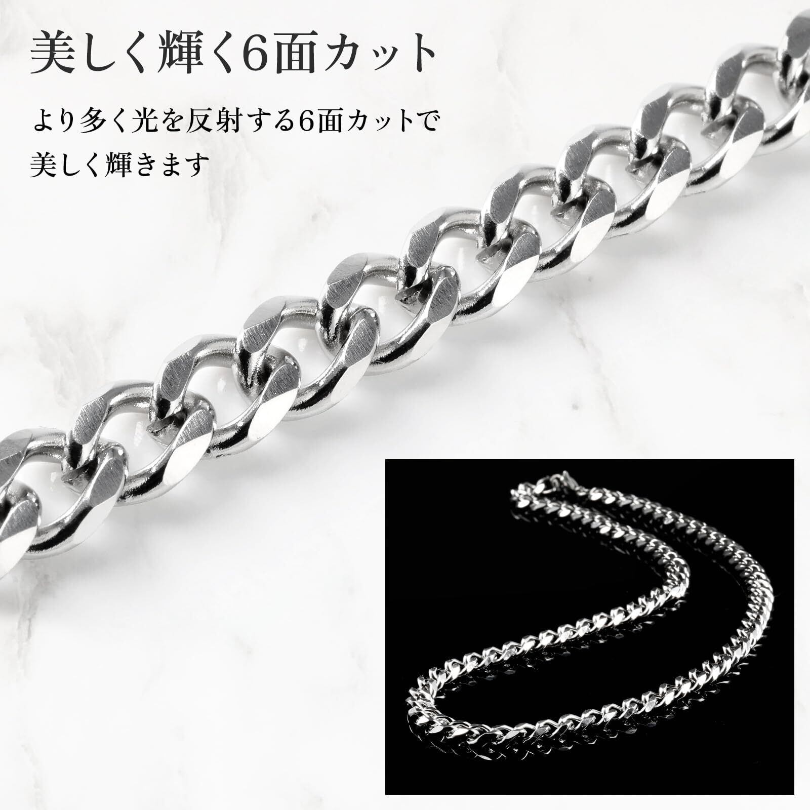 [La LibeModa] 喜平 ネックレス メンズ チェーンのみ ステンレス 6面カット 金属アレルギー対応
