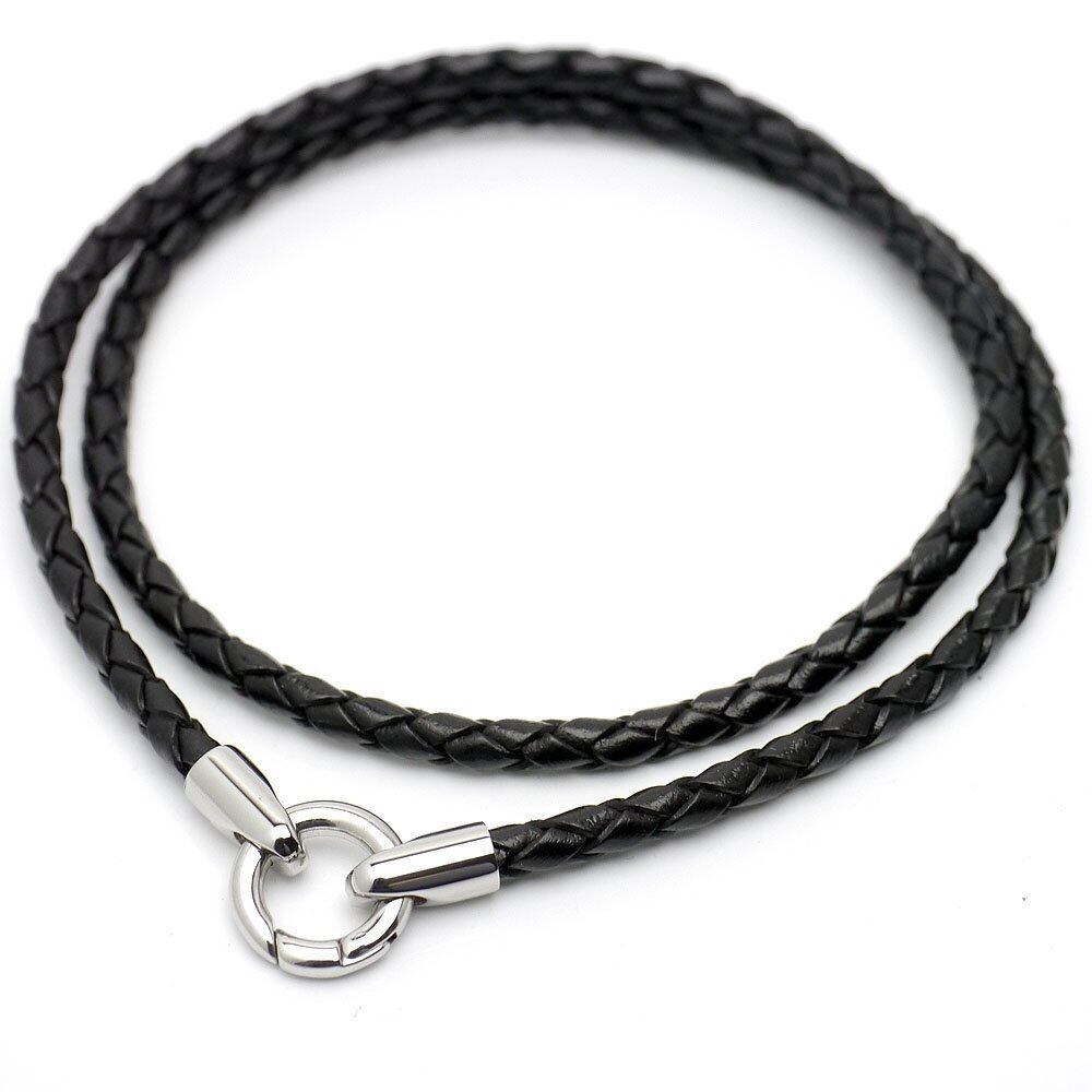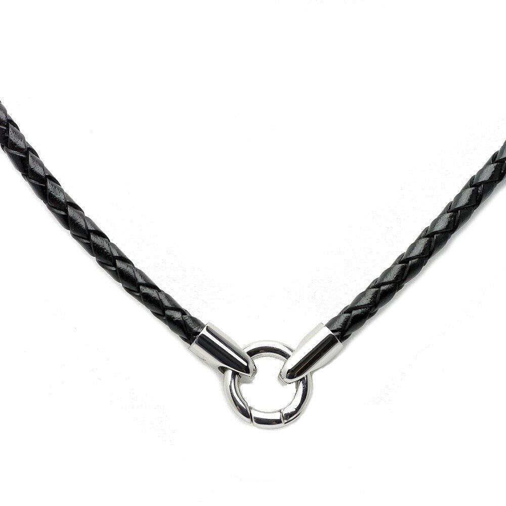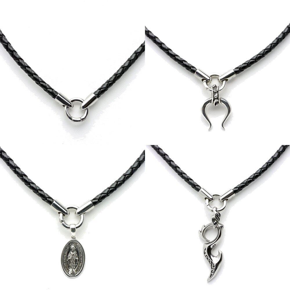 [シルバーワン] ペンダント専用レザー チョーカー [黒/焦げ茶 幅4mm](40cm45cm50cm60cm) ステンレス 編み込みネックレス メンズ