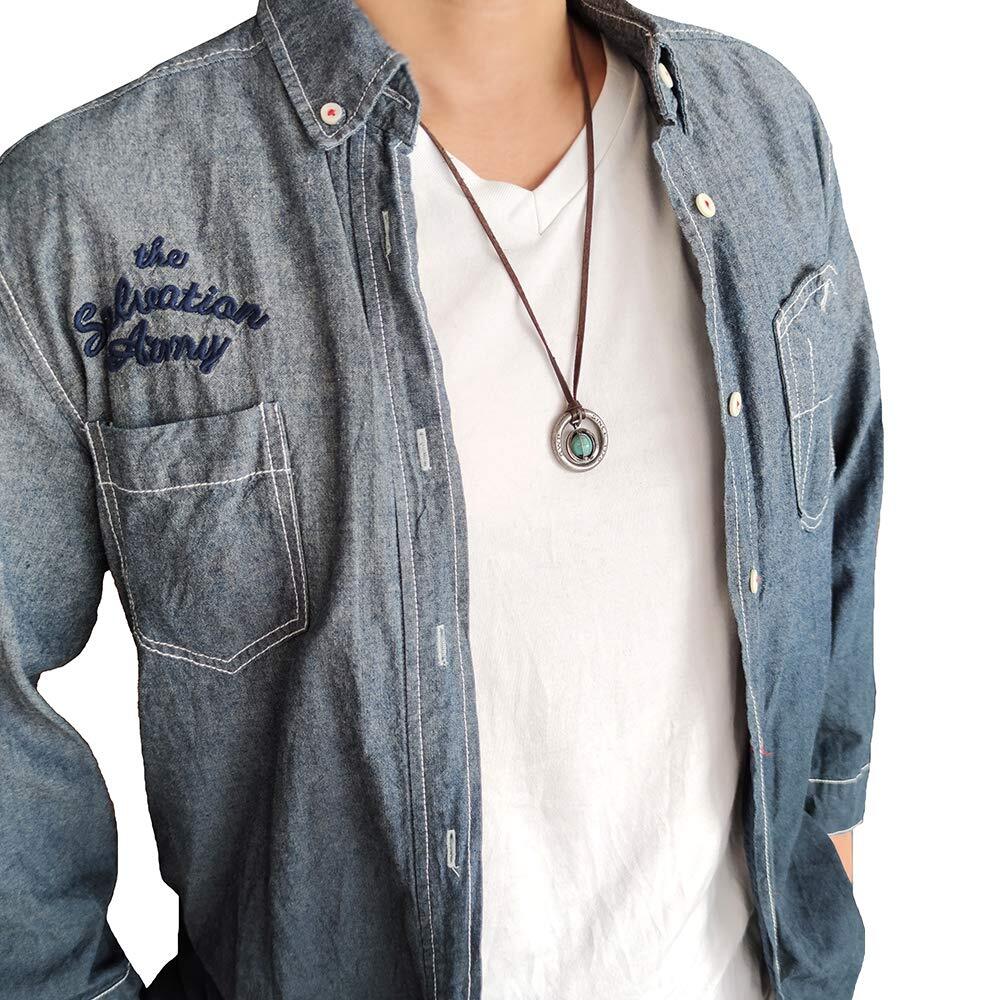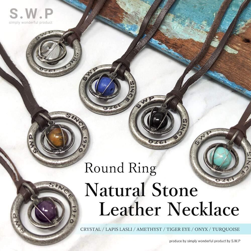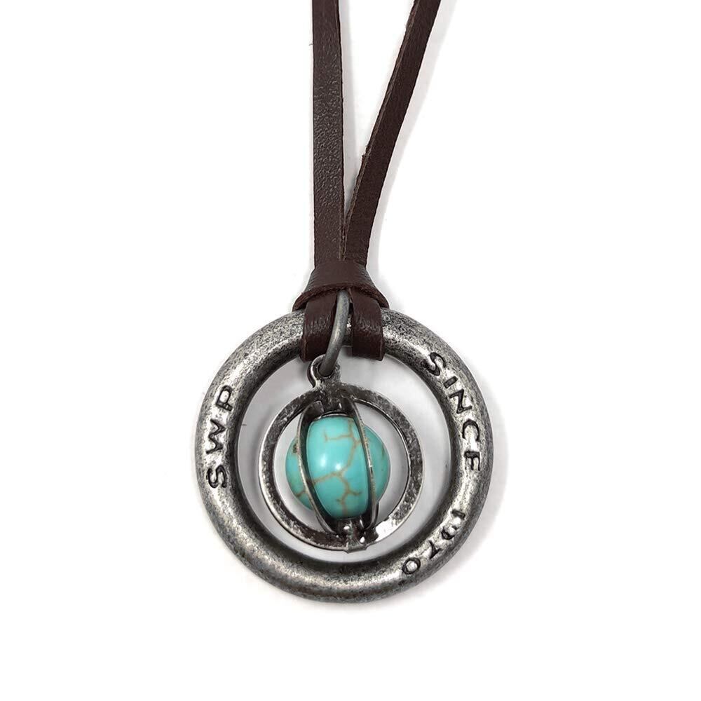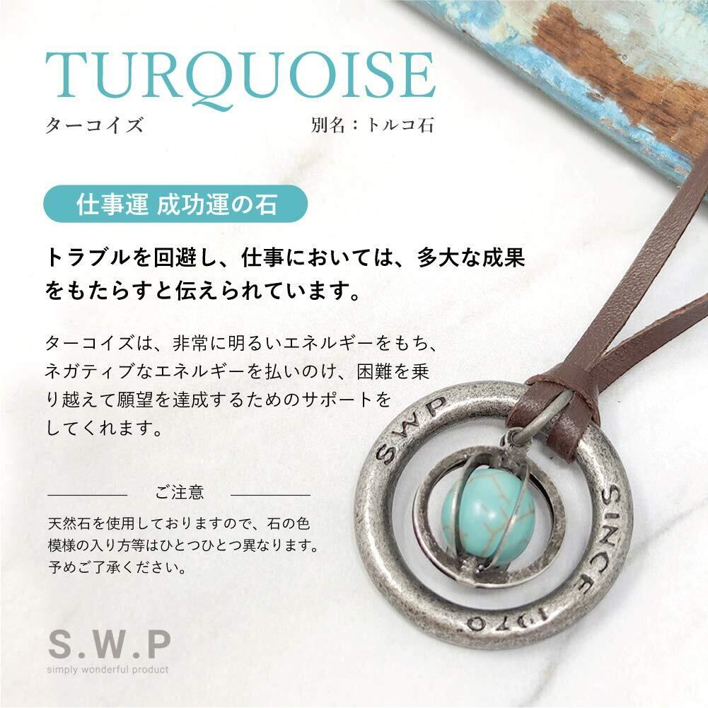 【在庫セール】【S.W.P】 ストーン メンズ ネックレス シンプル リング 天然石 革ひも ロング ネックレス パワーストーン レザー ペンダント (ターコイズ) rsbn-001d | 無意味ステッカー