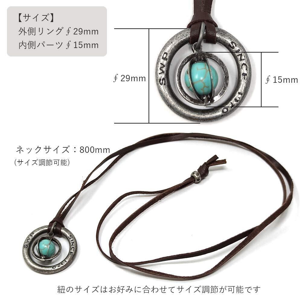 【素材】ペンダント トップ:合成石/亜鉛合金 ネック紐:牛革 *ターコイズは合成石を使用しております。