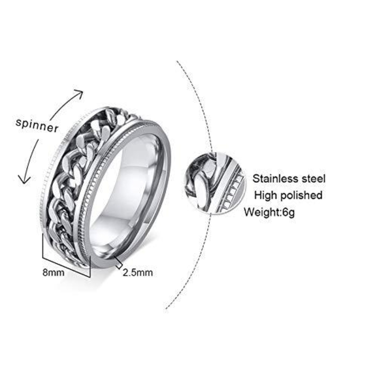 【Rockyu 指輪】チェインリング 回転 回る メンズリング 【素材】 ステンレス 指輪 幅8mm