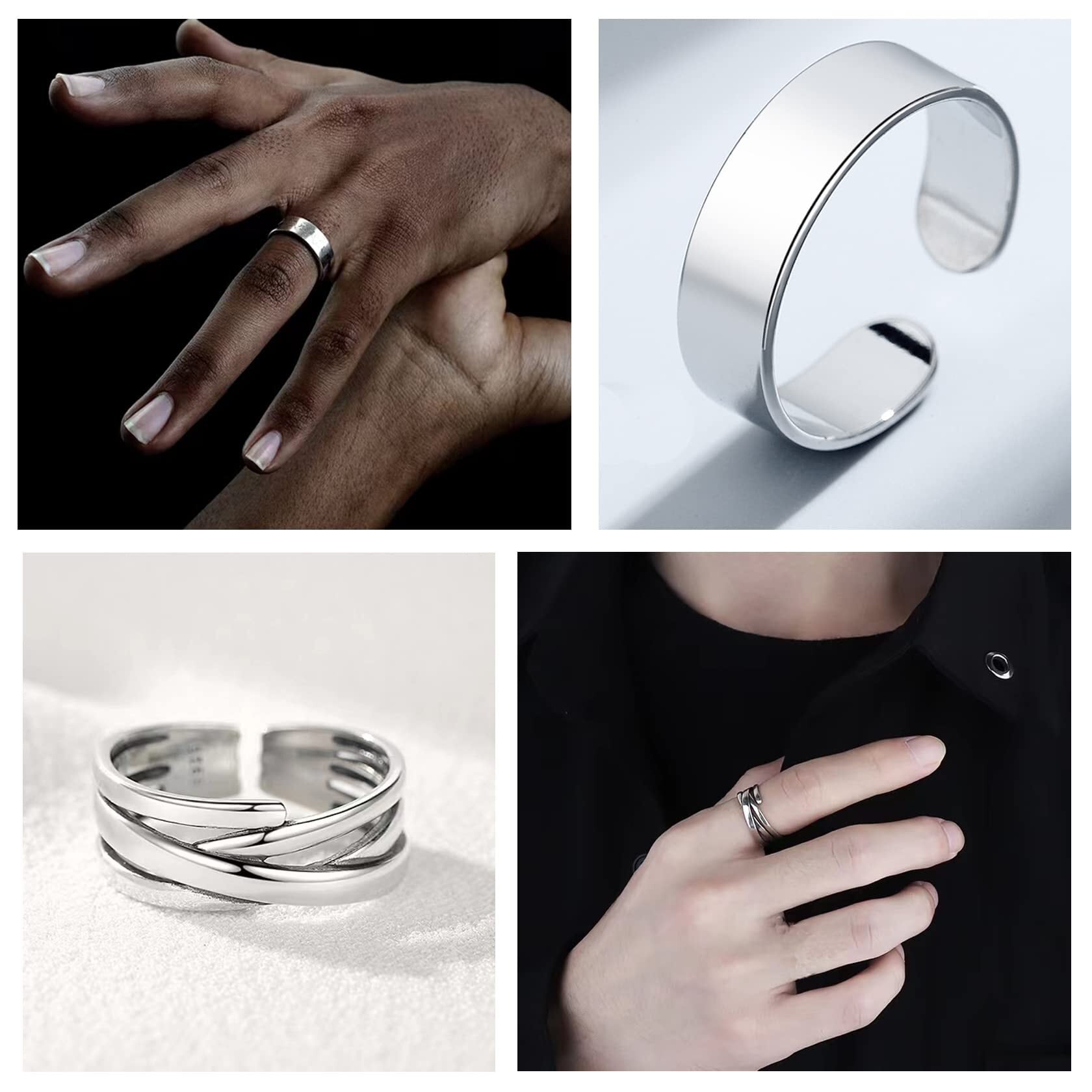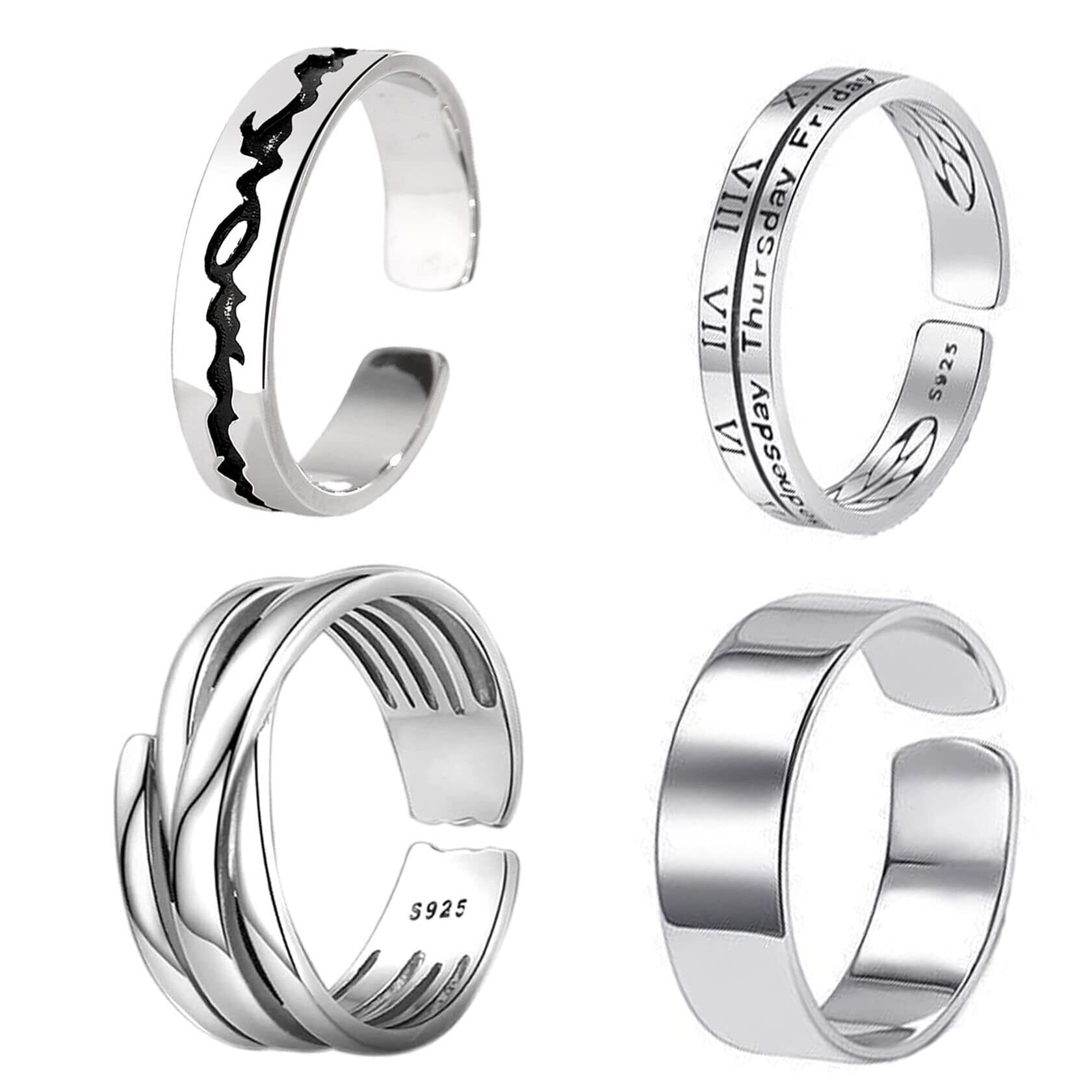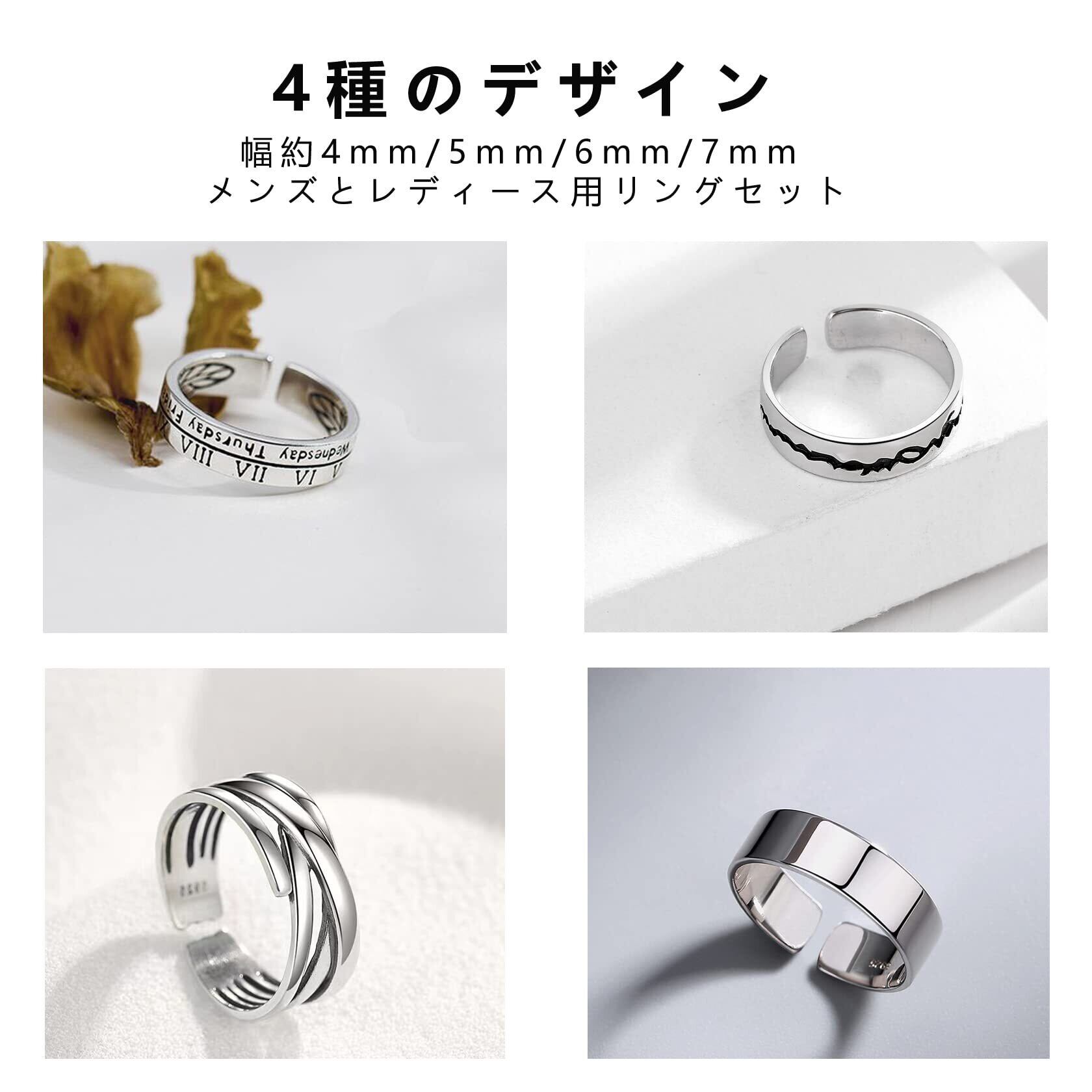 [Tiszink] 指輪 メンズ ファッションリング 指輪 リング メンズ アクセサリー シルバー リング 人気 フリーサイズ 重ね付け めんず おしゃれ 調整可能 プレゼント ギフト 4点セット