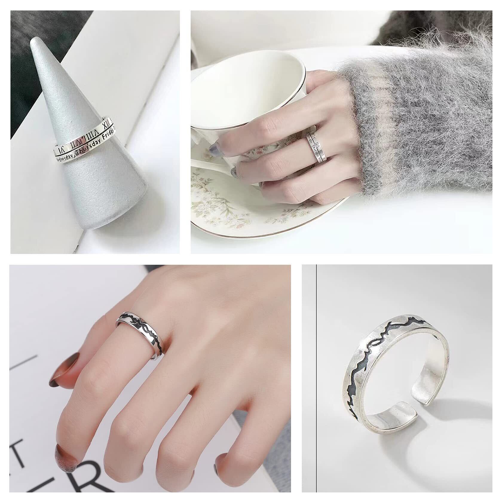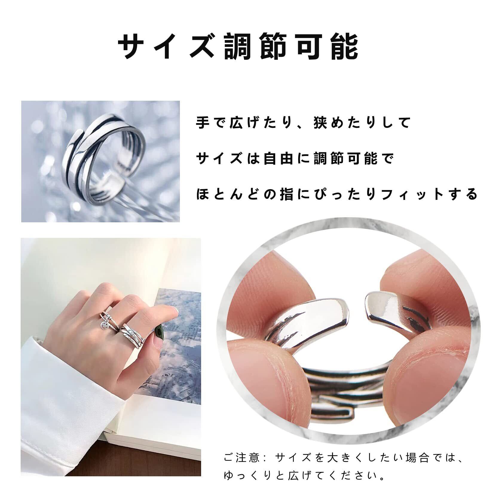 【安心な材質】指輪は高品質の合金と銀メッキの加工を採用しており、コインを作るために使用されるのと同じ材料で、光沢があり、錆びにくいのが特徴です。シルバー925などの純銀製品に遜色ない耐食性はあります。金属アレルギーの方にも安心に使用してください。だが、アクセサリーを長持ちさせ、アレルギーを防ぐためには日ごろのお手入れは大切です。汗をかいた時はで洗浄してきれいな布で水分をふき取ってよく乾かしてください。