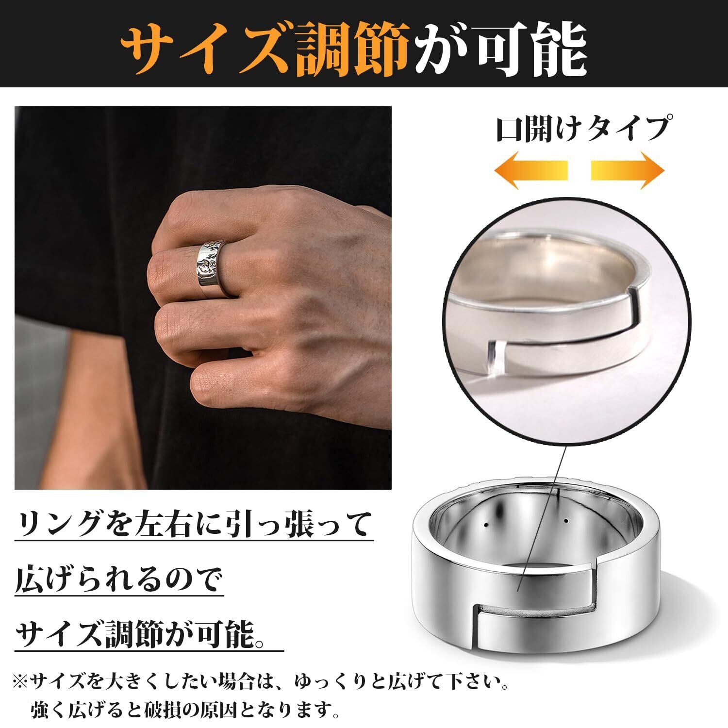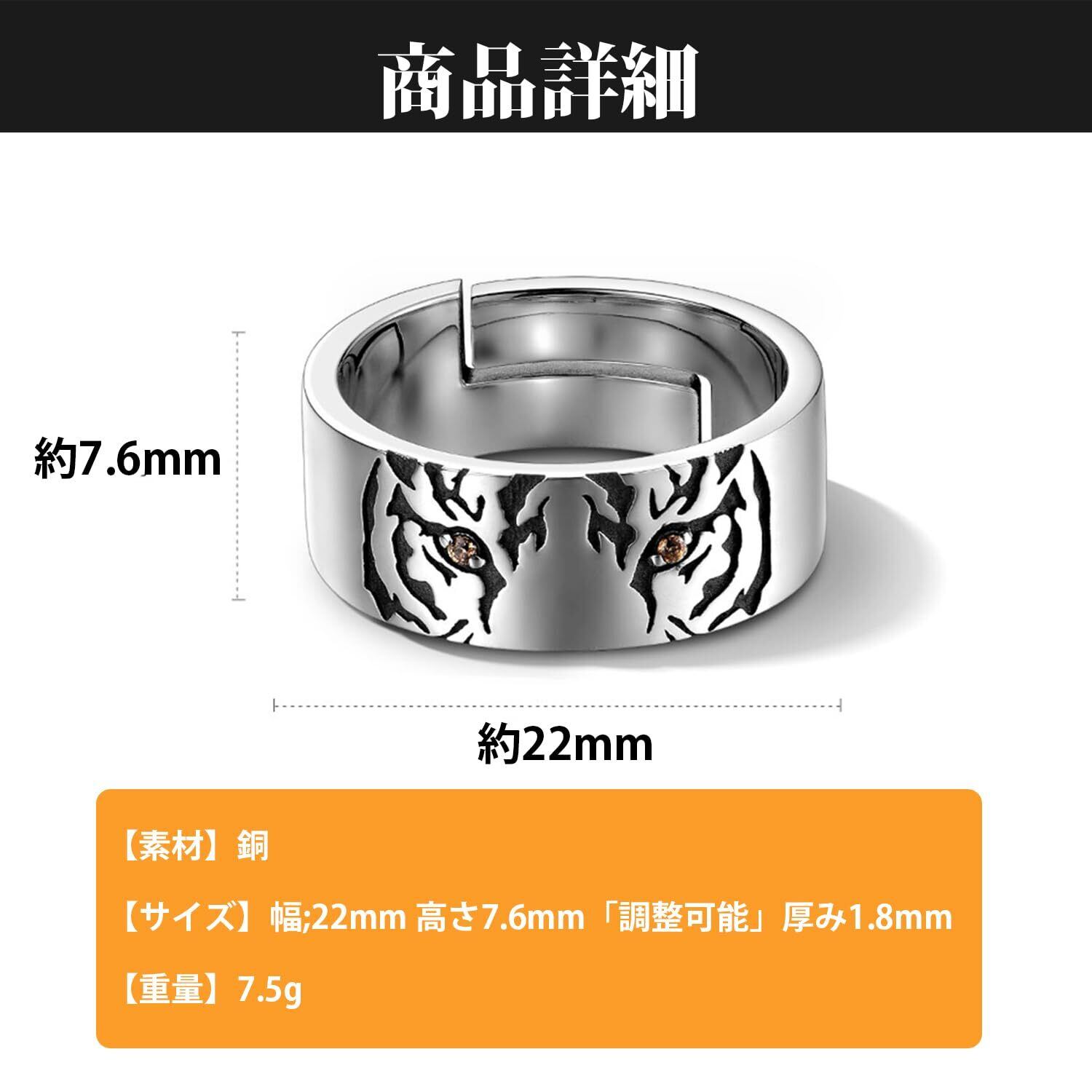 シンプルで着用しやすいデザインで、派手過ぎず、ちょうど良い存在感が魅力の口開け指輪です。日常でもフォーマルな場面でも活躍する、人気のフリーサイズファッション指輪です。 フリーサイズ指輪 、メンズ、かっこい、猫リング。素材は銅、サイズは幅;22mm 高さ7.6mmで調整可能、厚み1.8mm、重量は7.5g。 落ち着いたデザインに仕上がり、日常での着用に最適です。カジュアルでもきれいめなコーデにも自然に取り入れやすく、オシ ャレ度がワンポンととして上がります。デート、パーティー、食事会など様々なシーンに適用します。 日々頑張っている自分へのご褒美としても、大切な方へのプ レゼントとしても適しています。特別な日、誕生日、記念日、バレンタインやクリスマスなどのギフトに最適です。
