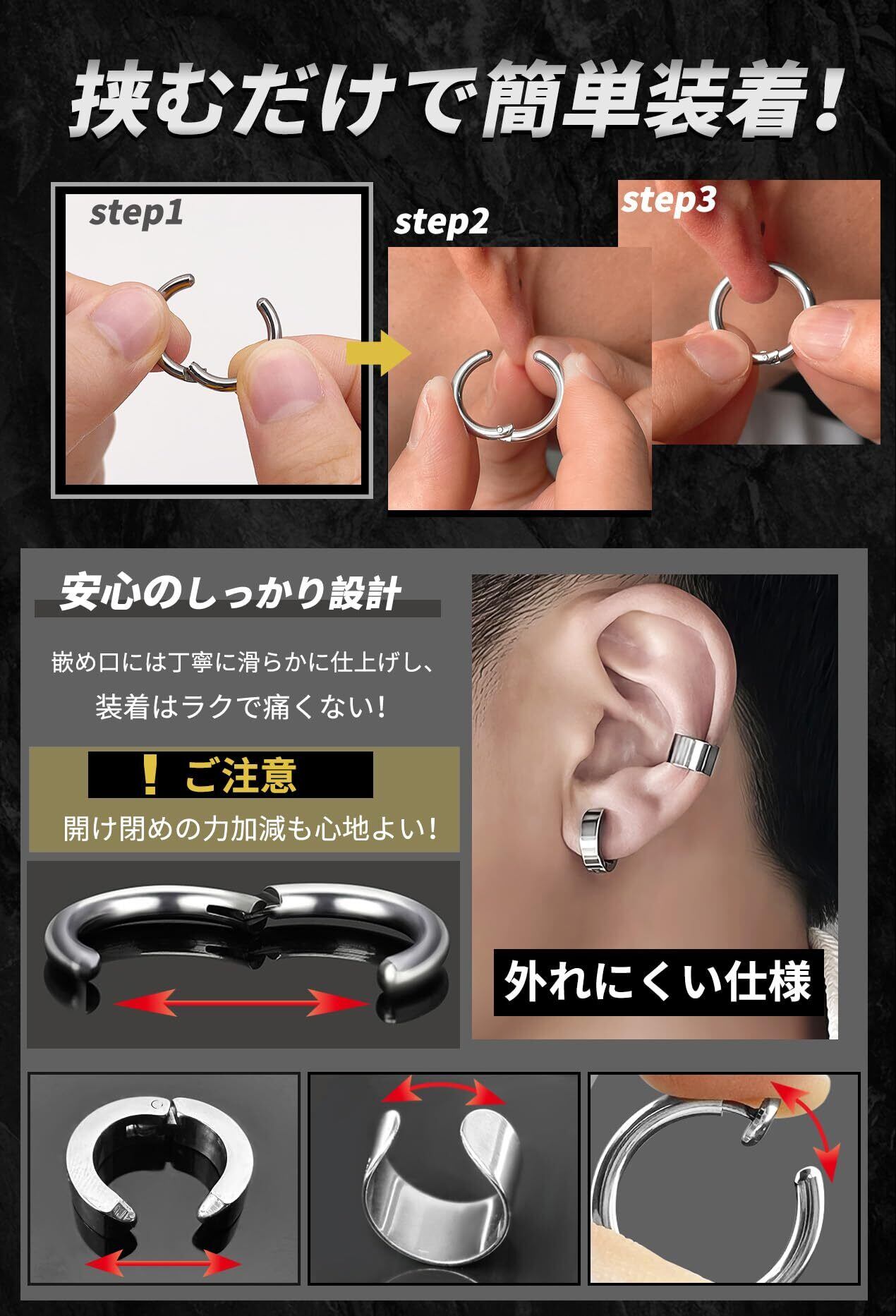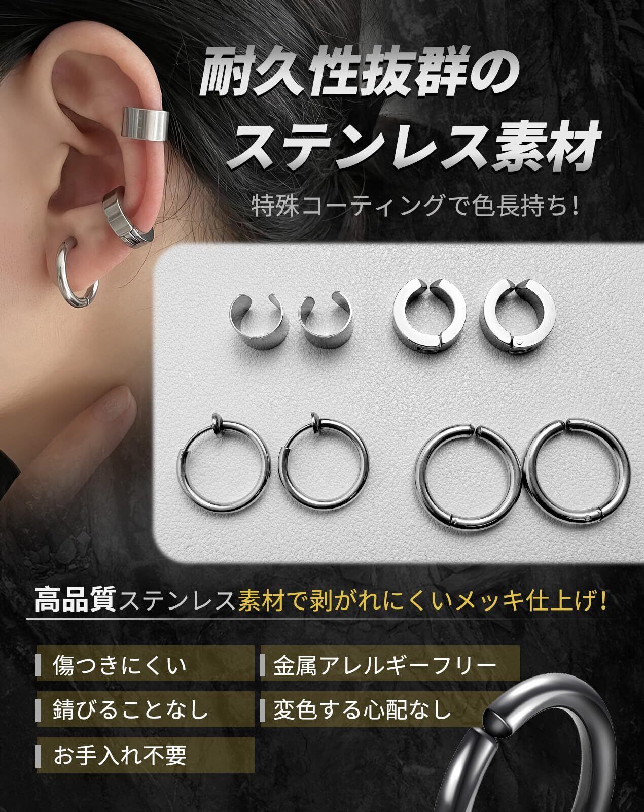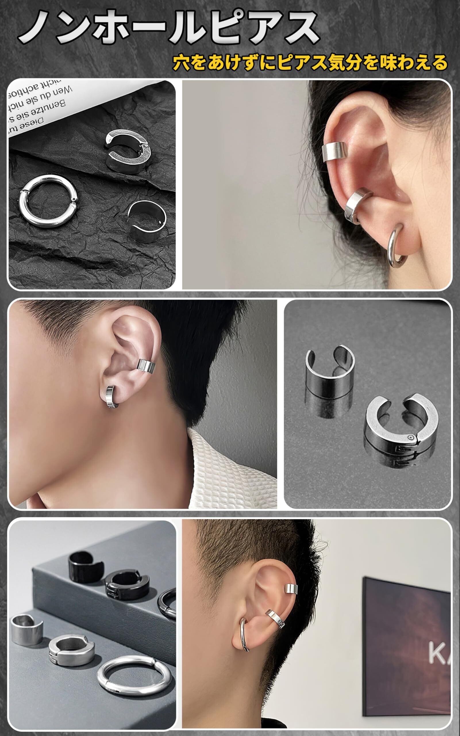 【特価セール】GOKEI ピアス フェイクピアス ノンホールピアス イヤーカフ フープピアス リングピアス ステンレス製 メンズ レディース 両耳 フープイヤリング 軟骨ピアス シンプル イヤリング 男女兼用 ジュエリー アクセサリー | 無意味ステッカー