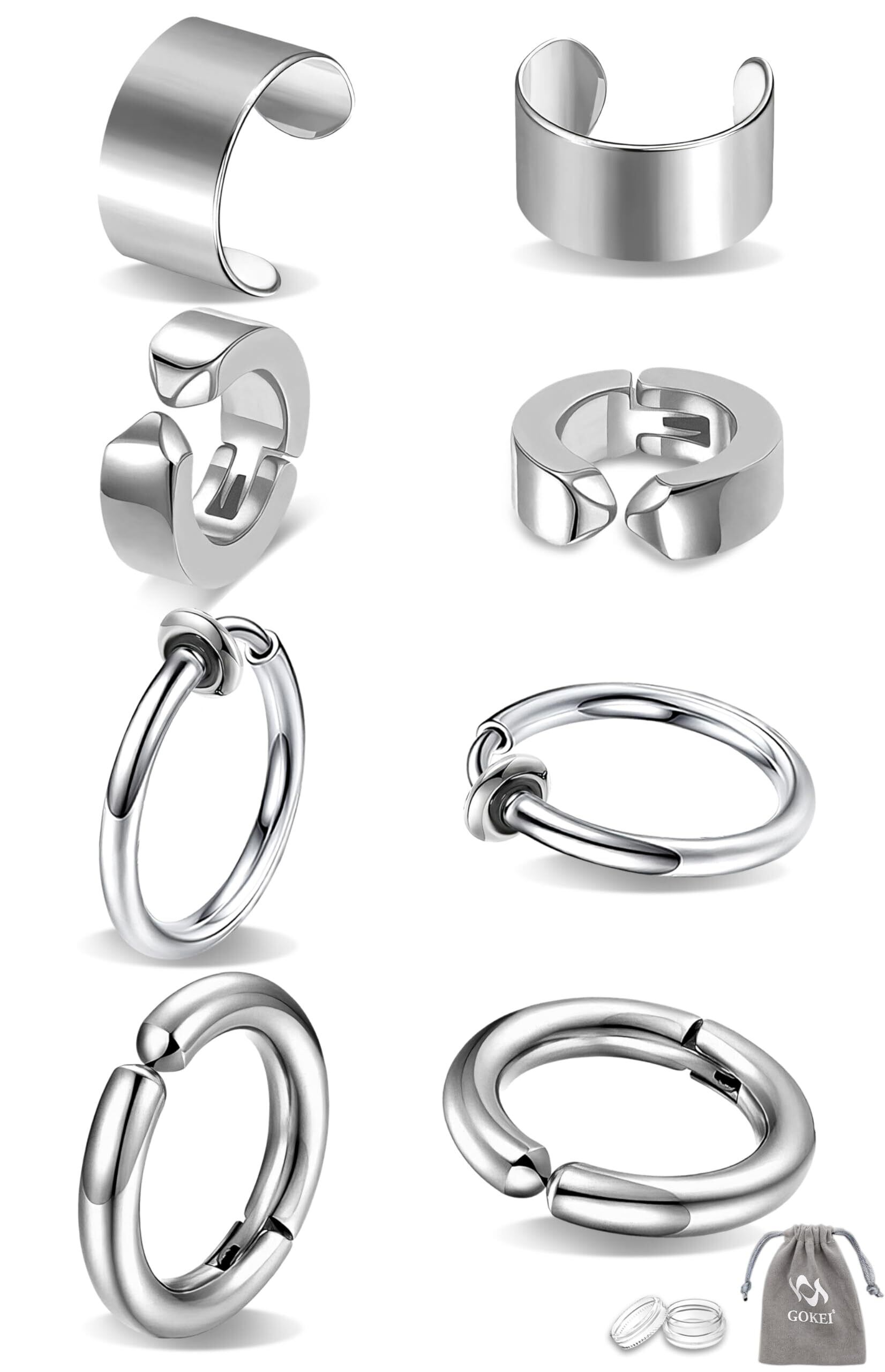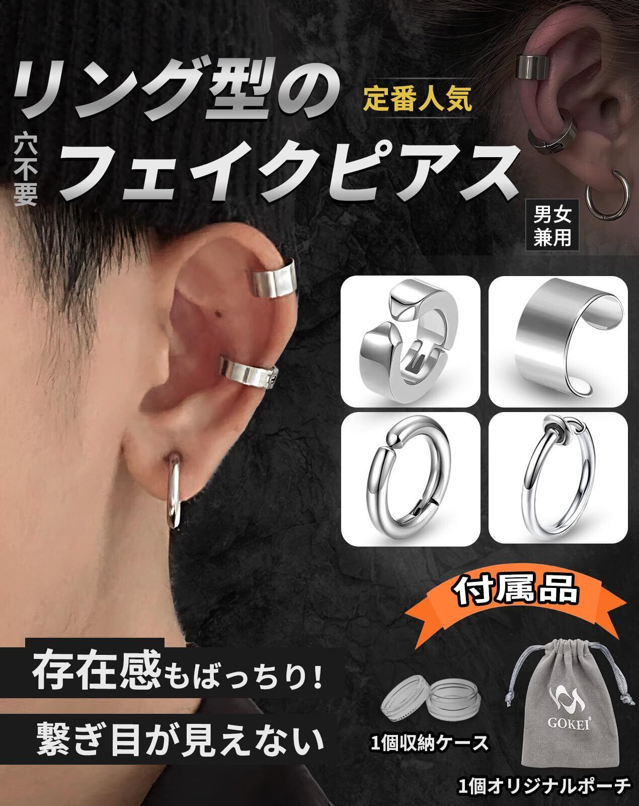GOKEI ピアス フェイクピアス ノンホールピアス イヤーカフ フープピアス リングピアス ステンレス製 メンズ レディース 両耳 フープイヤリング 軟骨ピアス シンプル イヤリング 男女兼用 ジュエリー アクセサリー