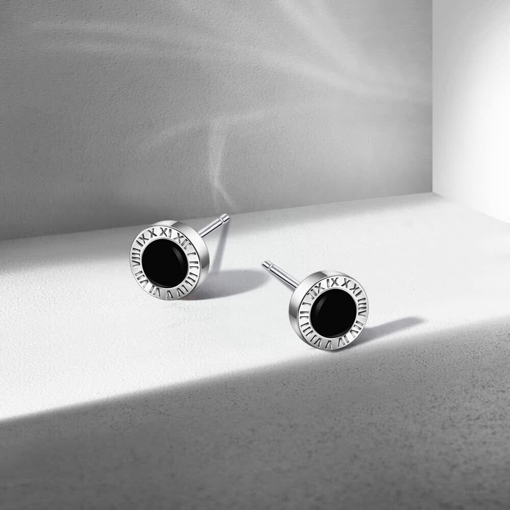 クラシックなデザイン: シンプルで着けやすいデザイン、スタイリッシュでコーディネートしやすい。中央は模造オニキスで、丸いフレームにローマ数字が刻まれています