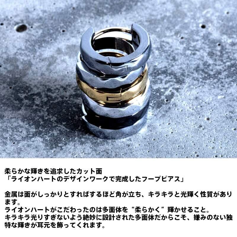【在庫処分】ライオンハート ラッピング済 カッティング フープピアス サージカルステンレス316L 金属アレルギー対応 片耳用 1点売り 別注ポーチ付き メンズ ブランド LION HEART | 無意味ステッカー