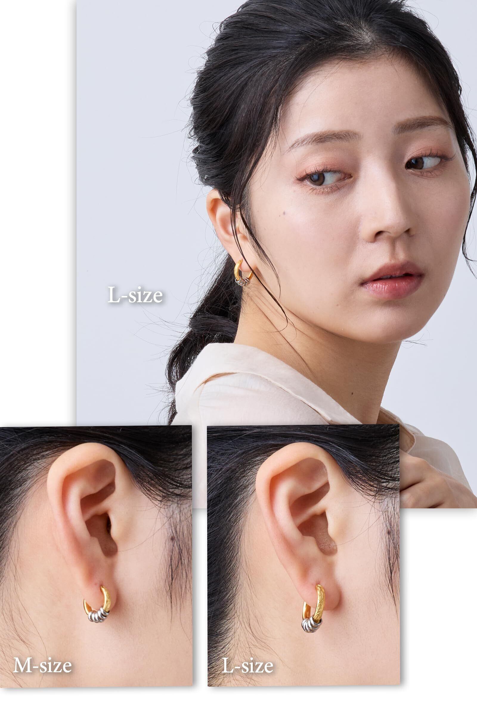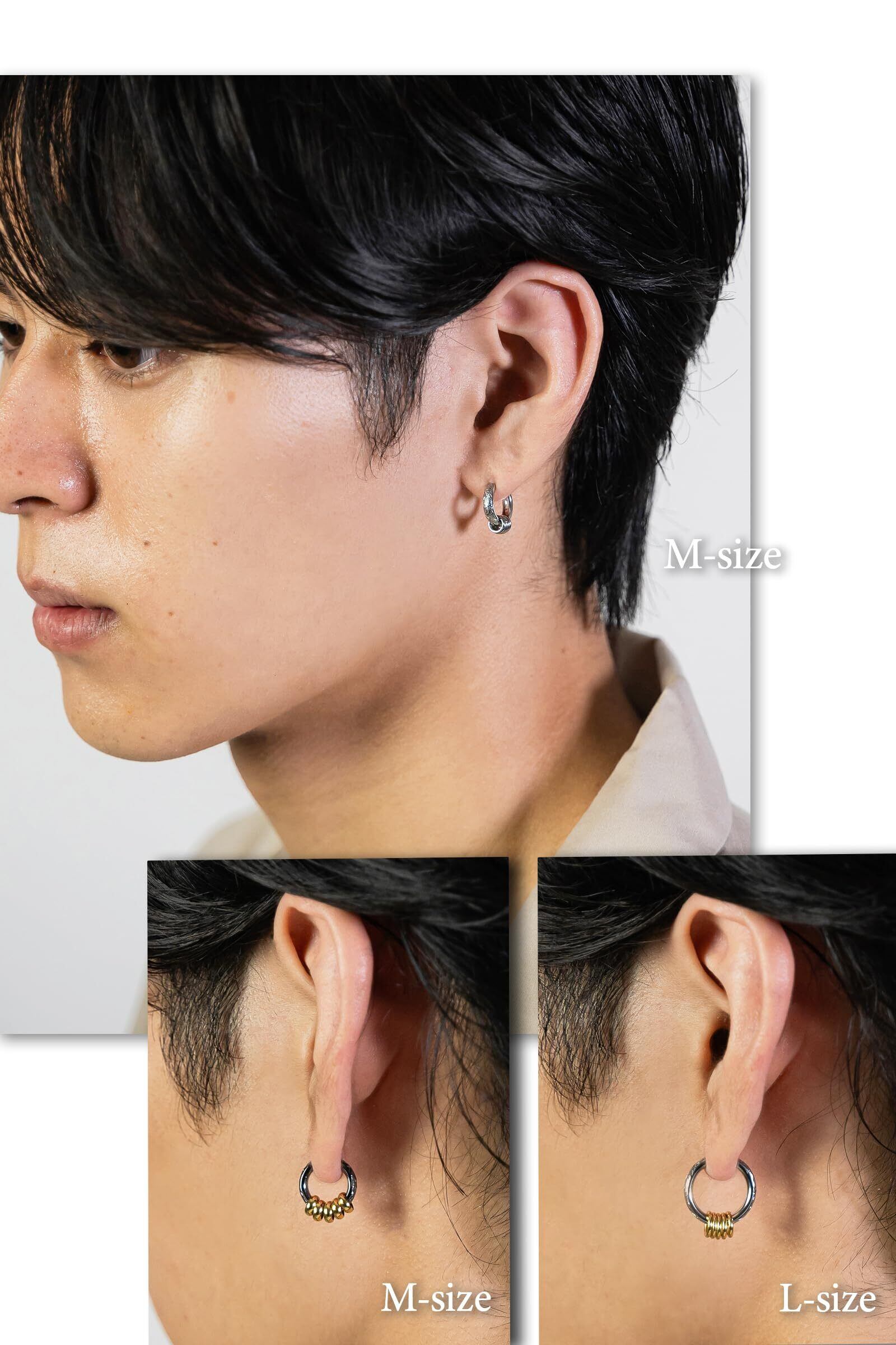 【様々なファッションと合わせやすいフープピアス】 フープピアスはメンズ、レディースの着用を問わず、カジュアルからフォーマルなファッションにも合わせやすく様々なシーンで活躍します。 キャッチレスな中折れタイプなのでキャッチをなくす心配もなく着脱も簡単です。