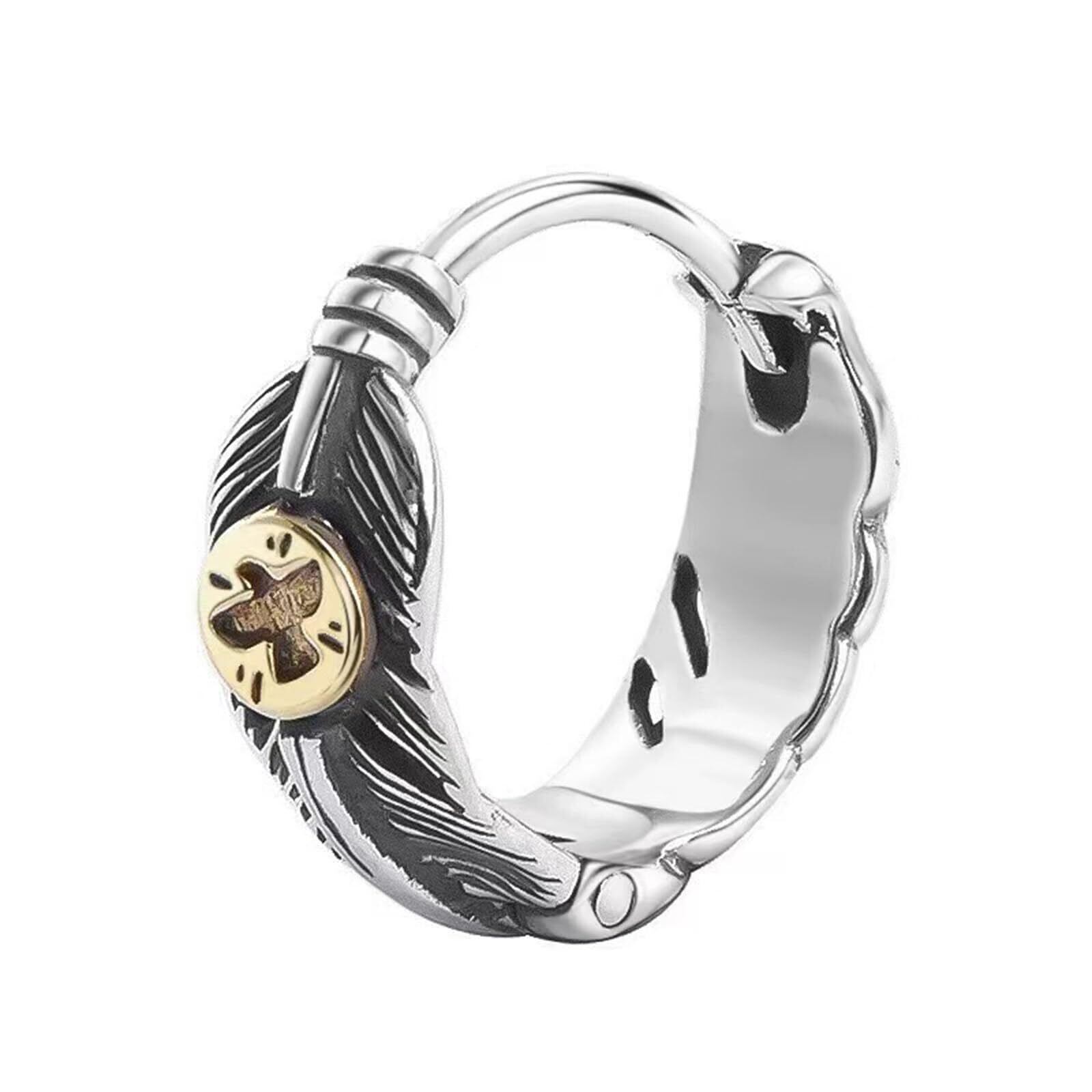Hanayaka ピアス メンズ フープ/スタッド 片耳 シルバー925 フェザー/イーグル イヤリングピアス シンプル レトロファッション 金属アレルギー対応 男女兼用 お洒落アクセサリー