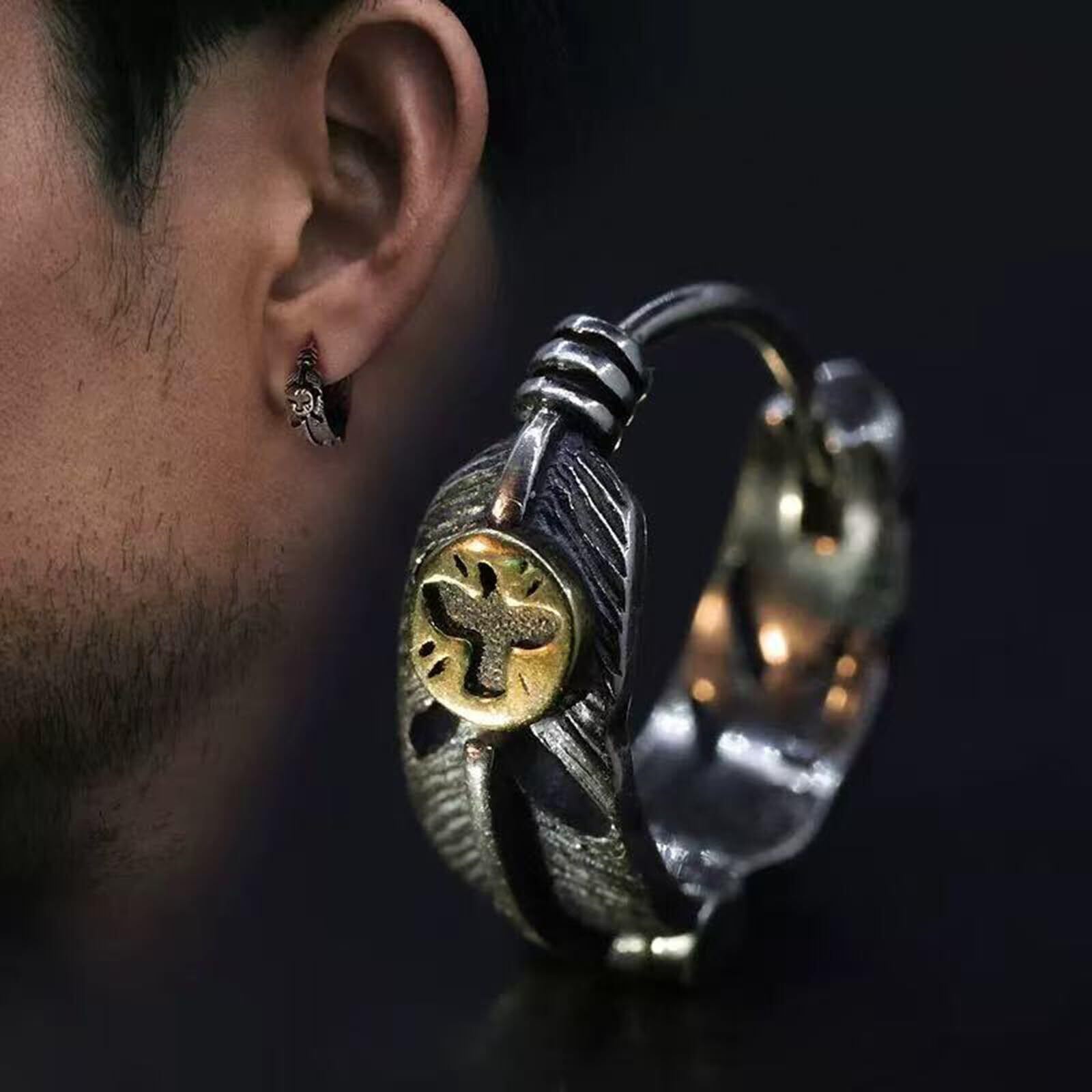 【フェザーデザイン】神聖な意味を持つ太陽神デザインを取り入れたモデルのイーグルフェザーピアス!メンズアクセで不動の人気を誇る。耳元にクールでチャーミングな魅力をプラスしてくれる一品です。※購入前のご注意:片耳用(1PC)での販売となります※