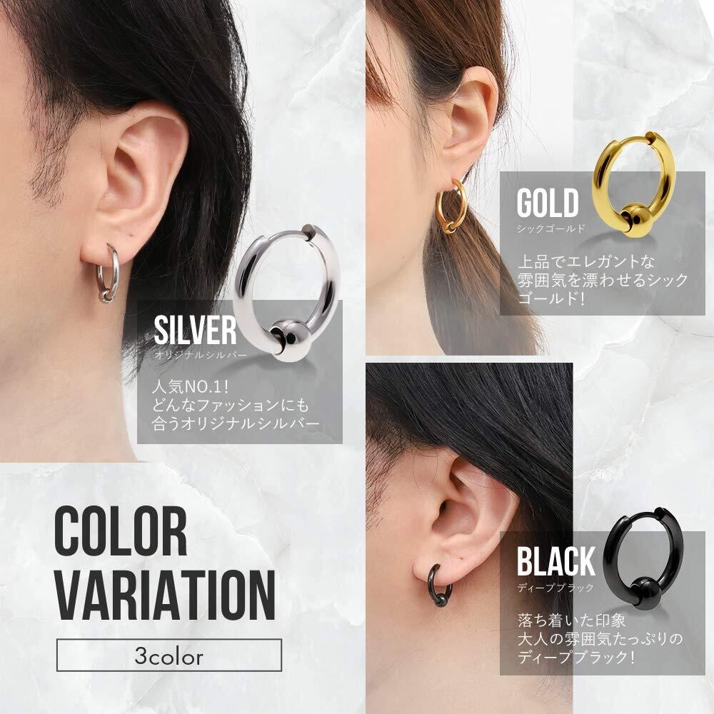 【在庫処分】[Puente] ピアス メンズ フープピアス フープ リング リングピアス レディース ボール ビーズ ステンレス ステンレスピアス シンプル 小ぶり 大ぶり 両耳 両耳セット 18g シルバー 14mm | 無意味ステッカー