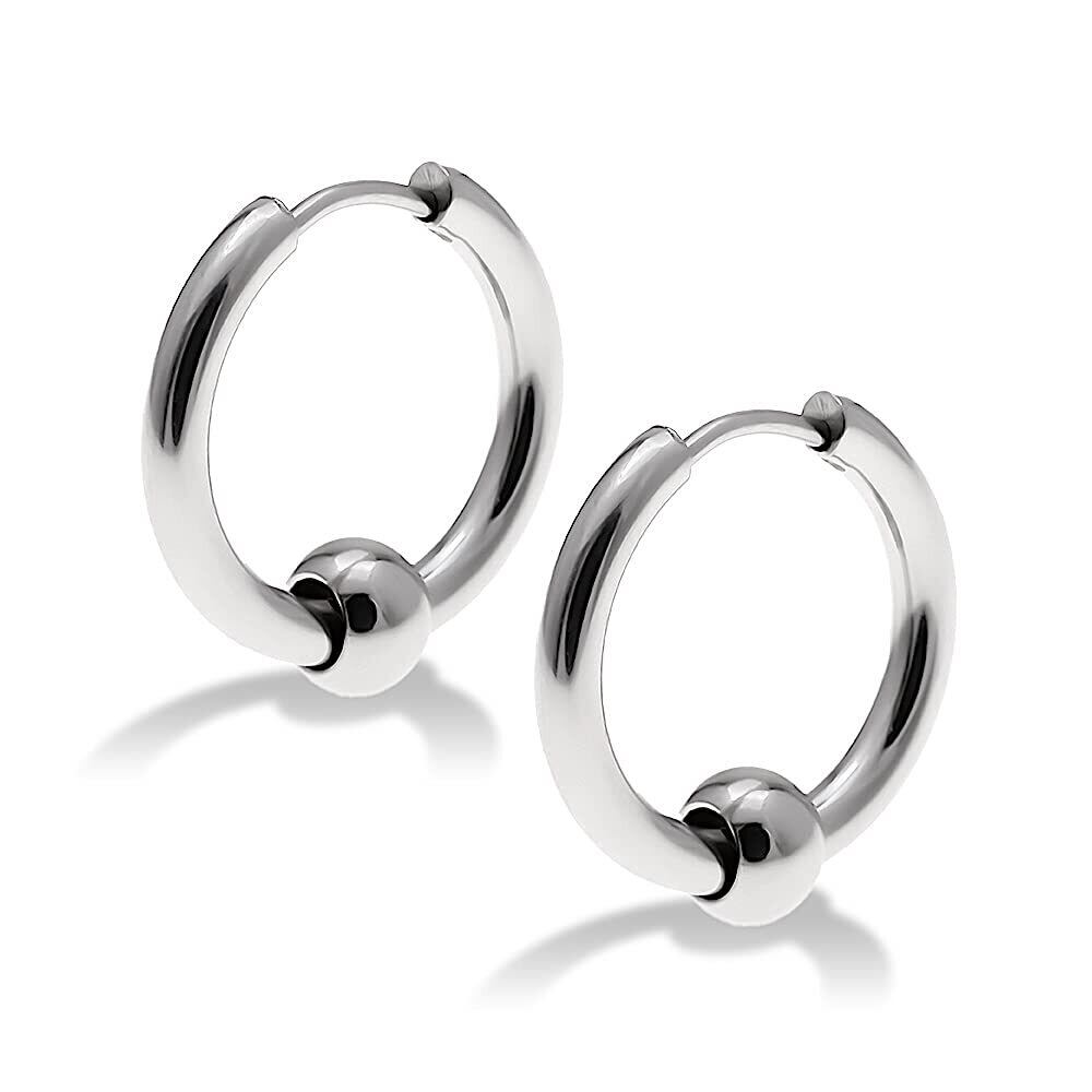[Puente] ピアス メンズ フープピアス フープ リング リングピアス レディース ボール ビーズ ステンレス ステンレスピアス シンプル 小ぶり 大ぶり 両耳 両耳セット 18g シルバー 14mm
