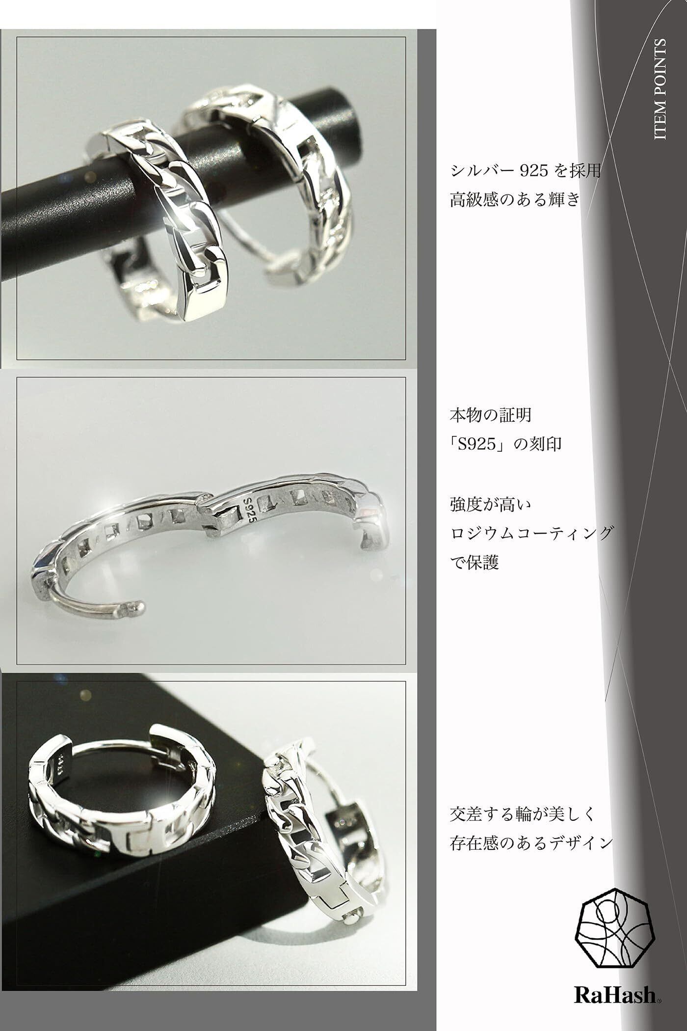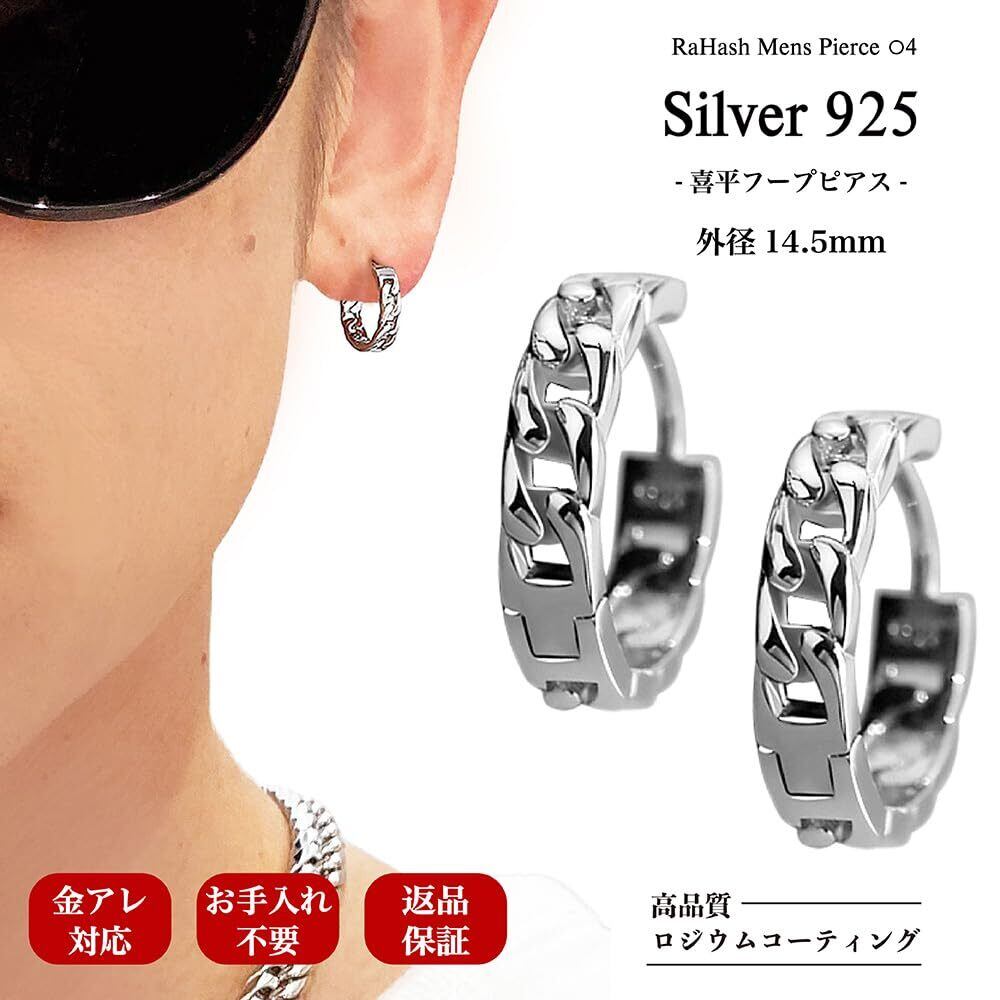 [RaHash] ピアス メンズ リング ブランド シンプル フープ 喜平 シルバー 925 両耳 セット 金属アレルギー対応 (外径14.5mm)