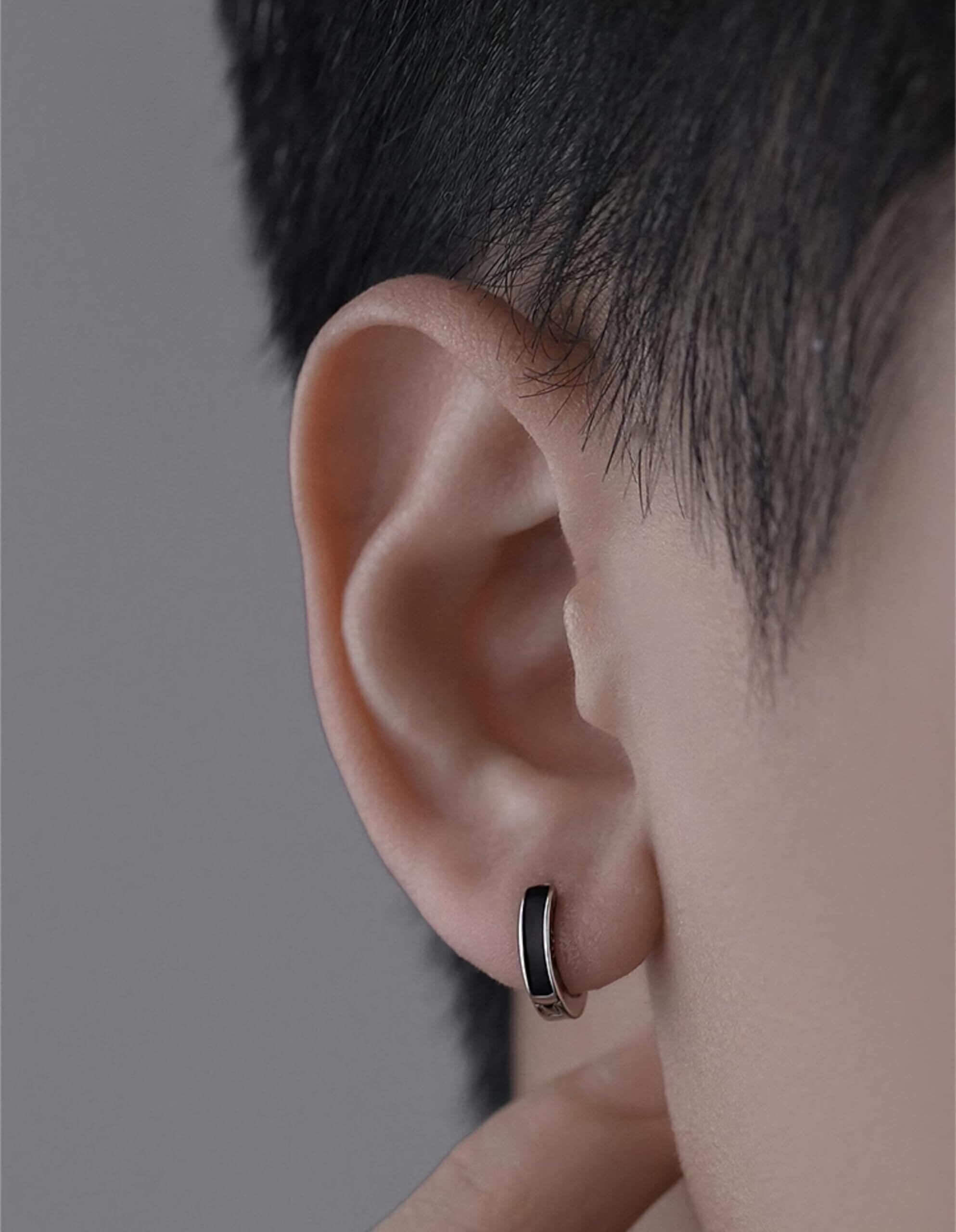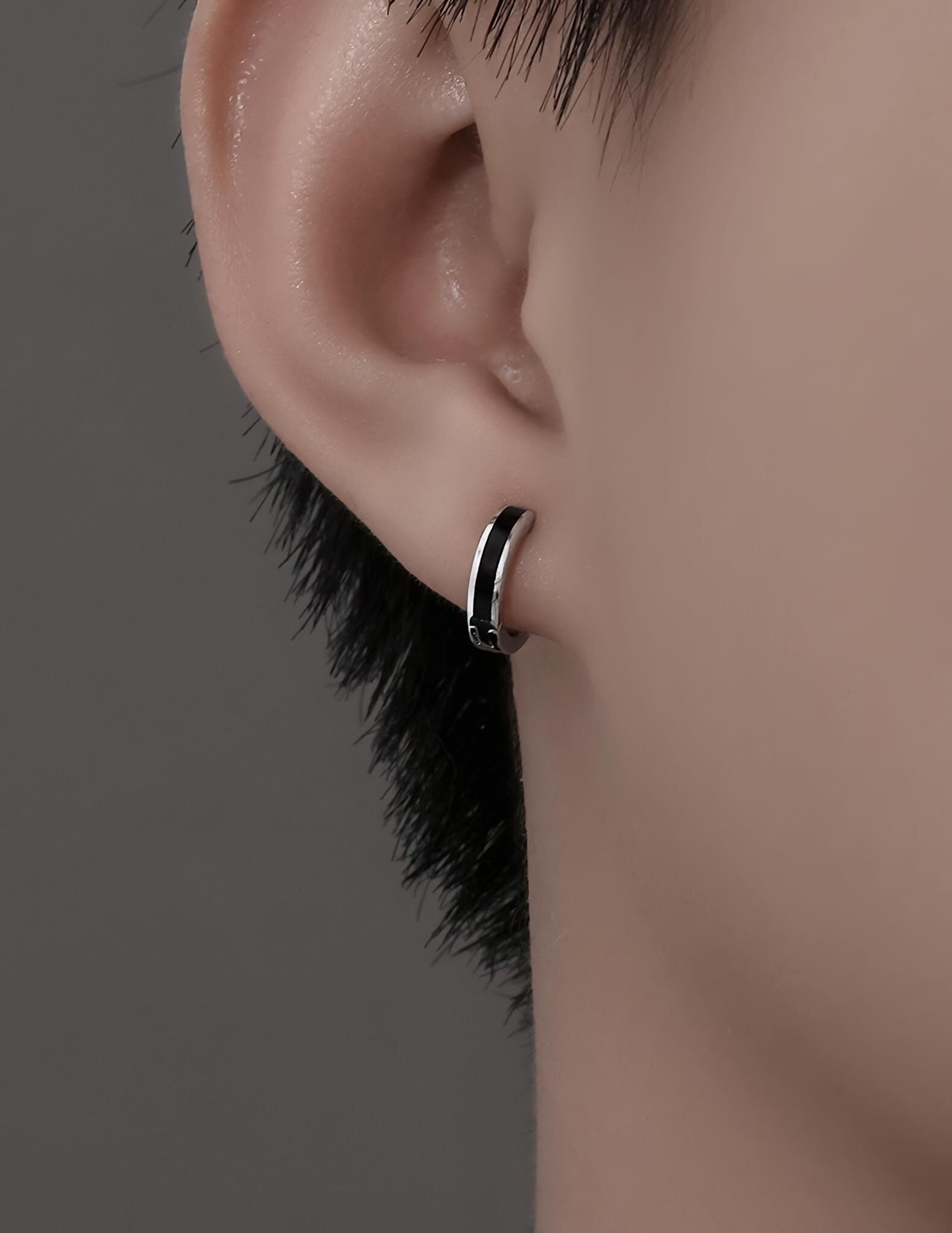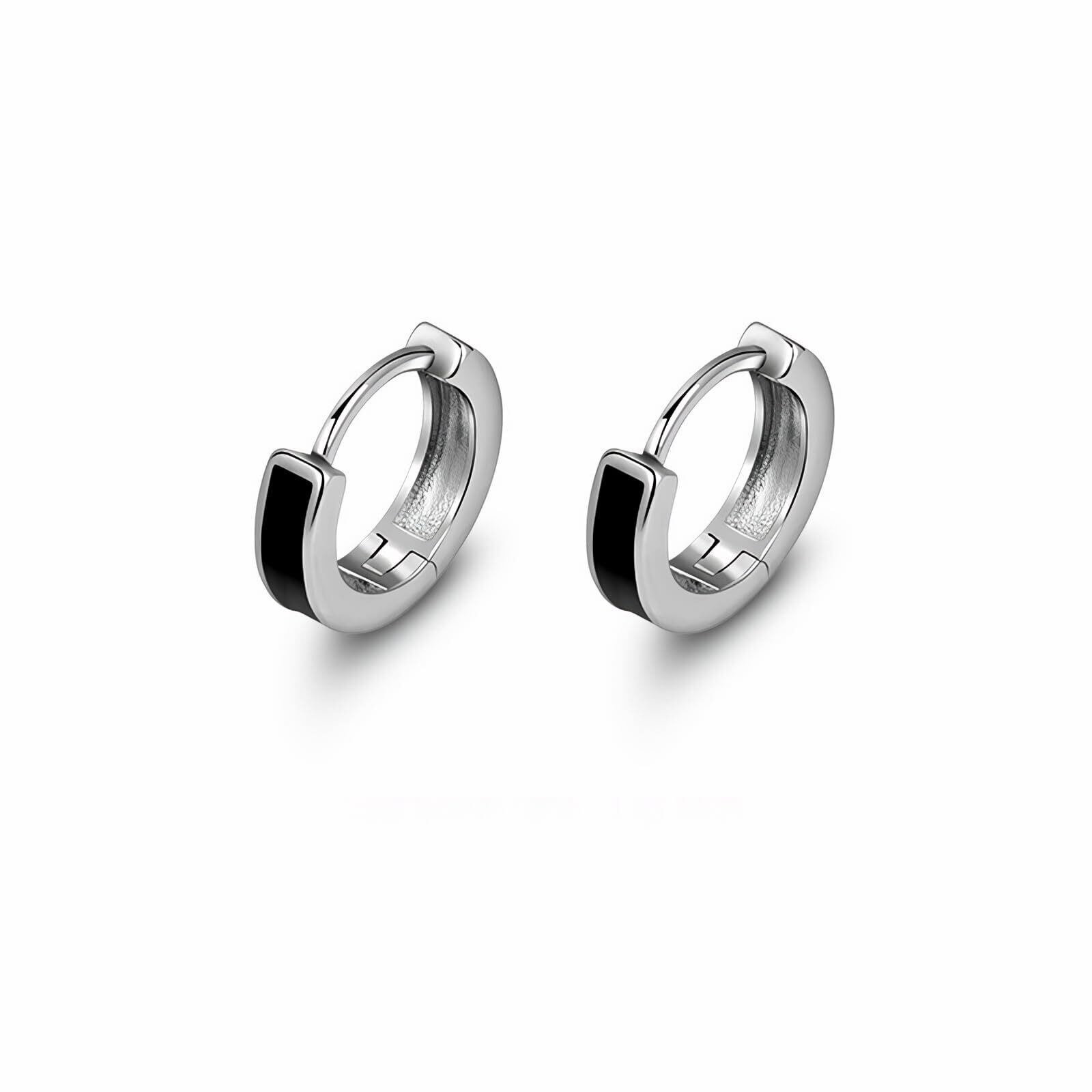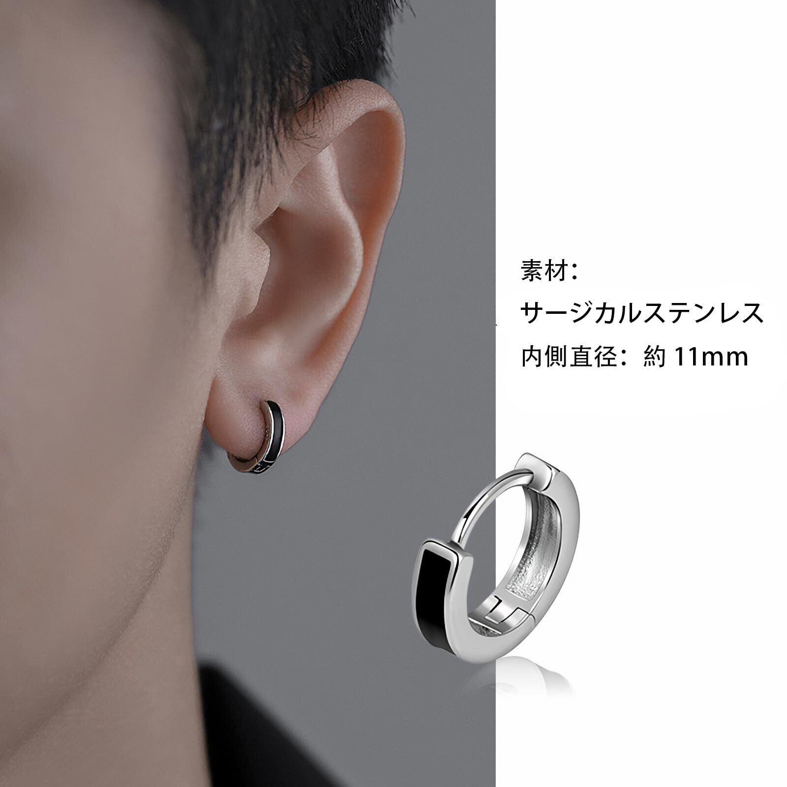 【特価商品】[Viromy]ピアス メンズ フープピアス サージカルステンレス 金属アレルギー対応 黒 ブラック ライン 小さめ 小さい 小振り 小ぶり キャッチレス 中折れ シルバー おしゃれ かっこいい シンプル ギフトBOX付き | 無意味ステッカー