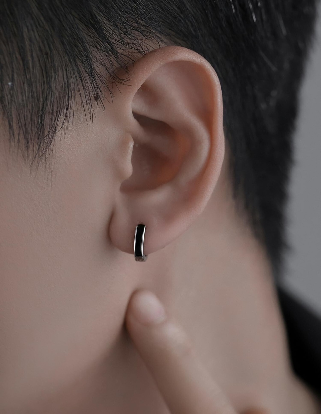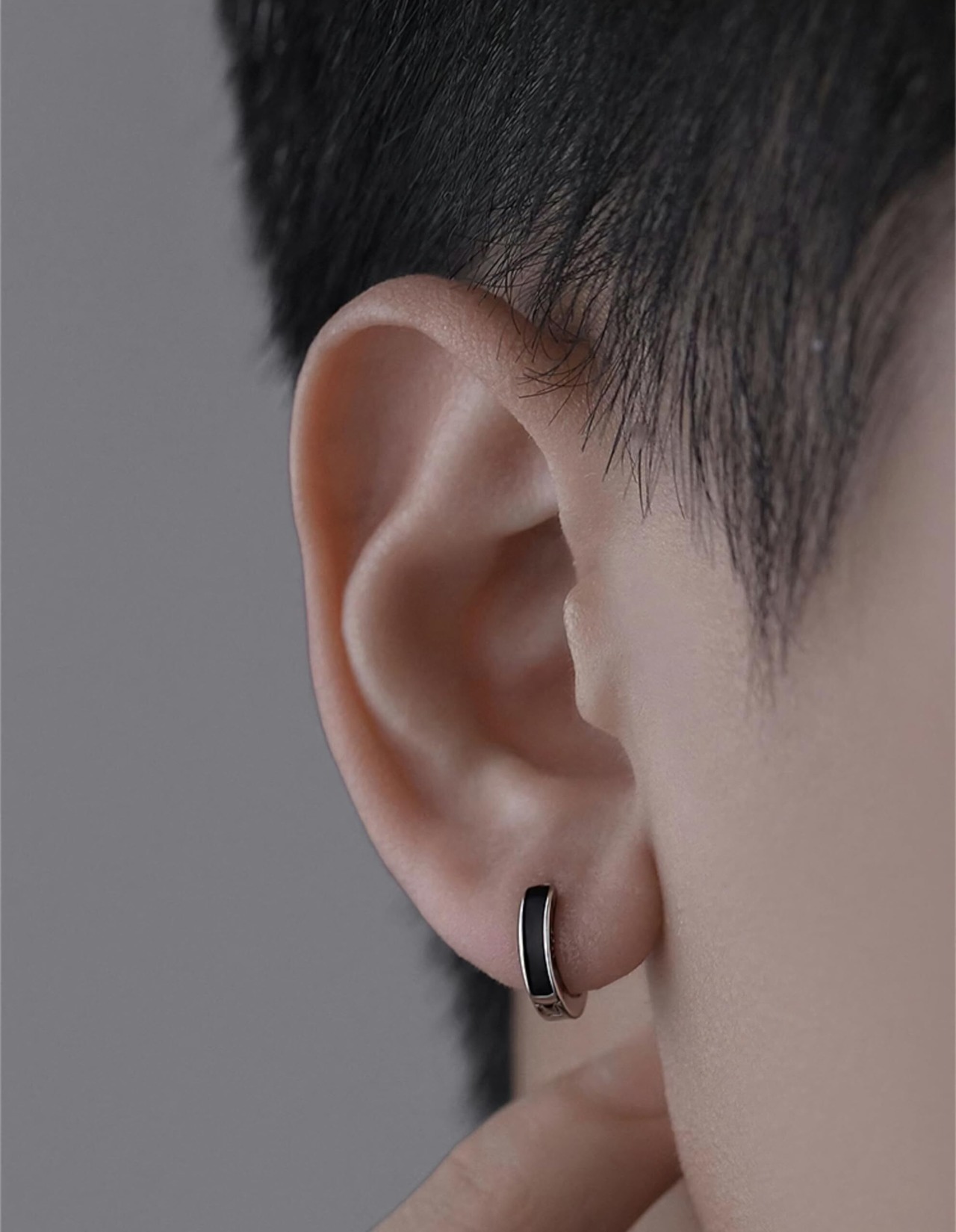 【ブラックラインフープピアス】黒のラインが入っているシンプルなフープピアス。スウェットやTシャツなどストリート系はもちろん、カジュアル系からフォーマルまで様々なファッションコーデにもオールラウンダーに活躍してくれます。