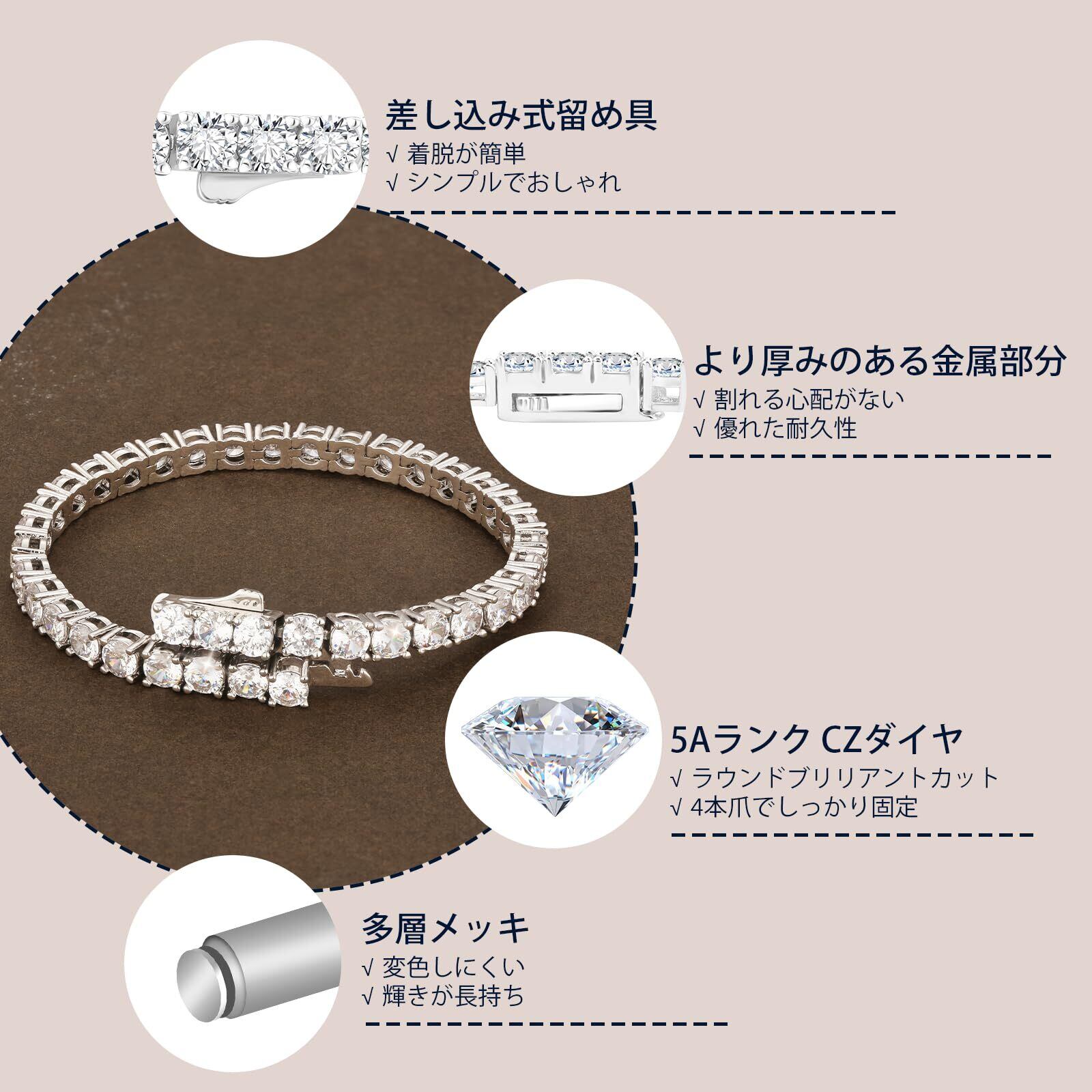 【人気商品】KRKC&CO テニスブレスレット ジルコニア メンズ ブレスレット 3/4/5mm 金属アレルギー対応 CZダイヤ ホワイトゴールドメッキ キラキラ 腕輪 ヒップホップ B系 ストリート アクセサリー 男女兼用 ギフト | 無意味ステッカー