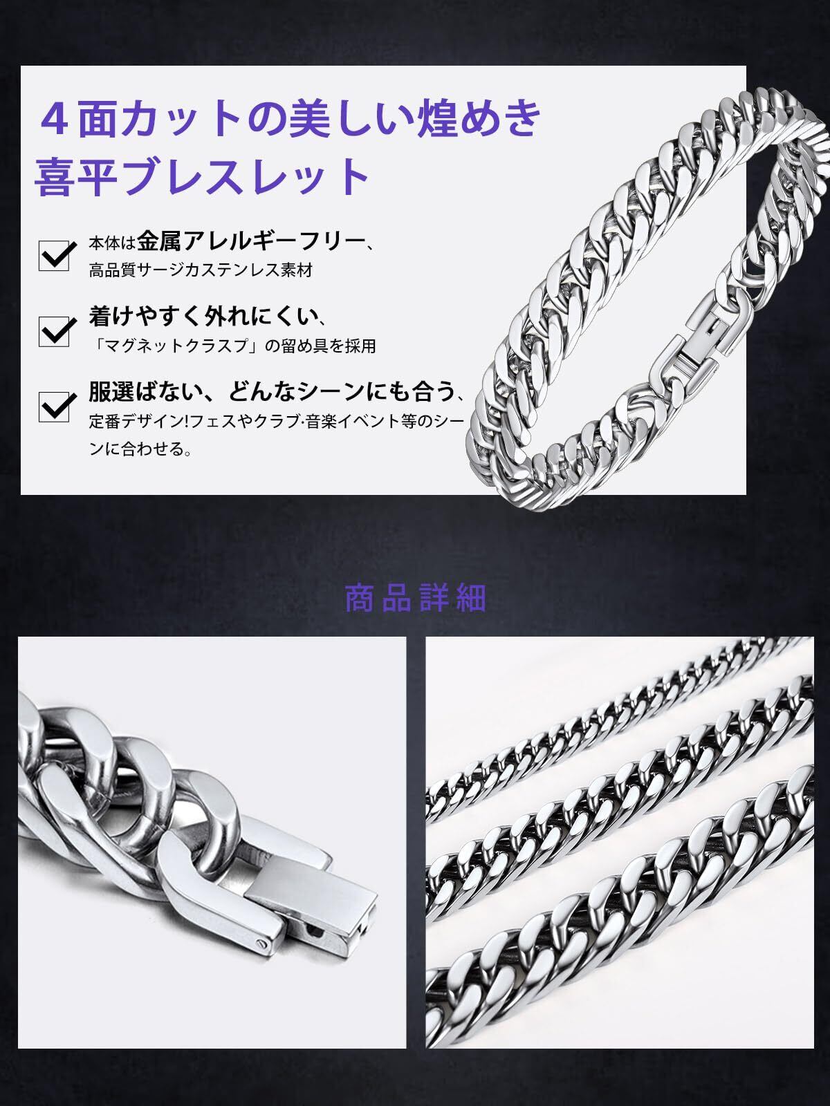 【数量限定】[Richsteel] 喜平 ブレスレット メンズ 4面カット サージカルステンレス 太さ8mm/12mm/17mm 金属アレルギー対応 つけっぽなし 男性 プレゼント | 無意味ステッカー