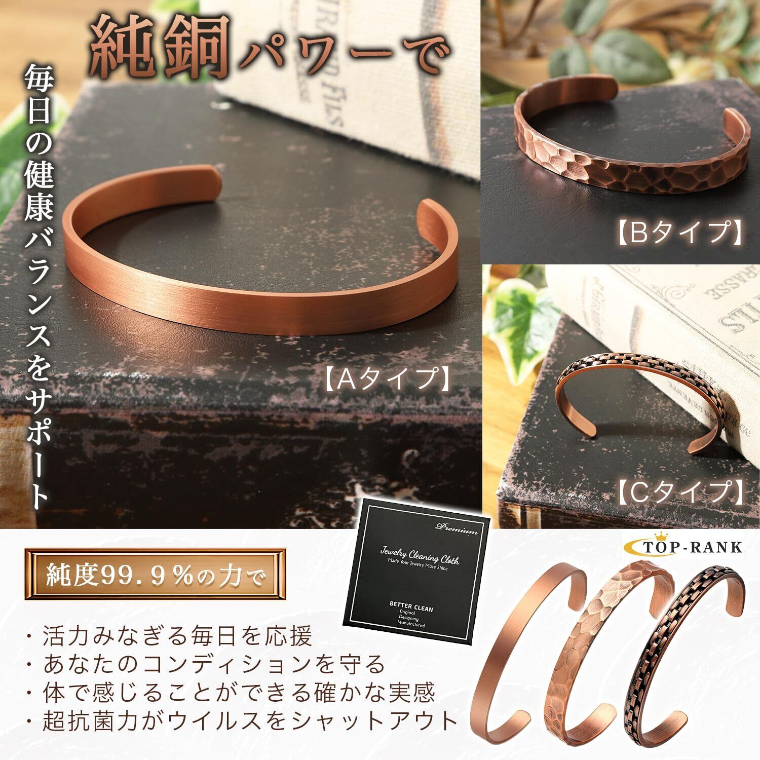 [TOP-RANK] 純銅 ブレスレット 銅 バングル 電磁波対策 シェディング対策 ワクチン 解毒 基礎代謝UP グッズ リラックスグッズ 純銅99.9% ジュエリークロス付属 スピリチュアル 目覚めよ日本人