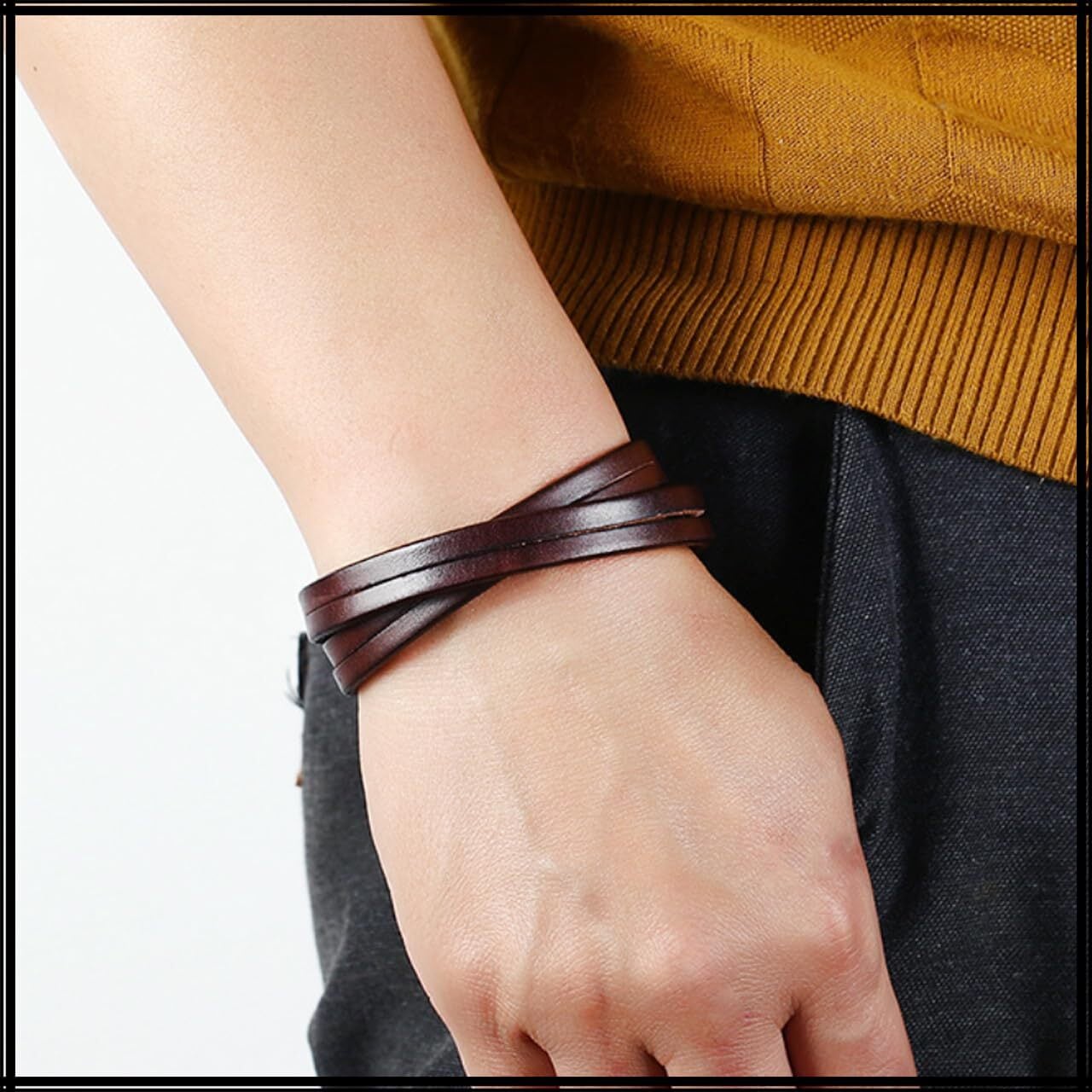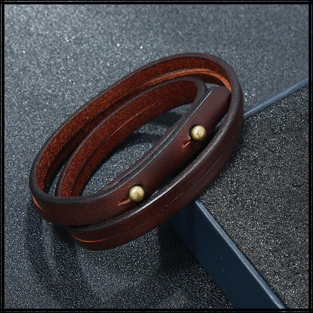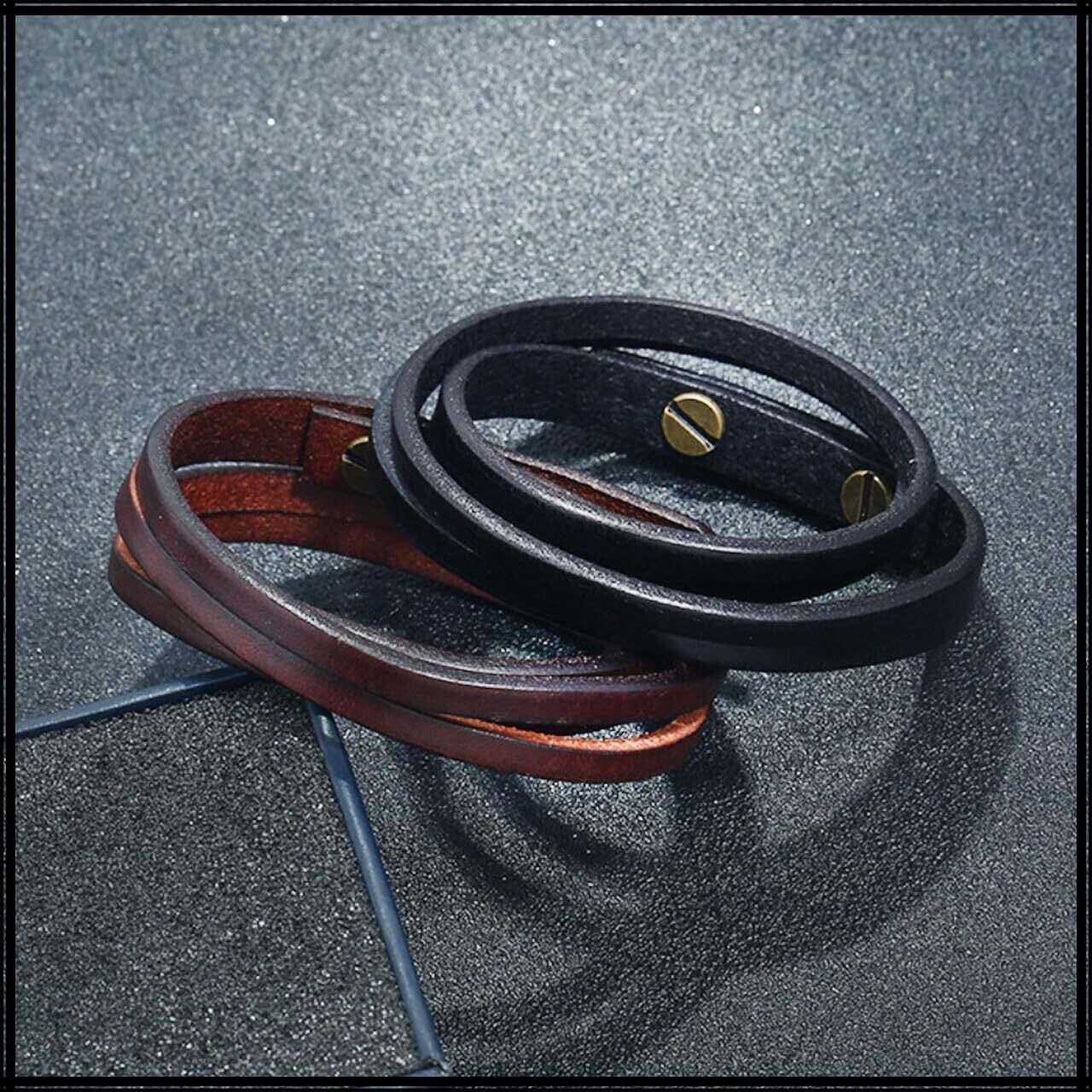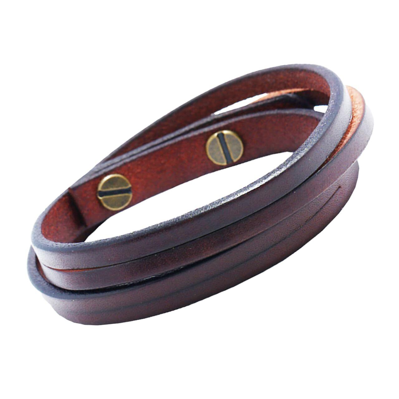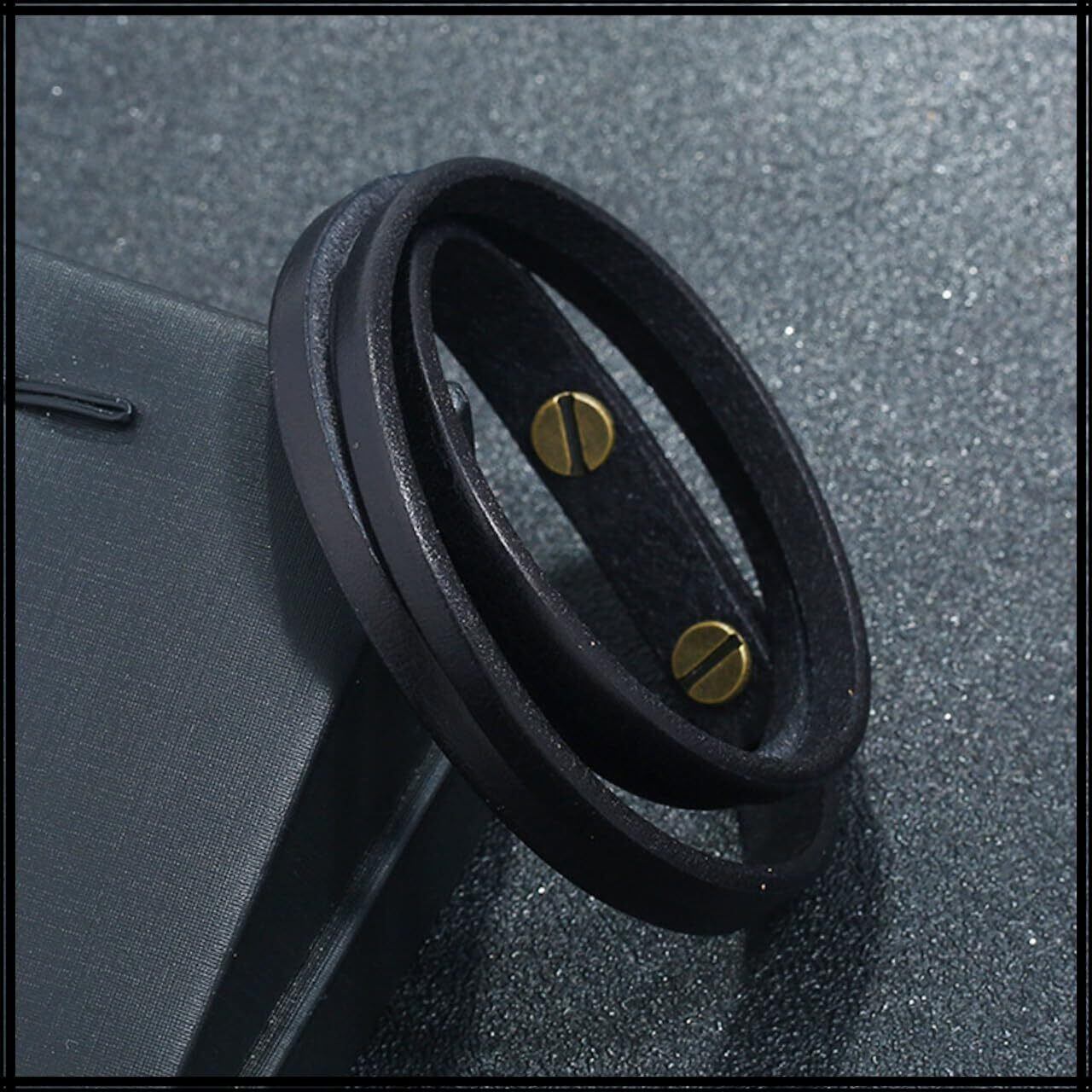 シンプルでありながらもおしゃれな印象を放つ、本革・レザーメンズブレスレットです。
