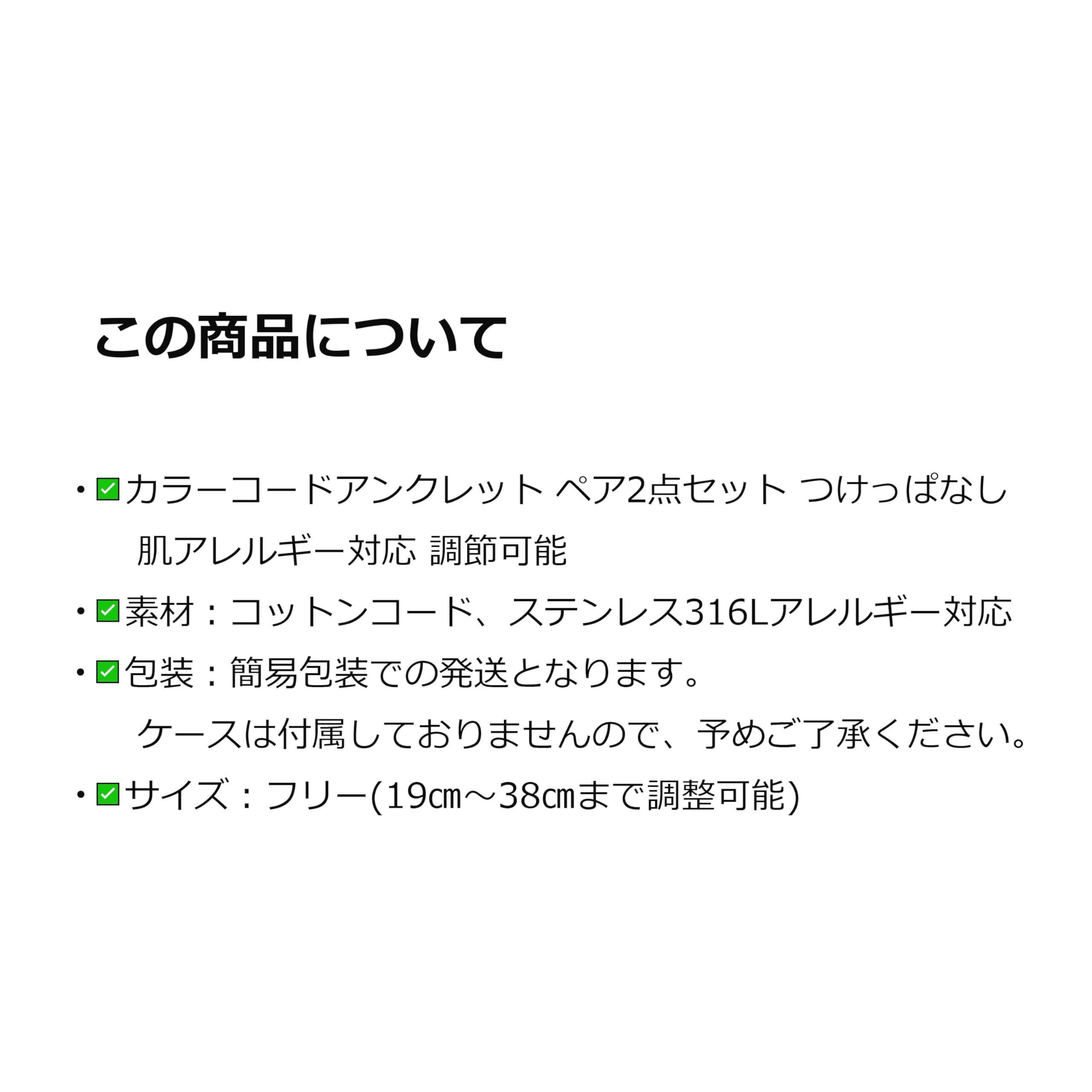 カラーコードアンクレット ペア2点セット つけっぱなし 肌アレルギー対応 調節可能